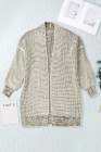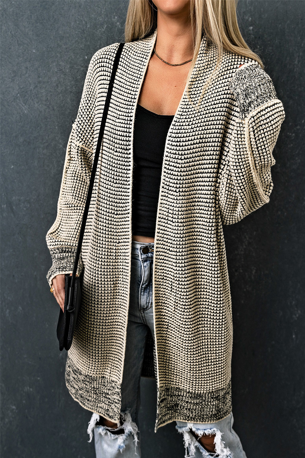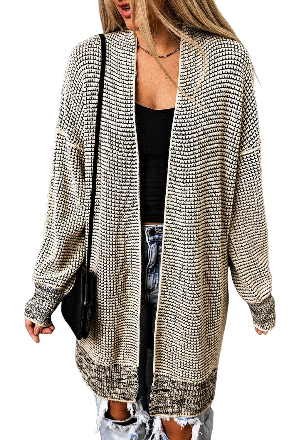 Apricot Plaid Knitted Long Open Front Cardigan