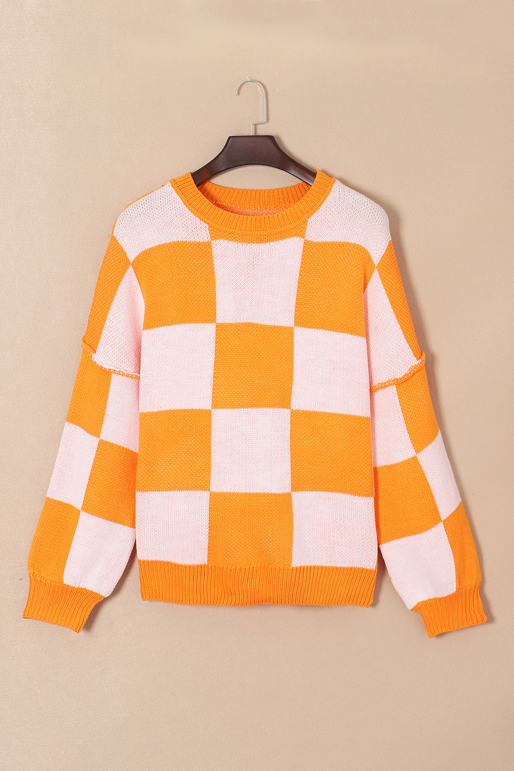 Orange Checkered Bishop Sleeve Sweater