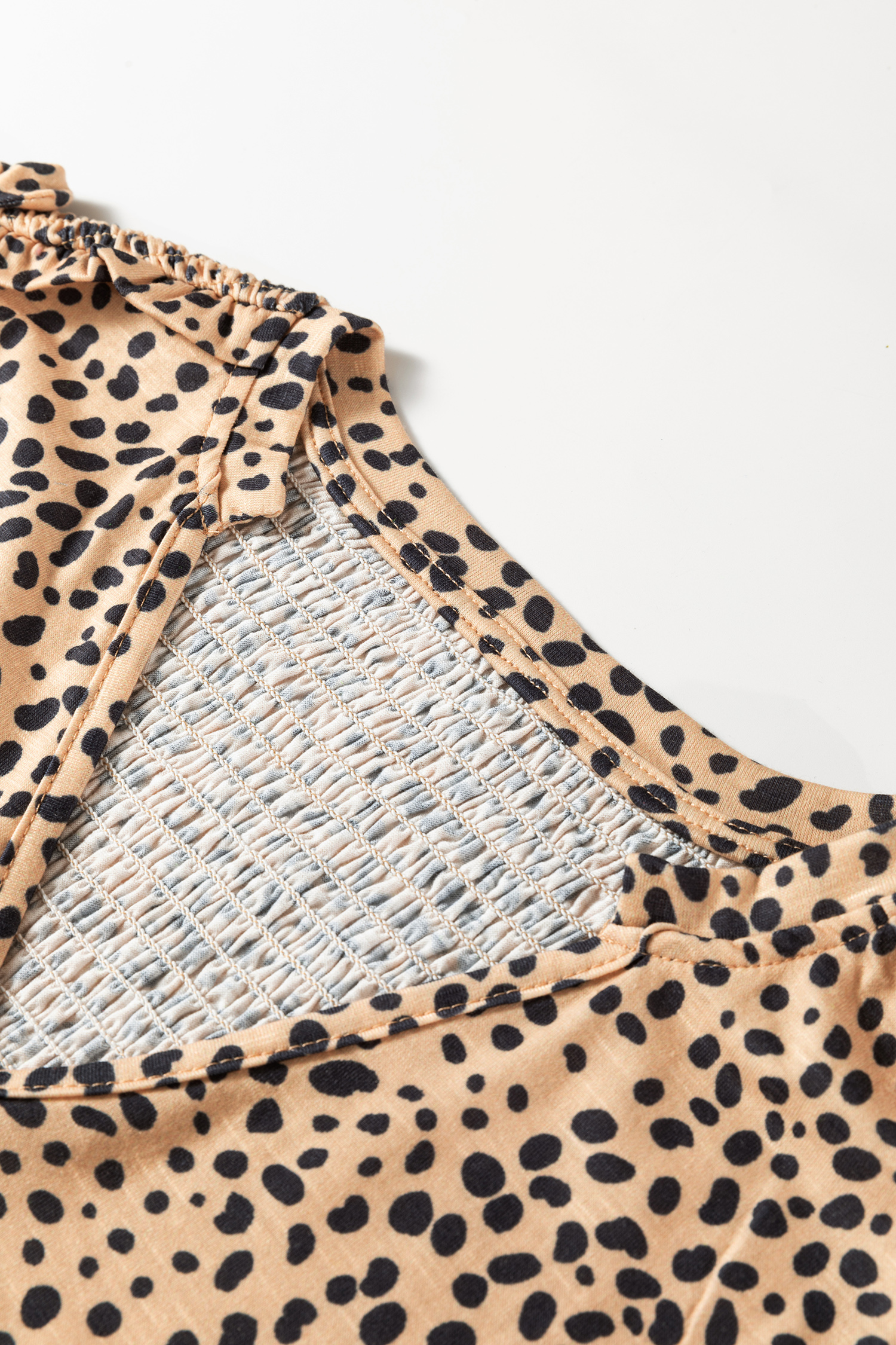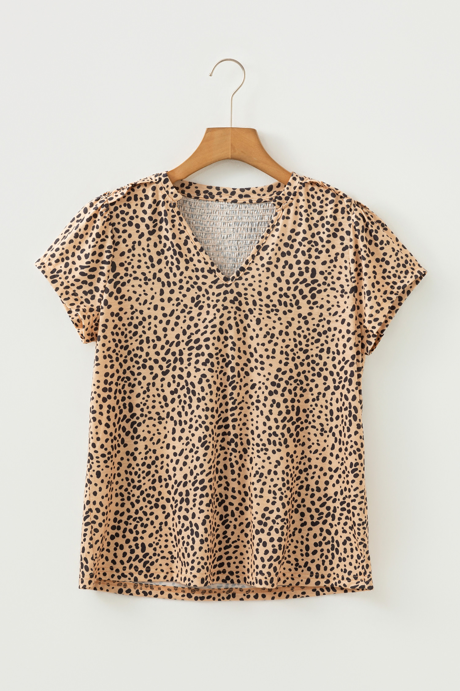 Apricot Cheeath Print Frilled V Neck Shirred Detail Short Sleeve Blouse