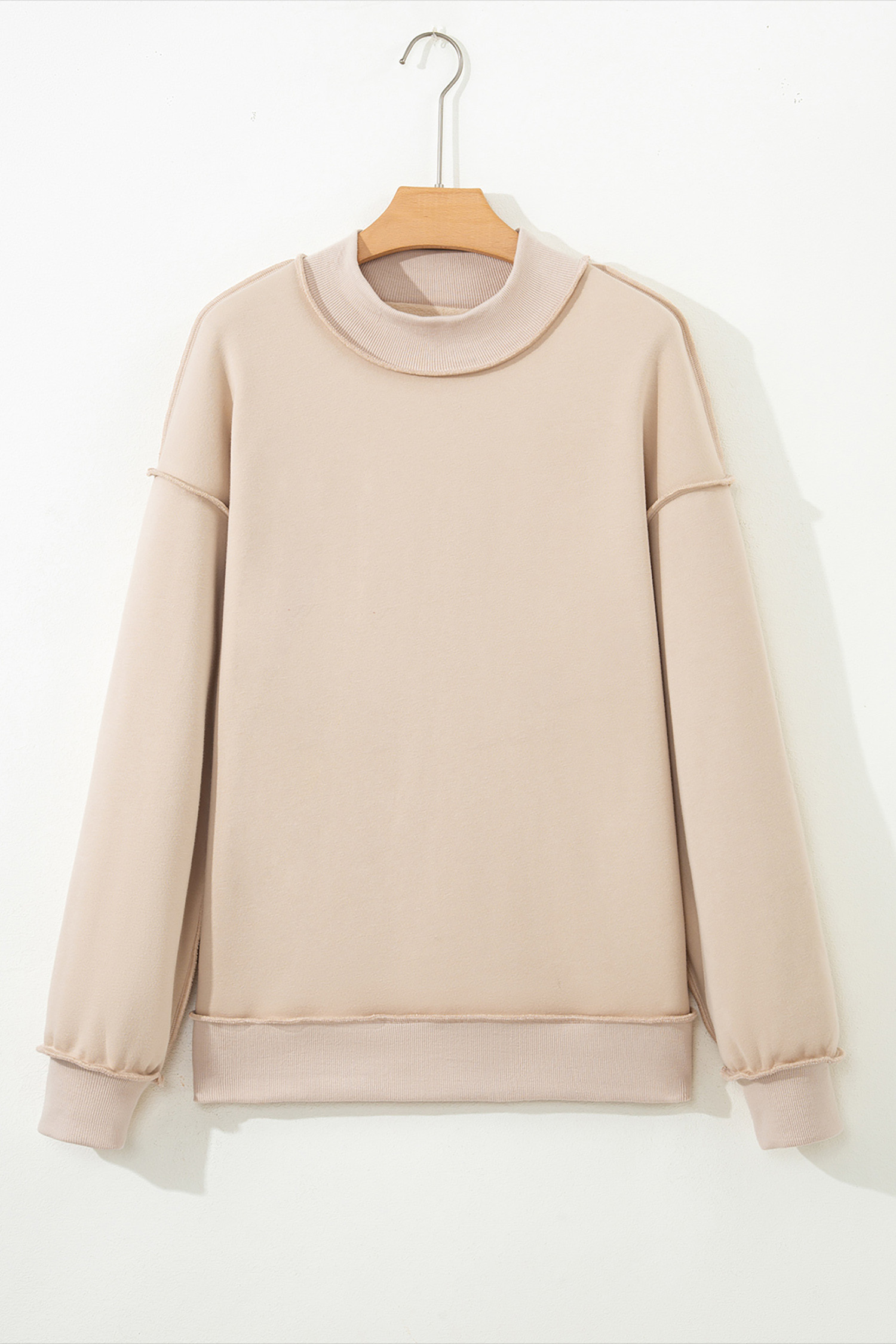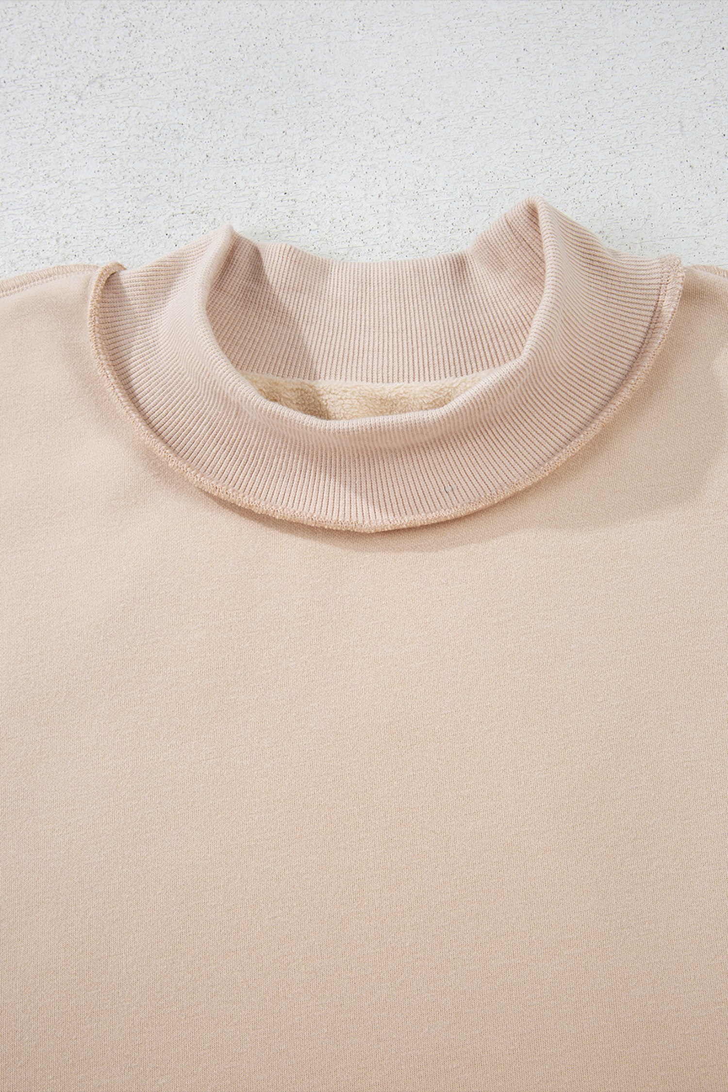 Apricot Oversize Drop Shoulder Reversible Mock Neck Sweatshirt