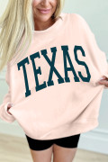 Apricot Pink TEXAS Letter Printed Mock Neck Baggy Sweatshirt