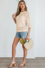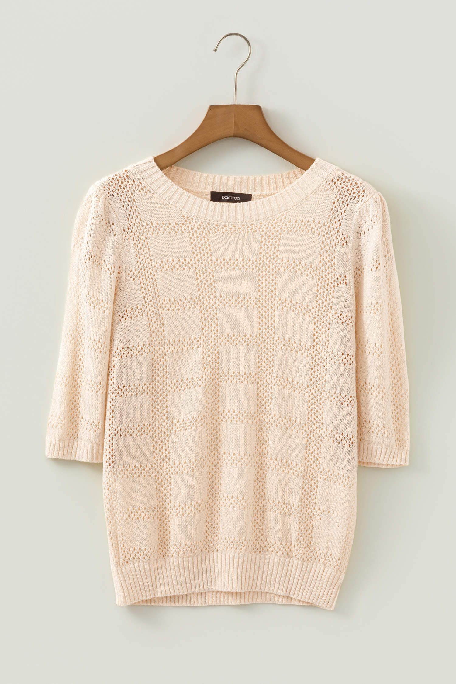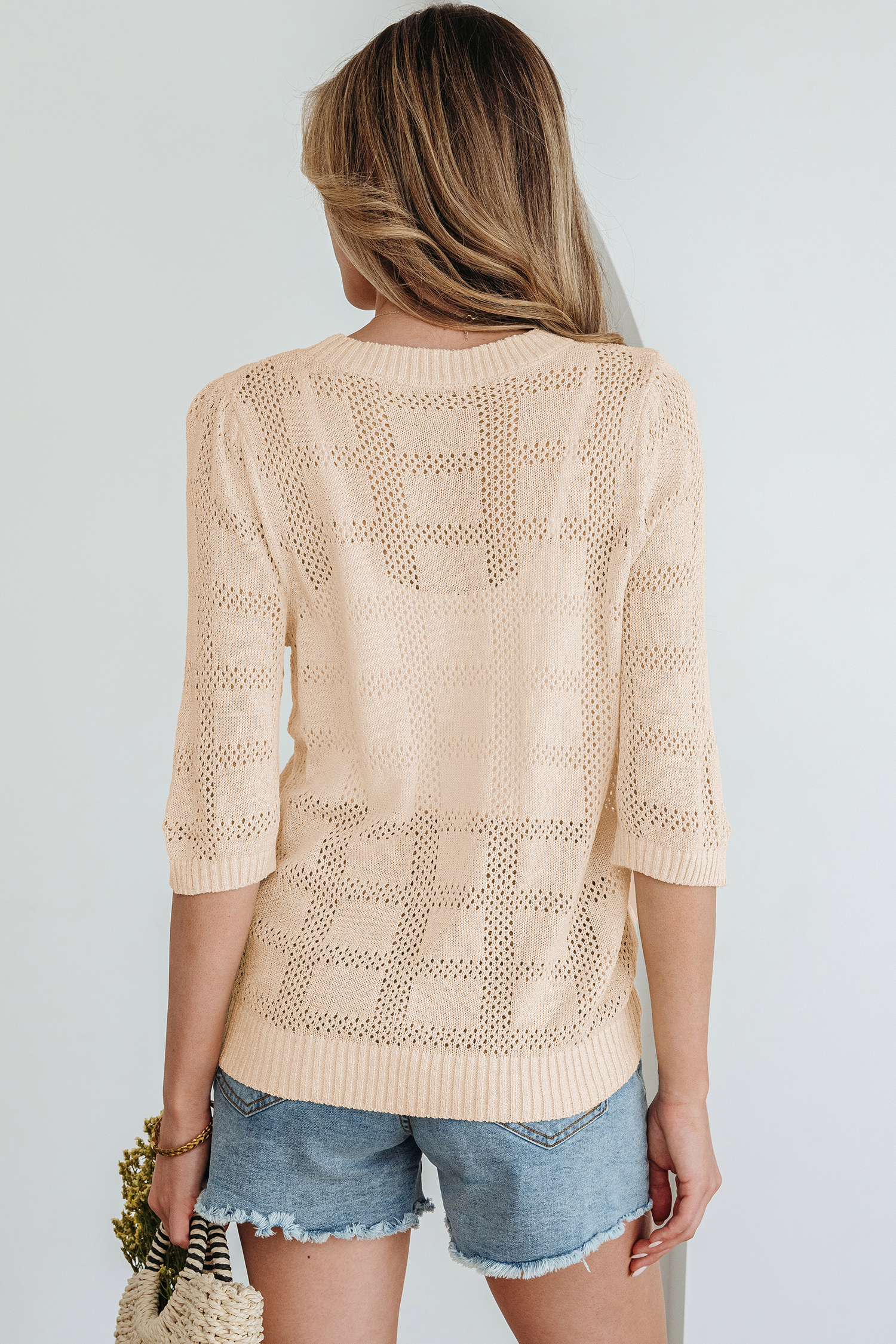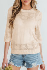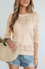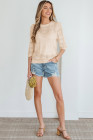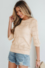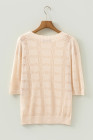 Apricot Plaid Pattern Crochet Knit Short Sleeve Sweater