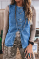 Ashleigh Blue Buttoned Front Slit Denim Vest