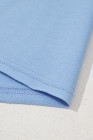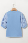 Beau Blue Eyelet Flower Embroidered Puff Short Sleeve Patchwork Crew Neck Blouse