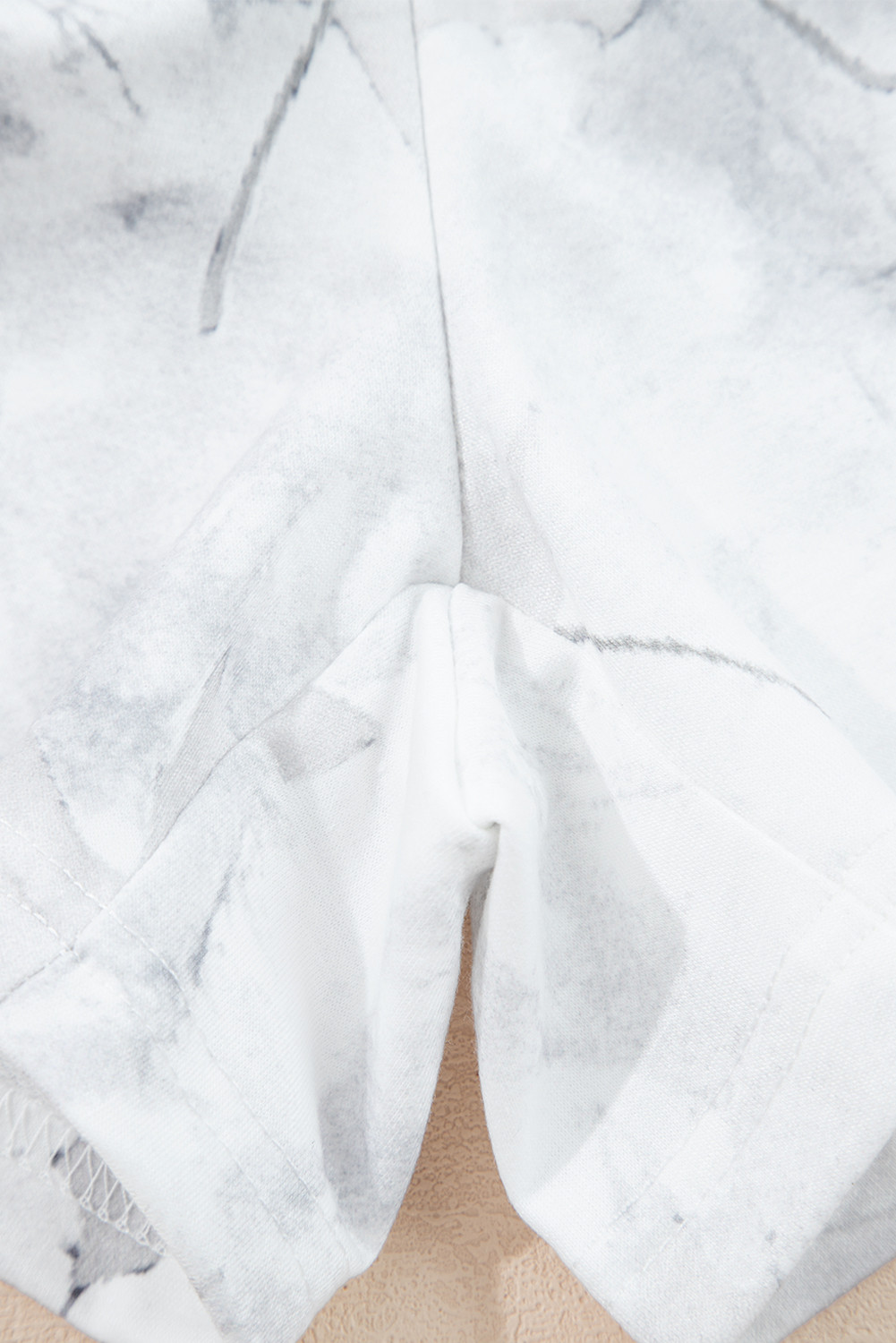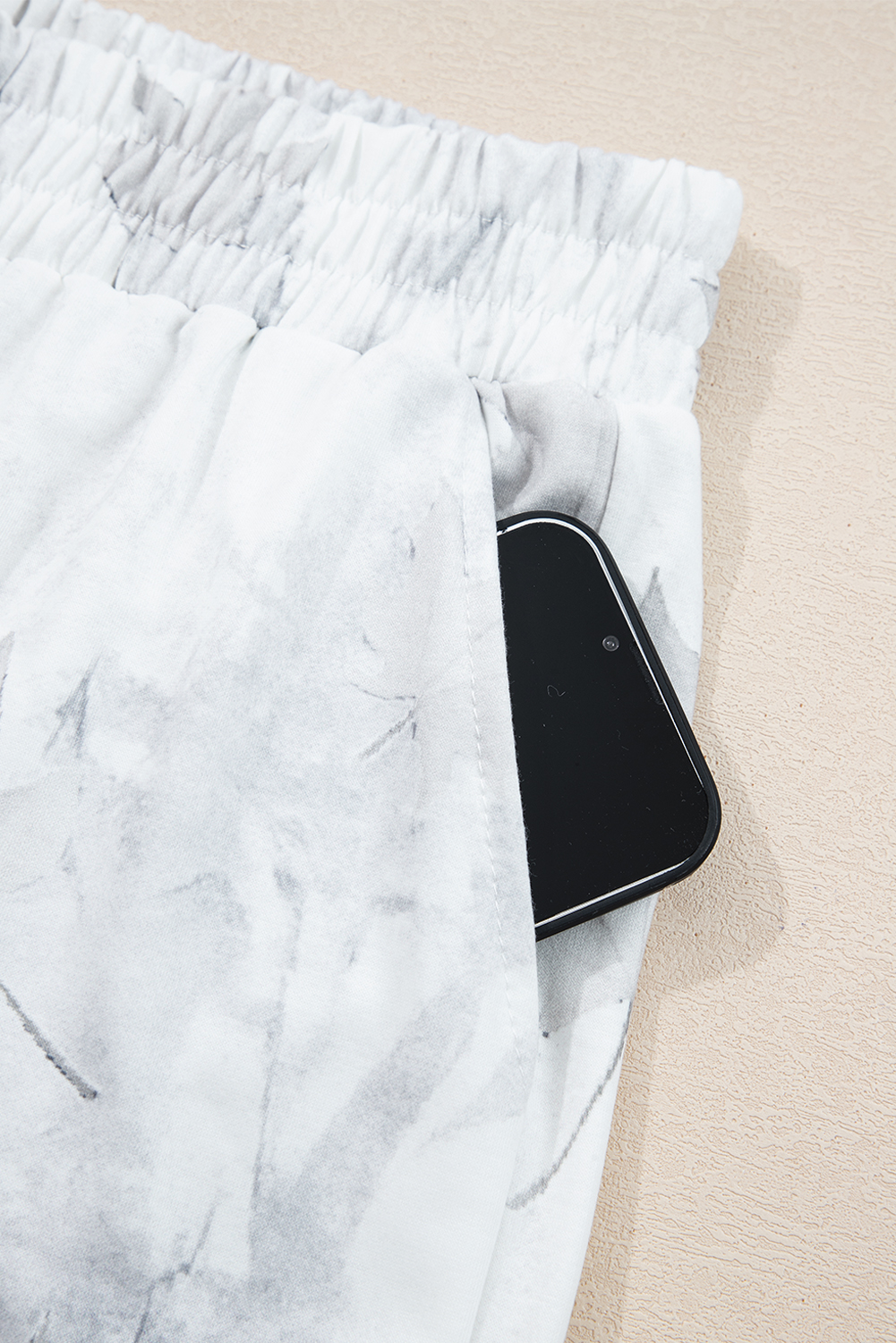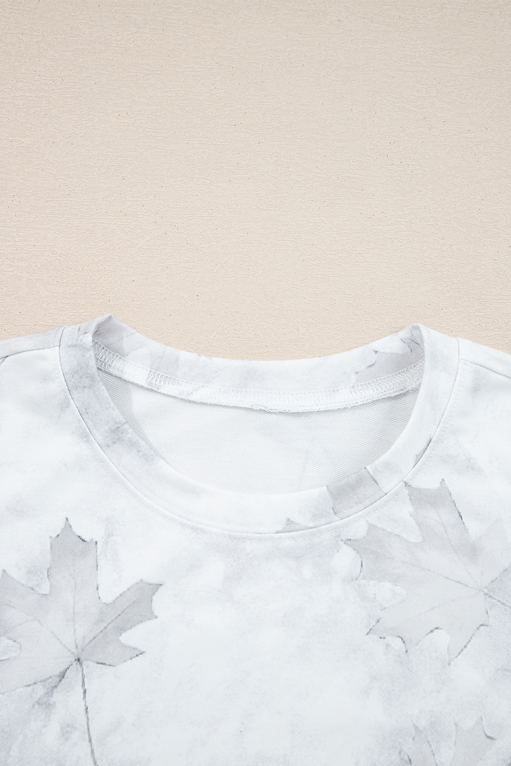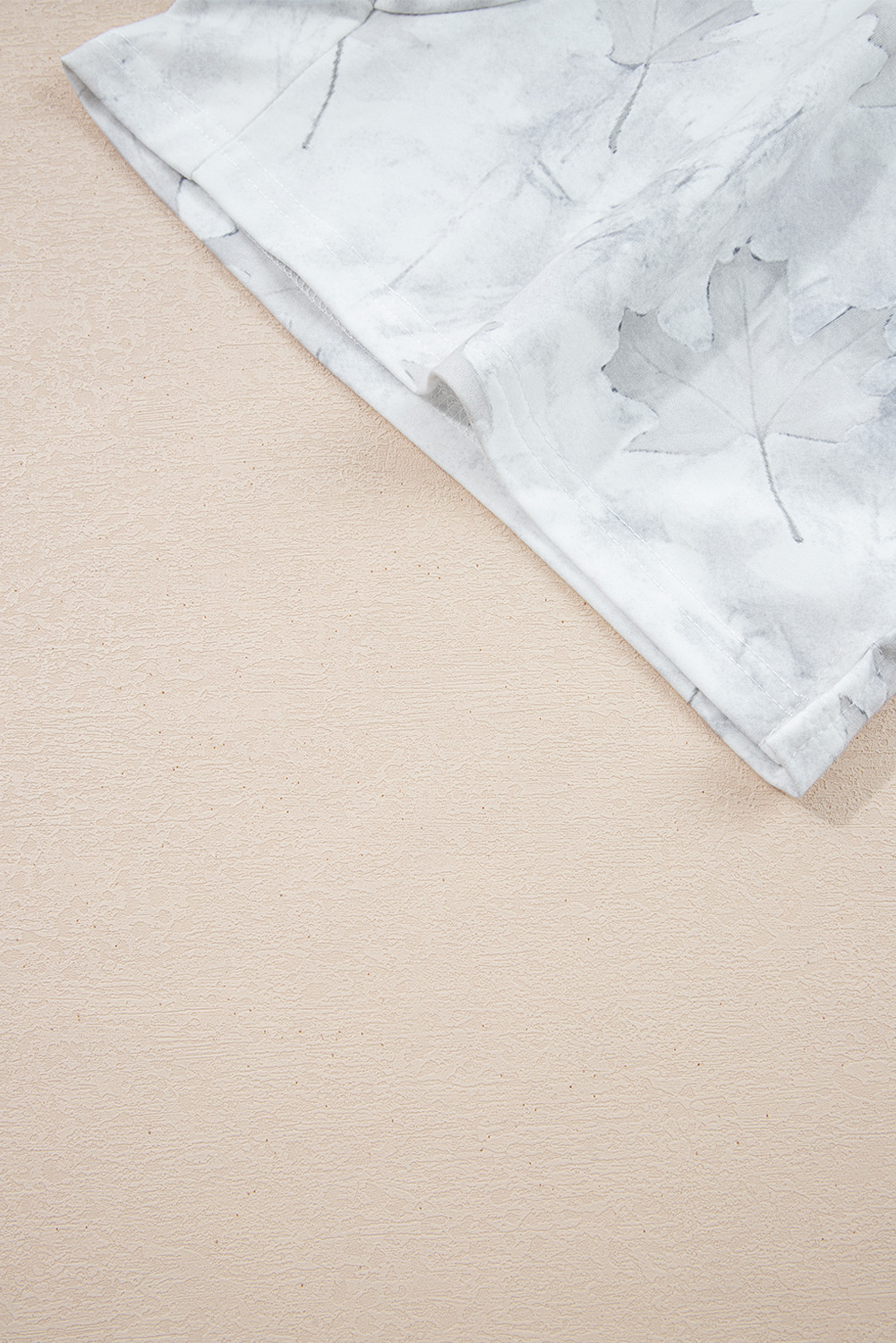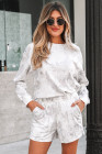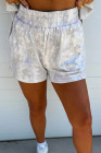 Beige Maple Camo Print Pullover Top and Elastic Waist Casual Short Set
