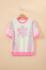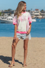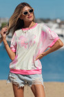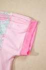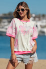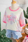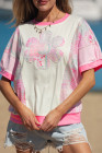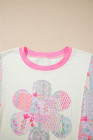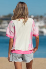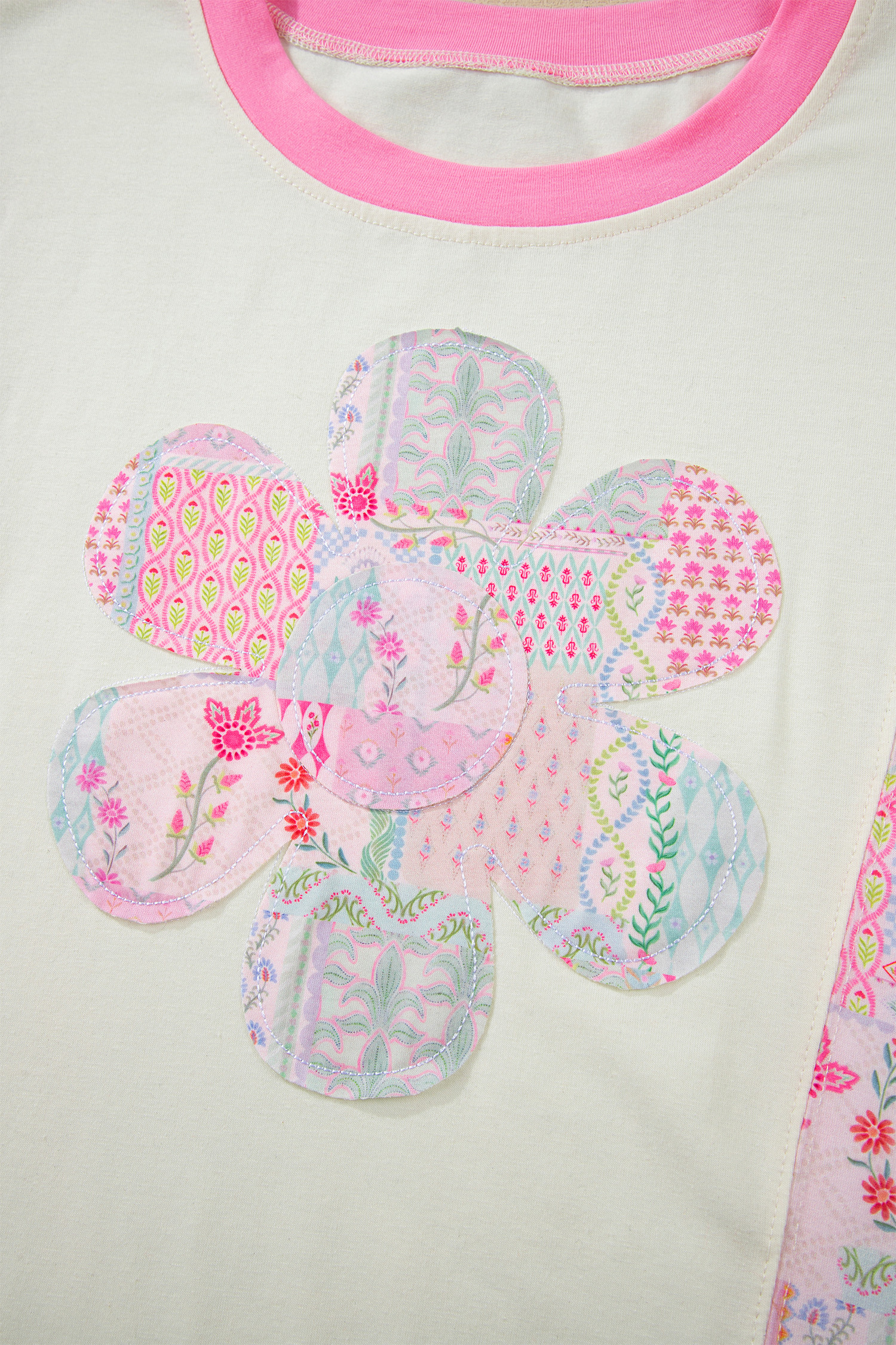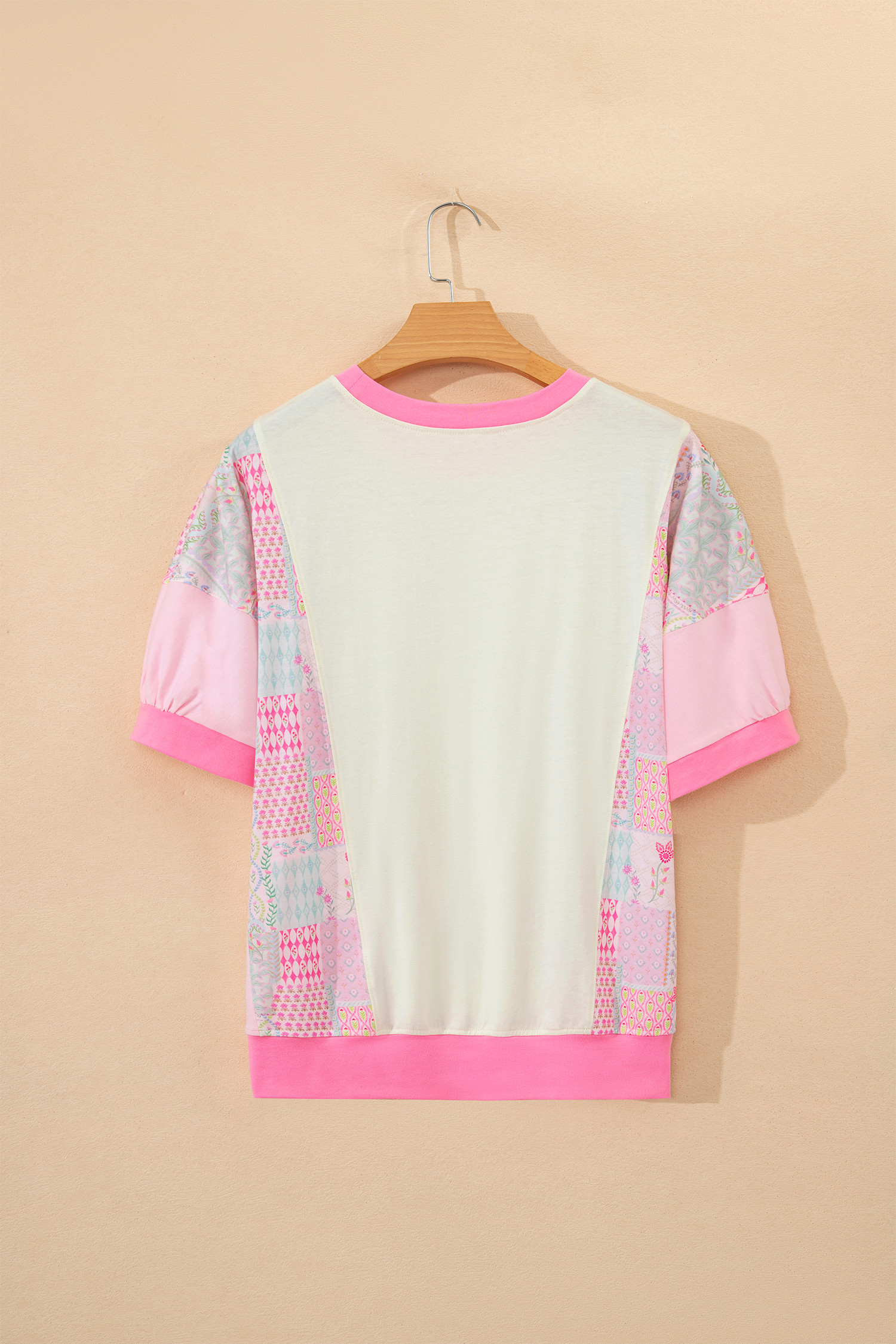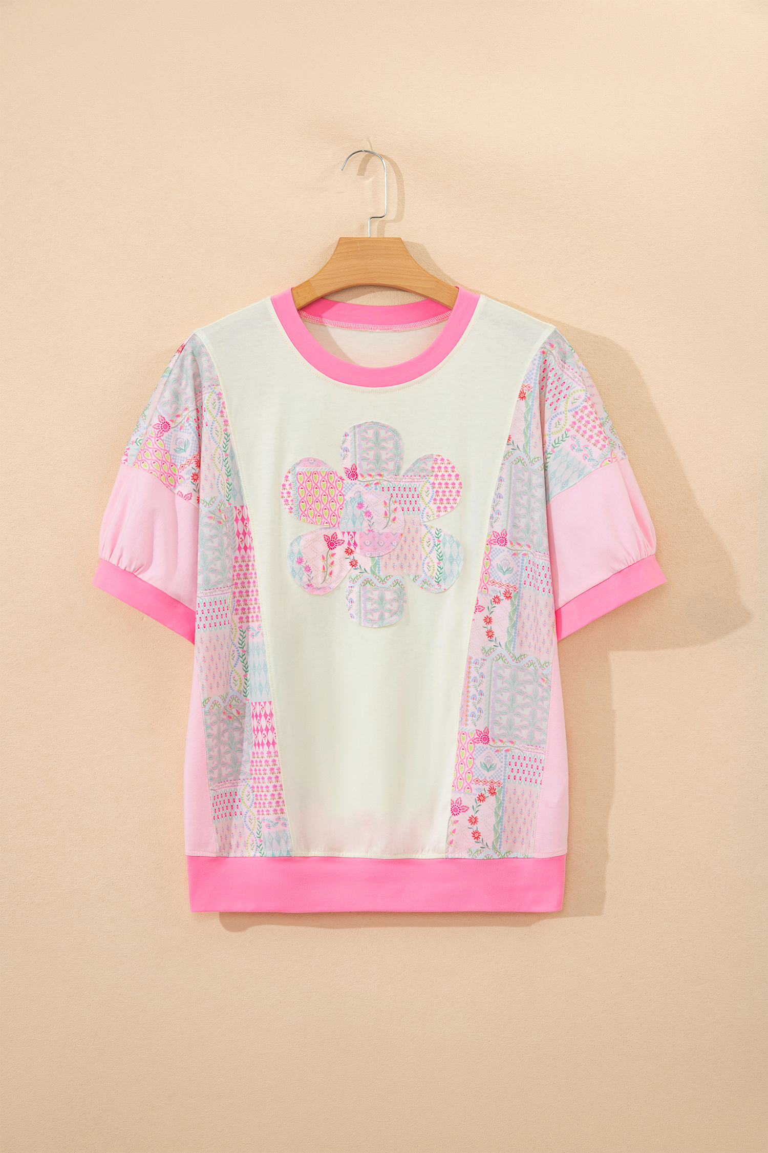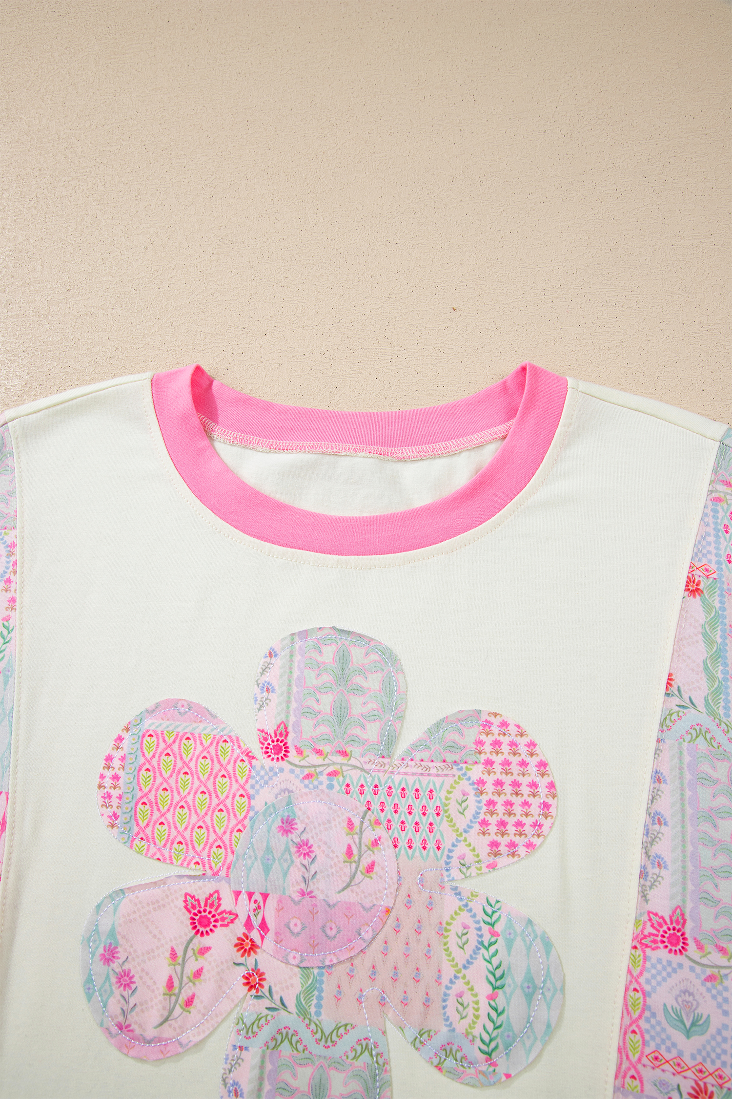 Beige Color Block Floral Patchwork Big Flower Accent Relaxed Top