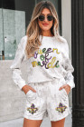 Beige Maple Woodland Print queen of mardi Sequin Patched 2pcs Short Set