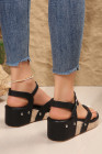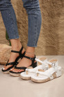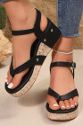 Black Flip-flops Design Faux Leather Wedge Sandals