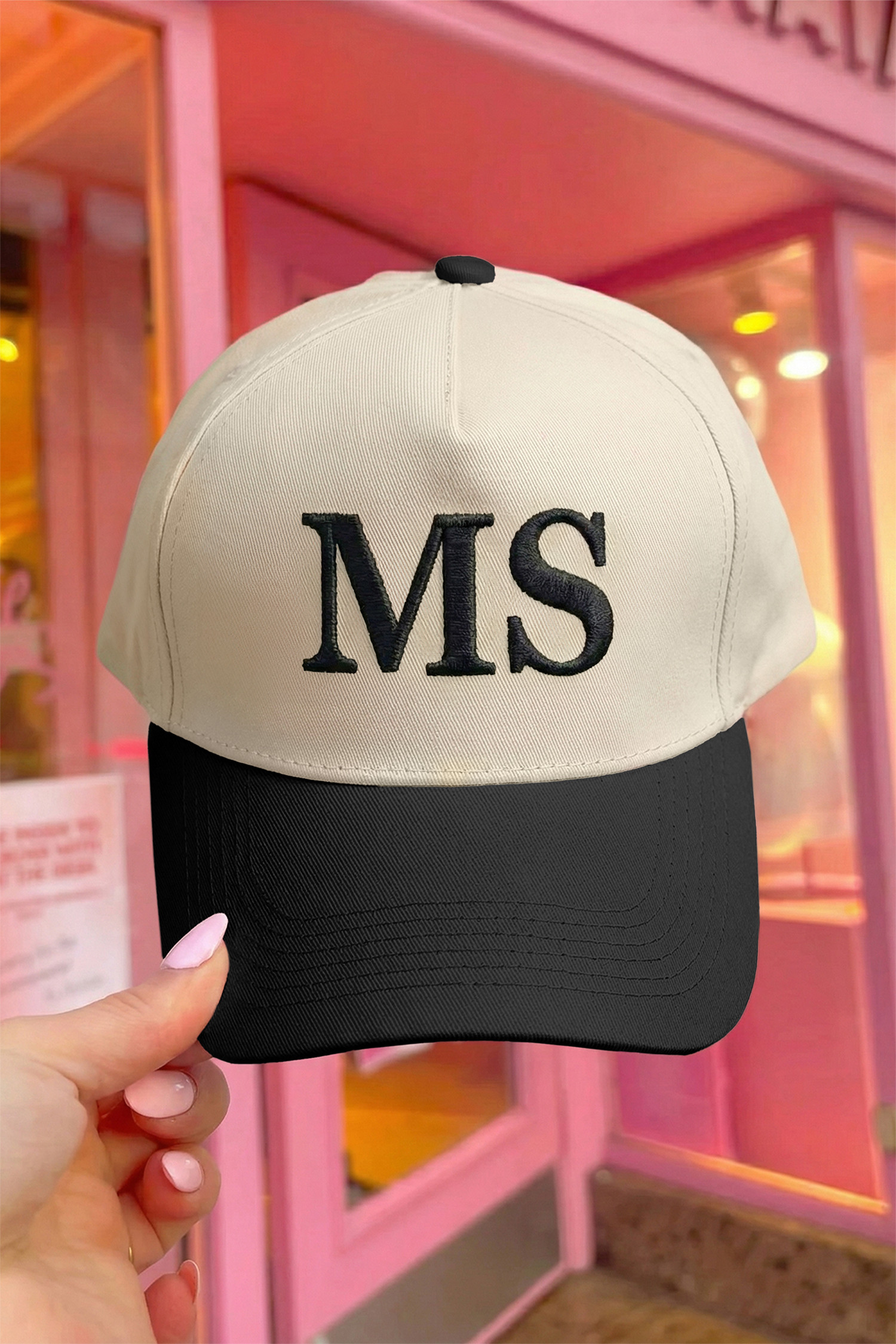 Black MS Custom Embroidery Contrast Brim Color Block Baseball Cap