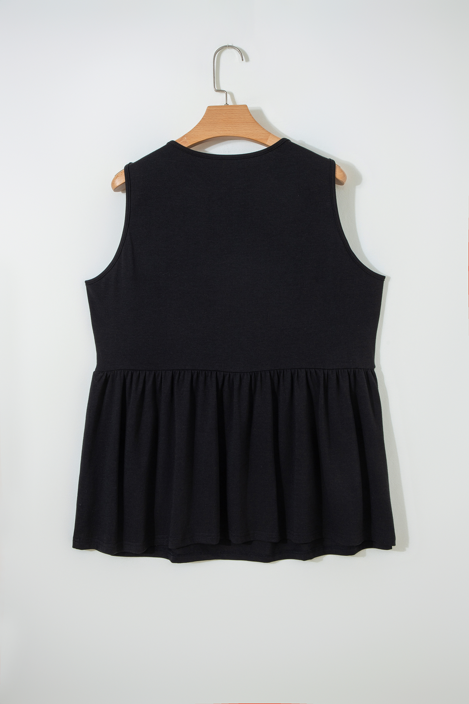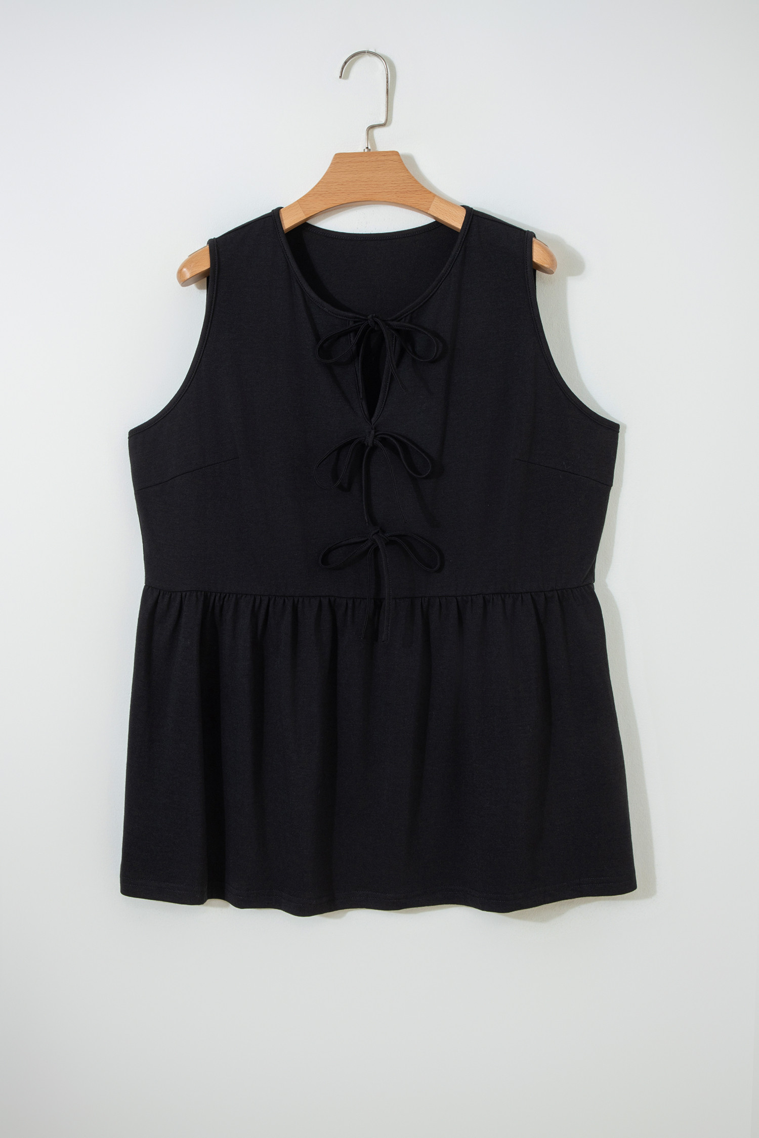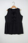 Black Plus Size Solid Color Bow Tie Peplum Tank Top