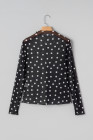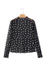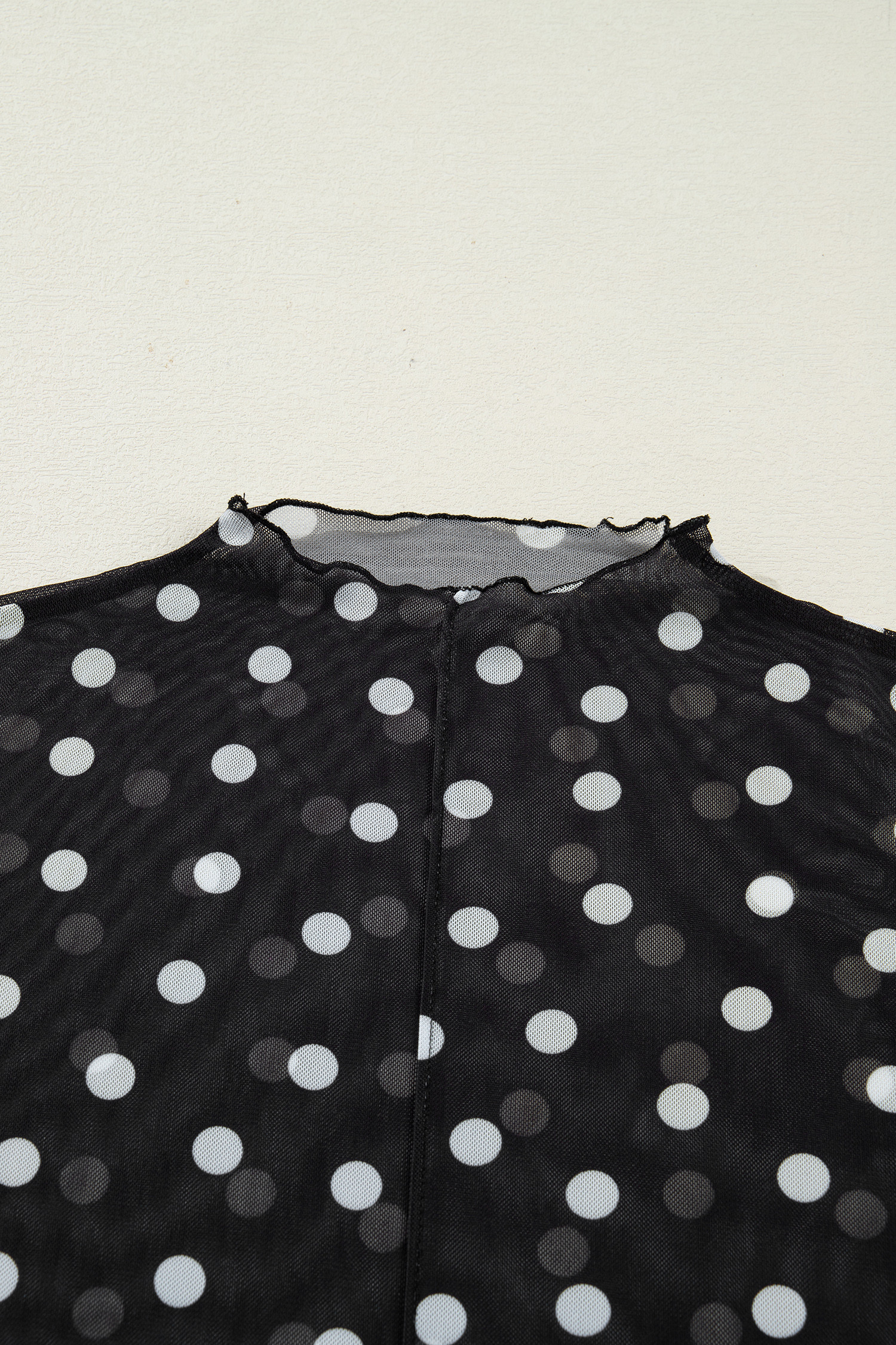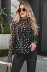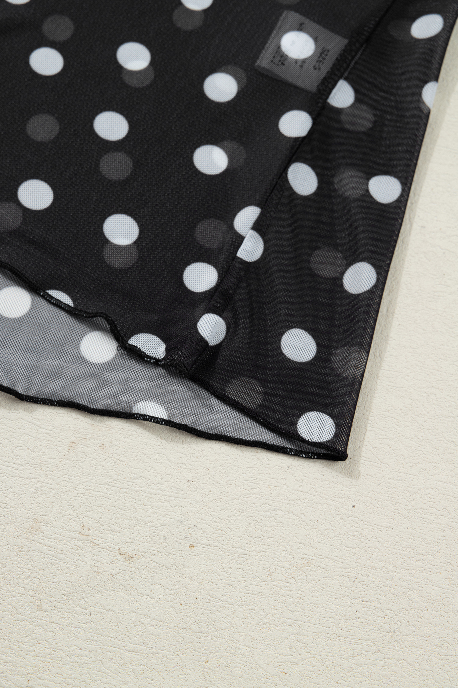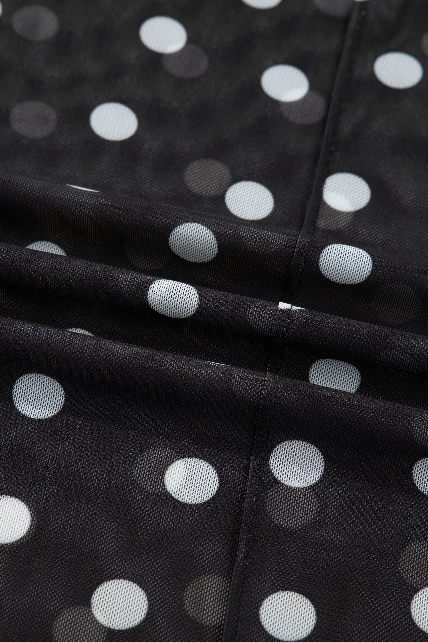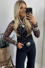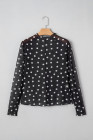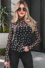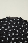 Black Polka Dot Patterned Bodycon Mock Neck Mesh Long Sleeve Top