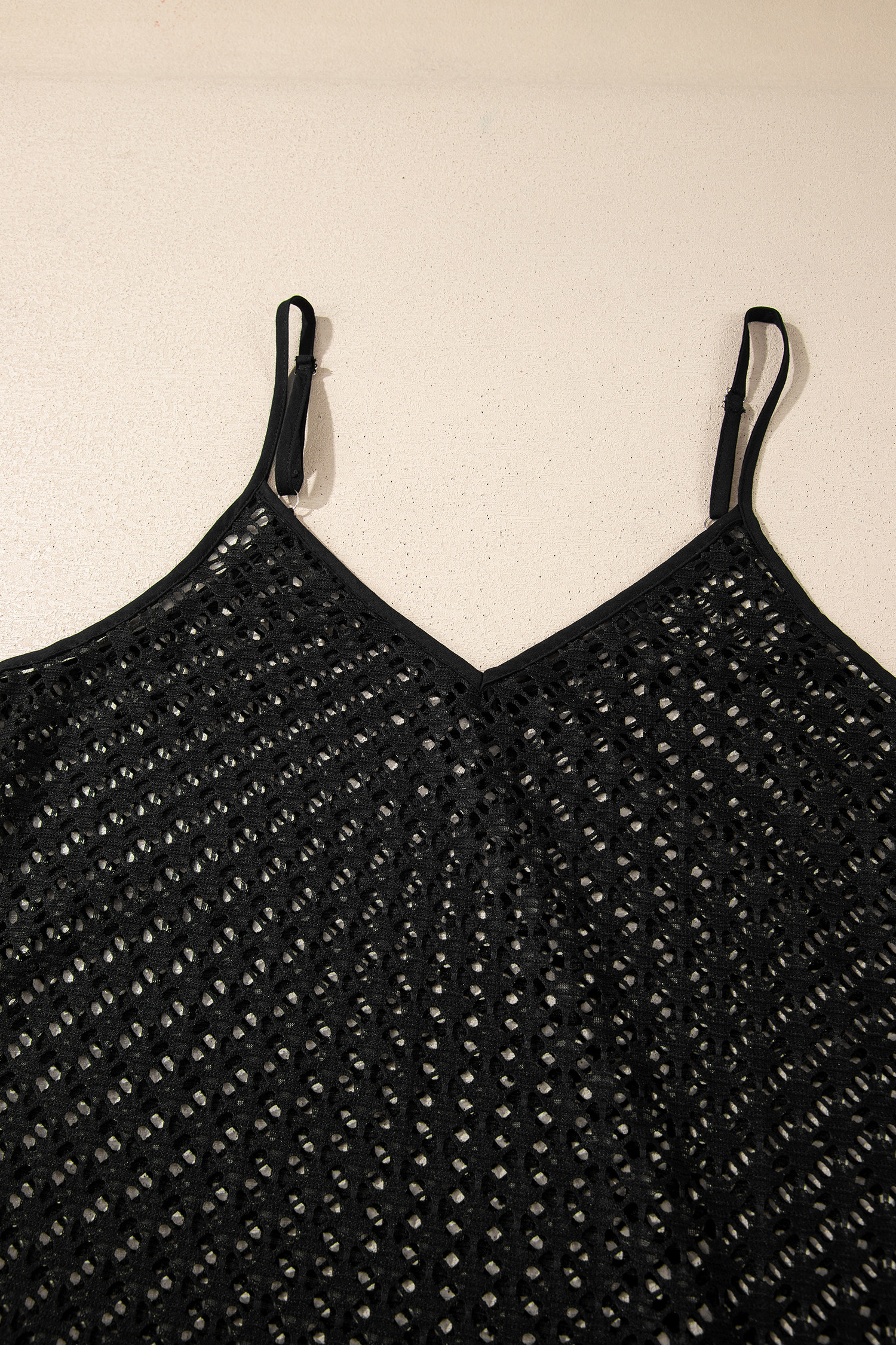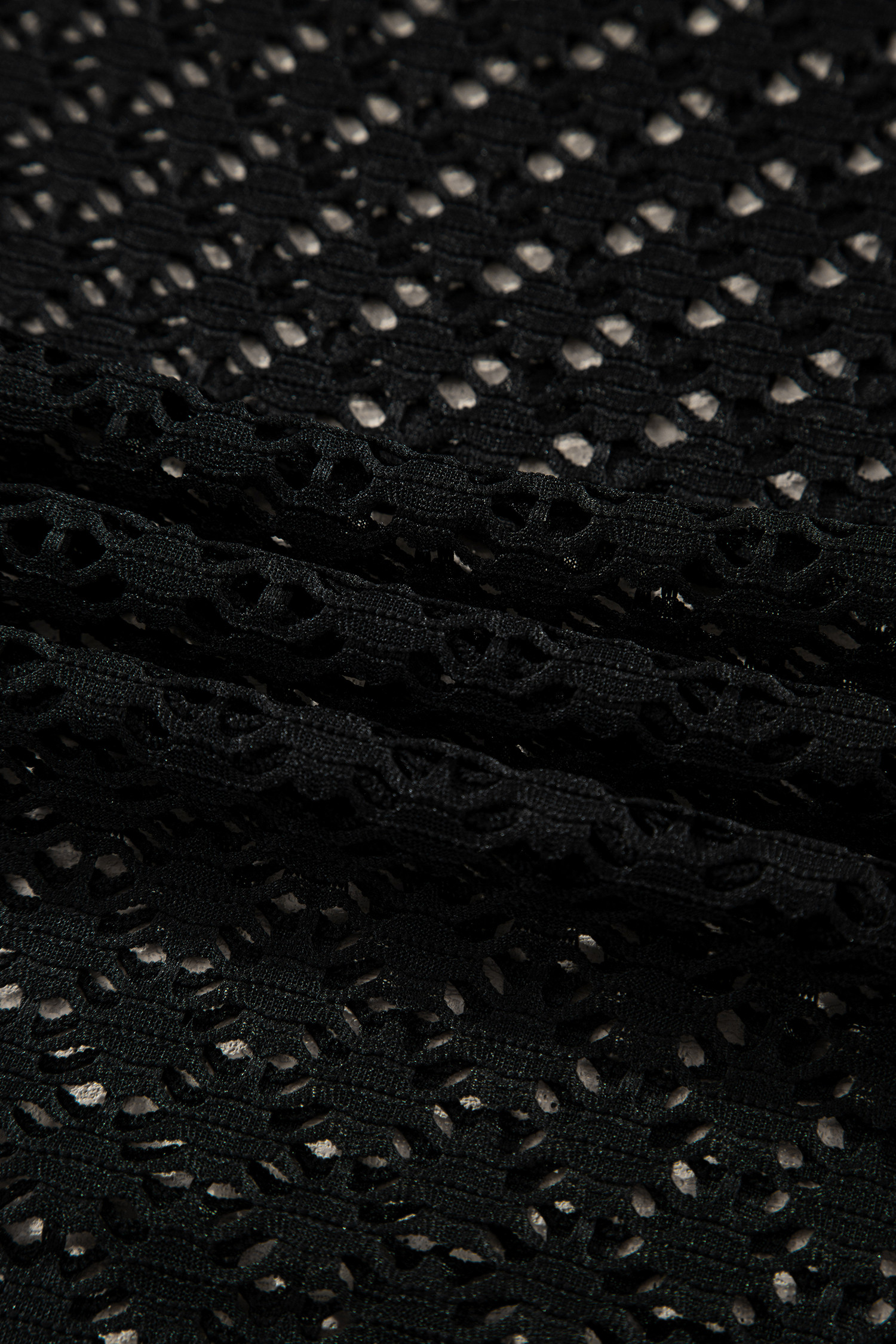 Black See Through Patterned Knit Ruffle Hem Patchwork Beach Cover Up