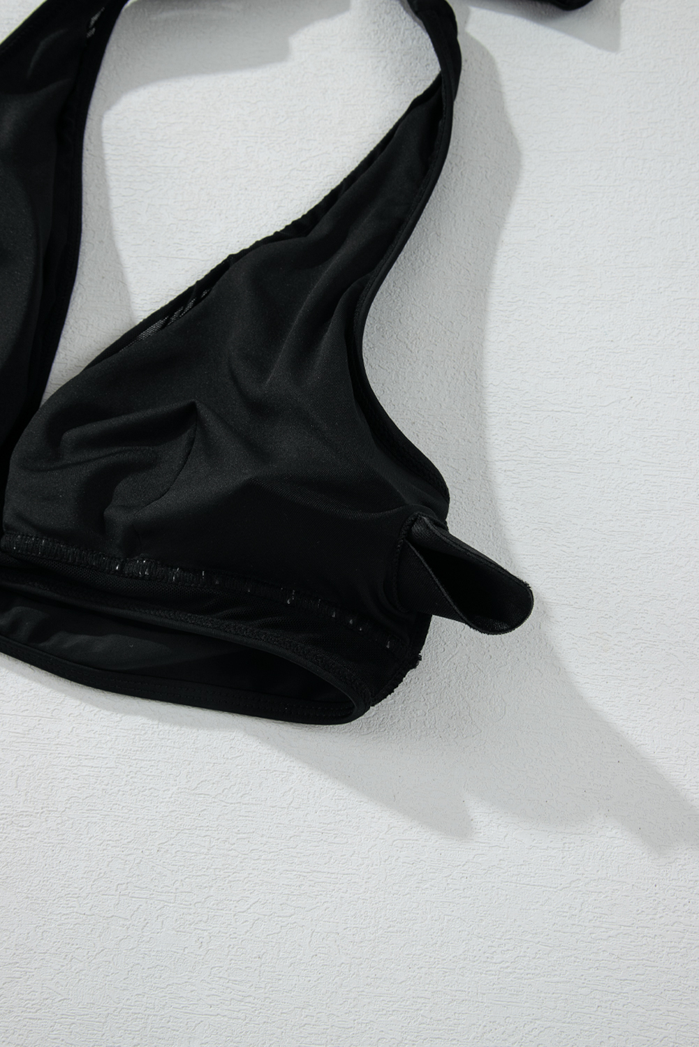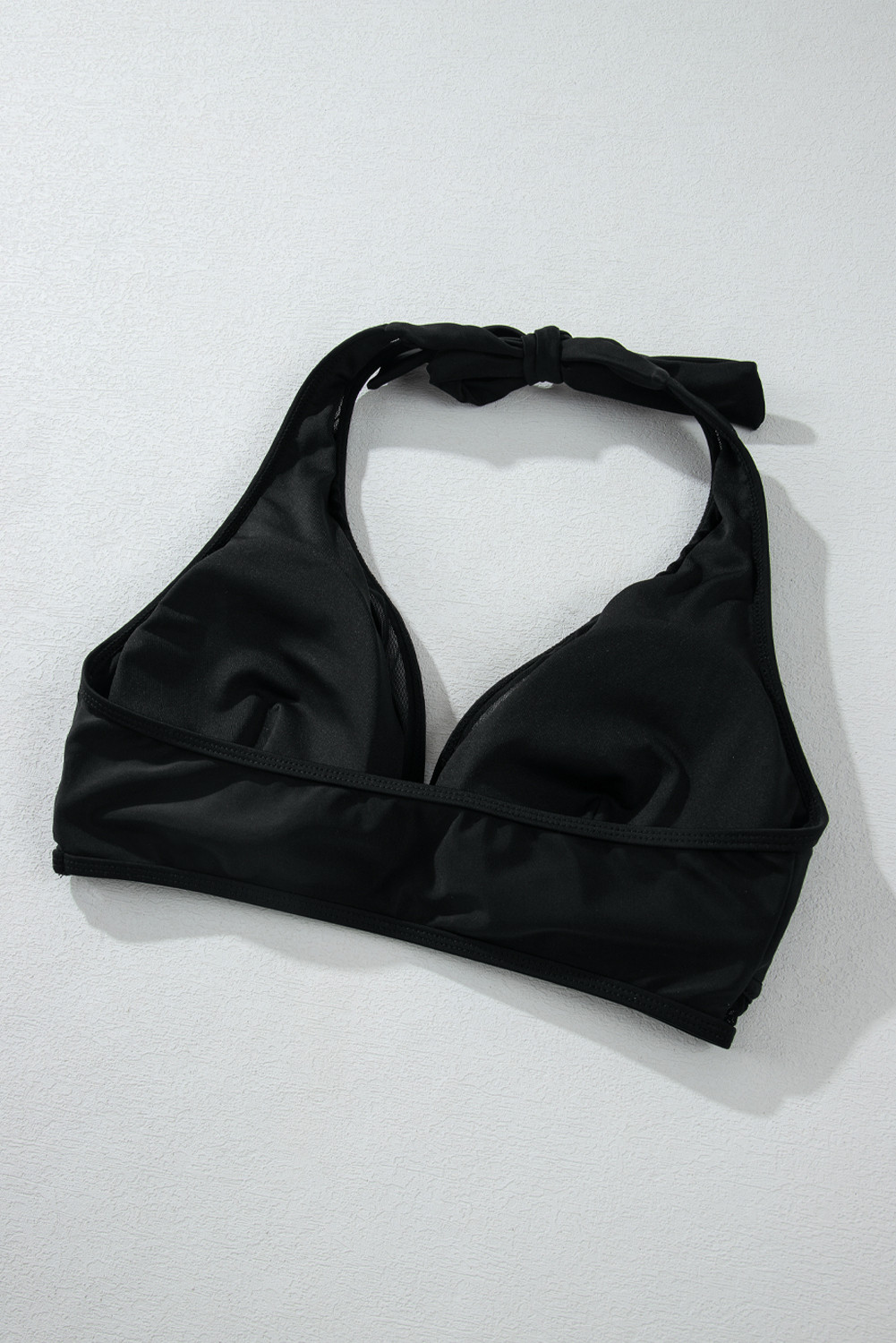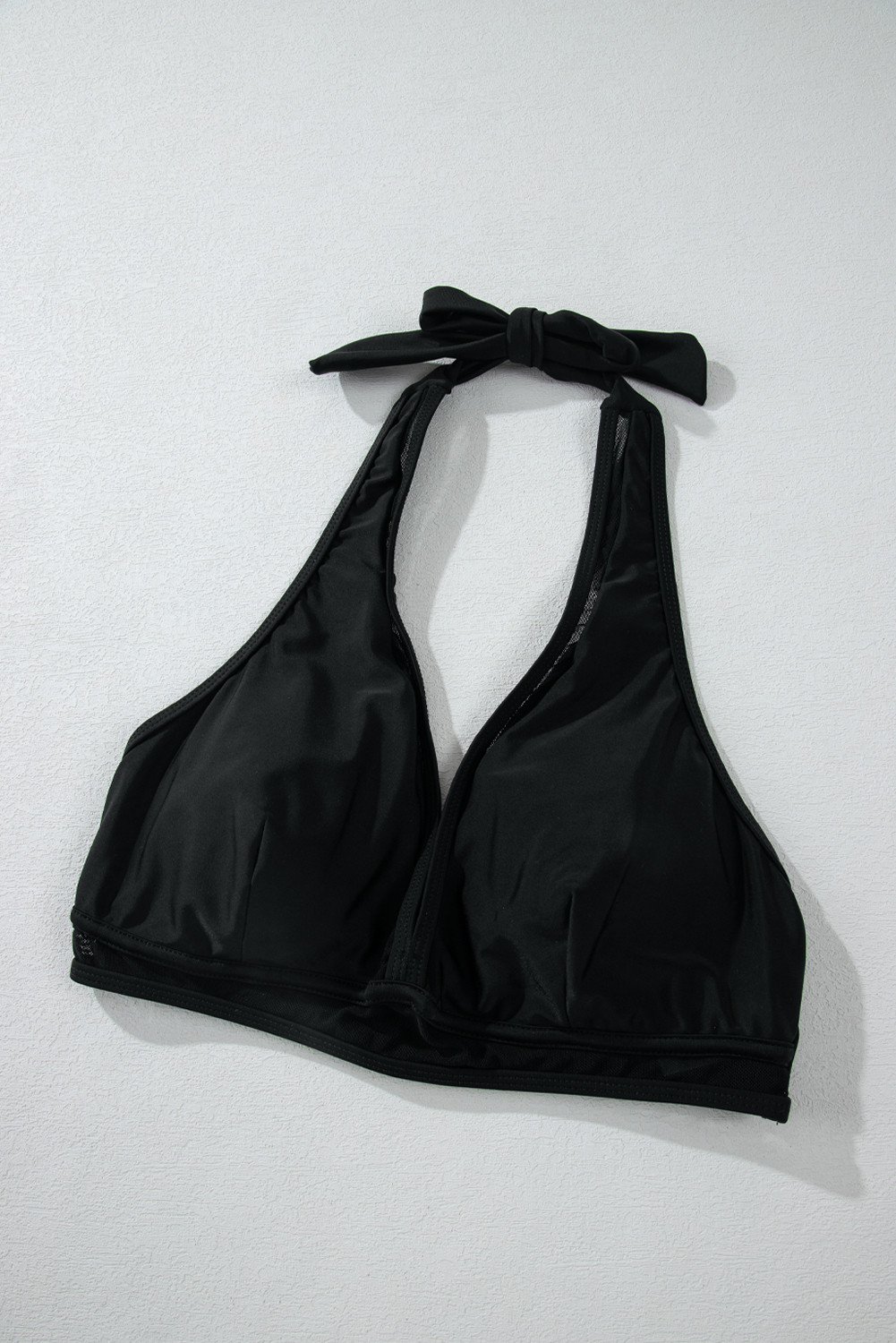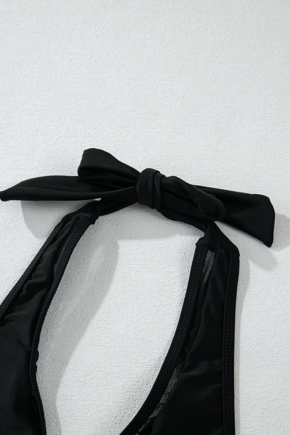 Black Sheer Mesh Edged Halter V Neck Push Up Bikini