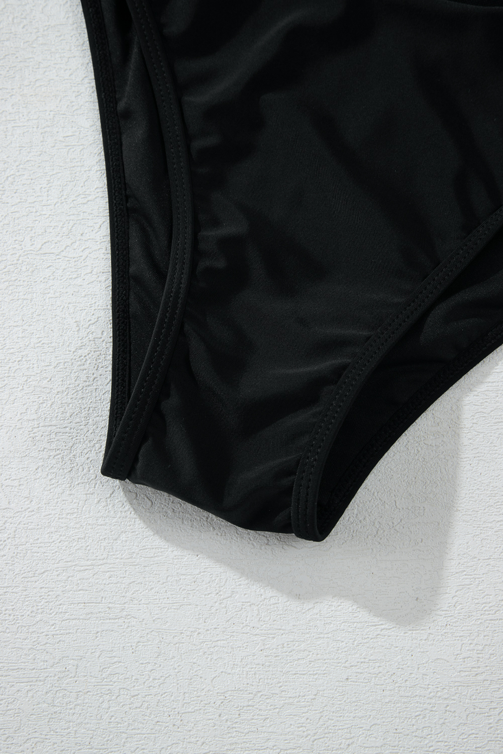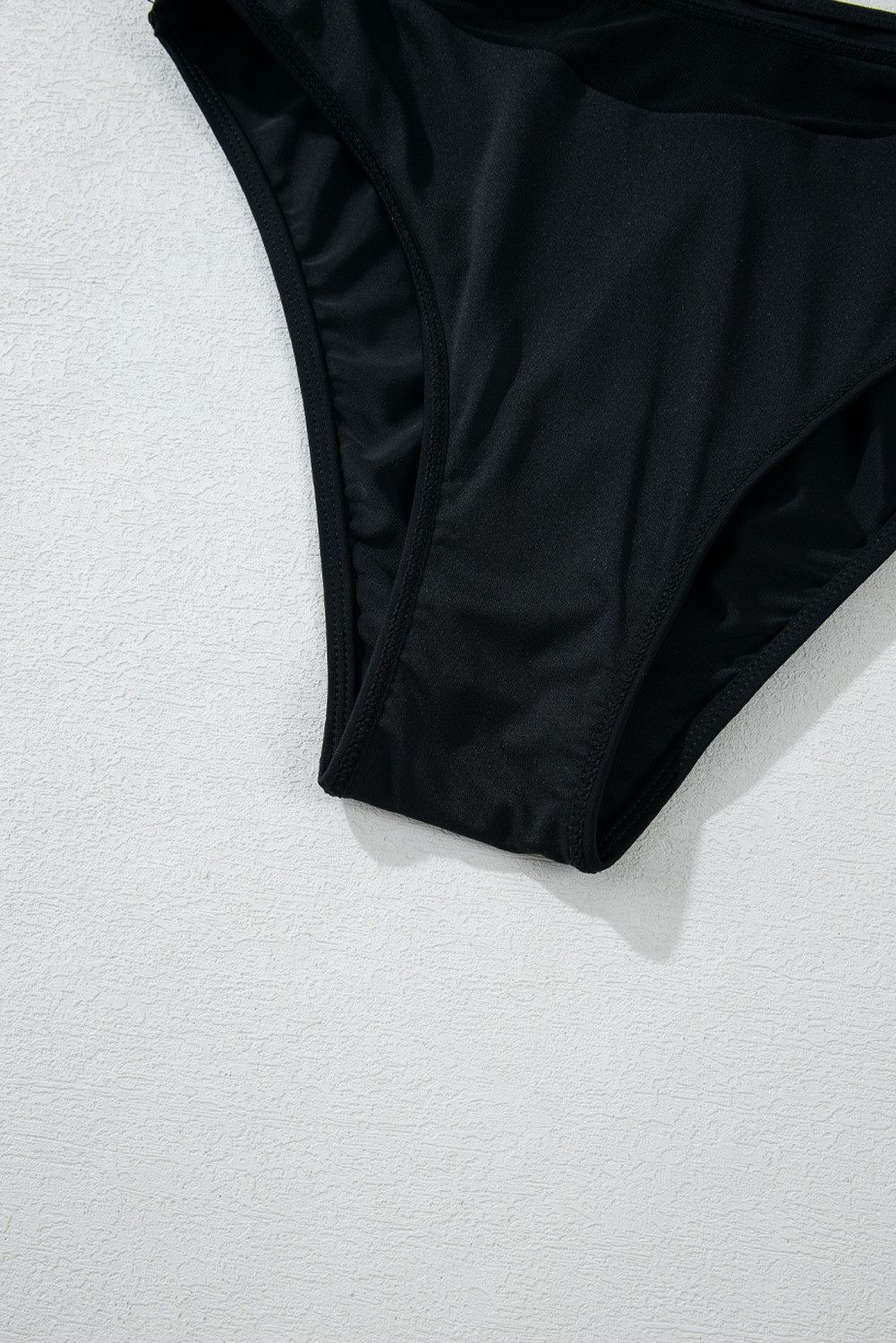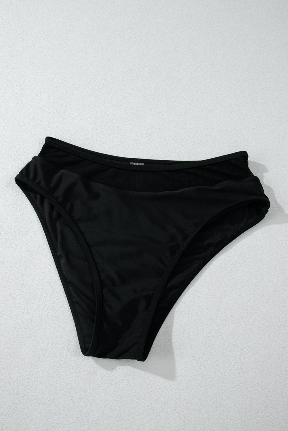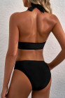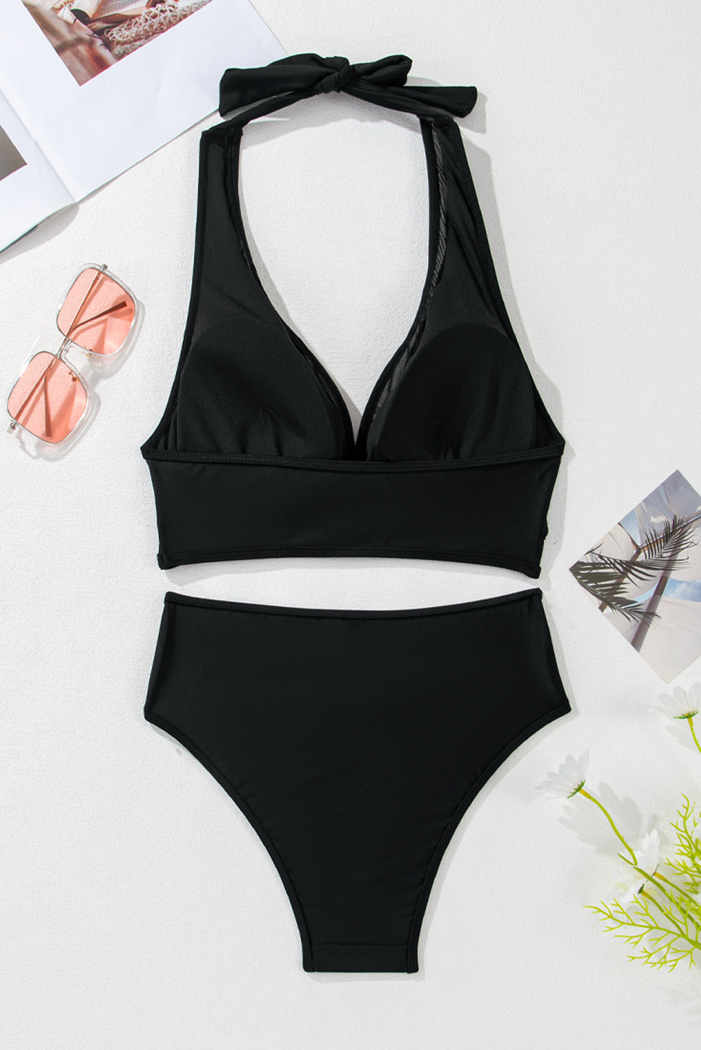 Black Sheer Mesh Edged Halter V Neck Push Up Bikini