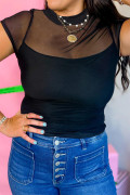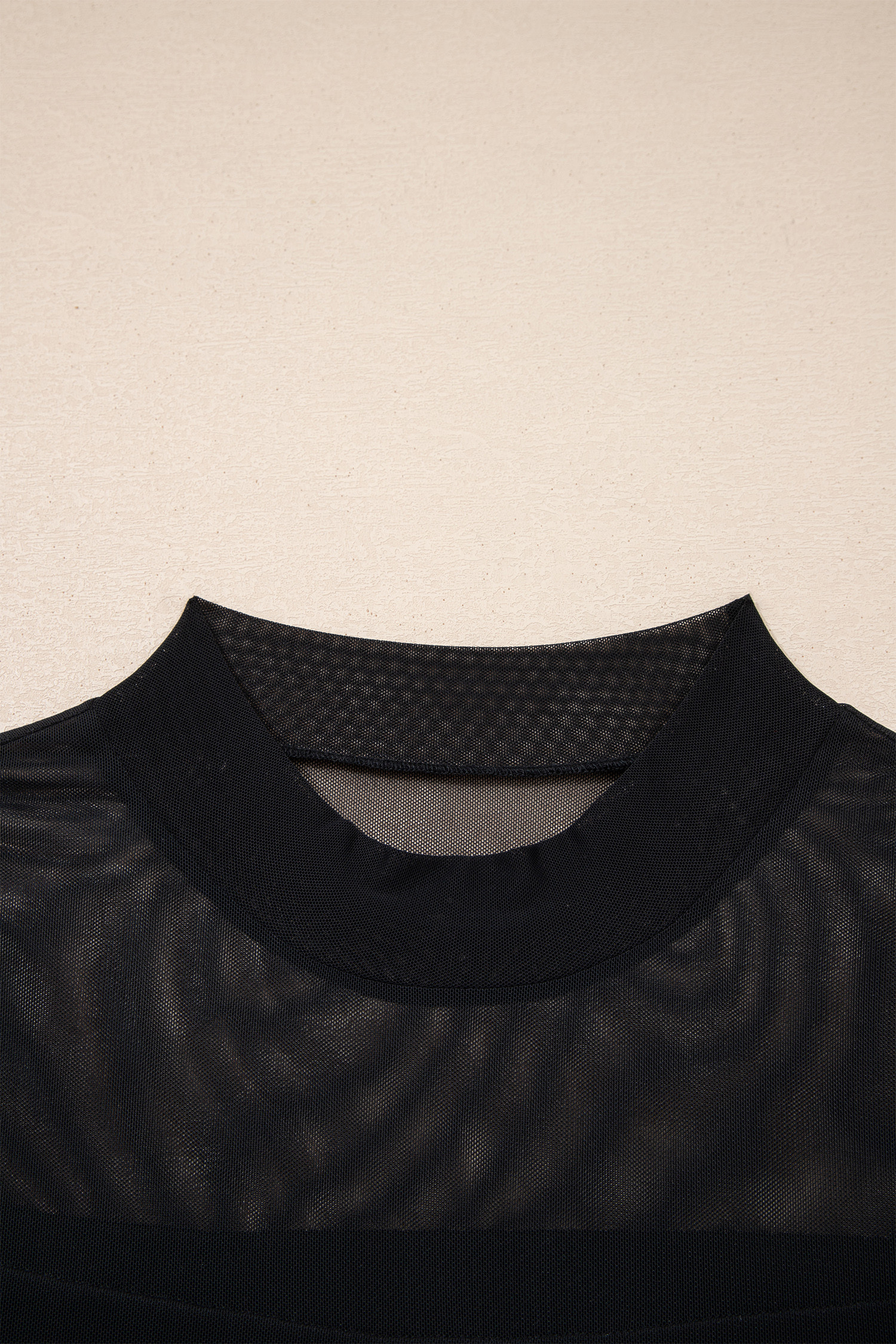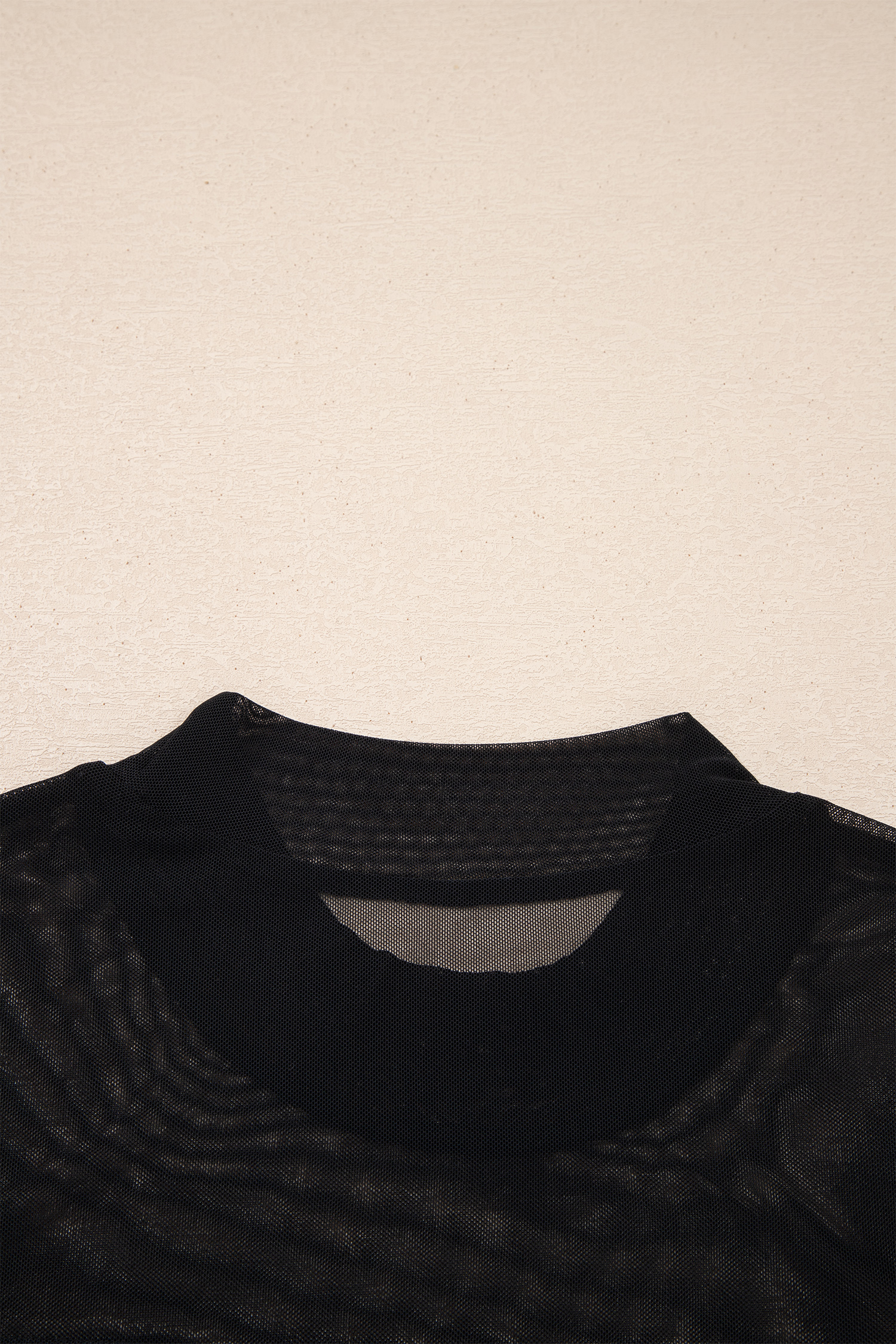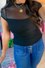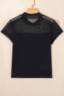 Black Sheer Mesh Patchwork Cap Sleeve T Shirt