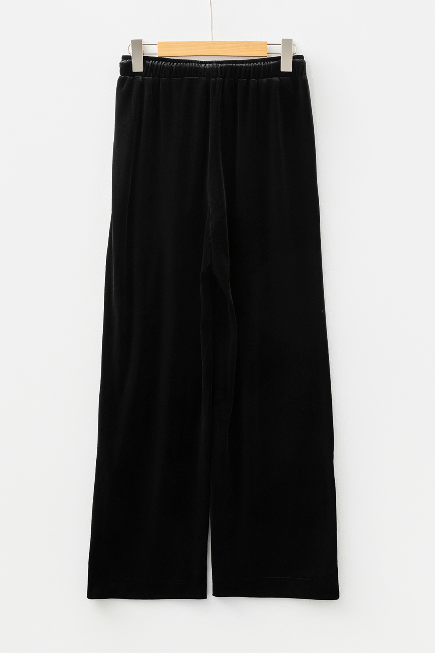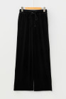 Black Shiny Velvet Drawstring High Waist Straight Leg Casual Pants