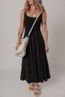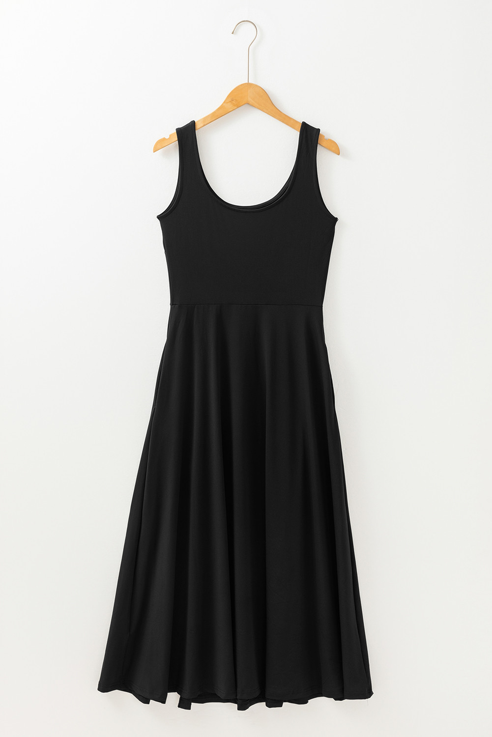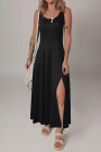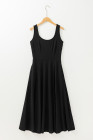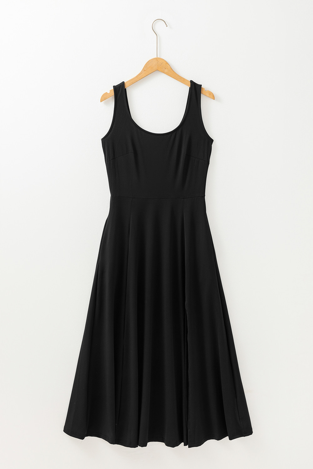 Black Sleeveless Scoop Neck Flared Split Midi Dress