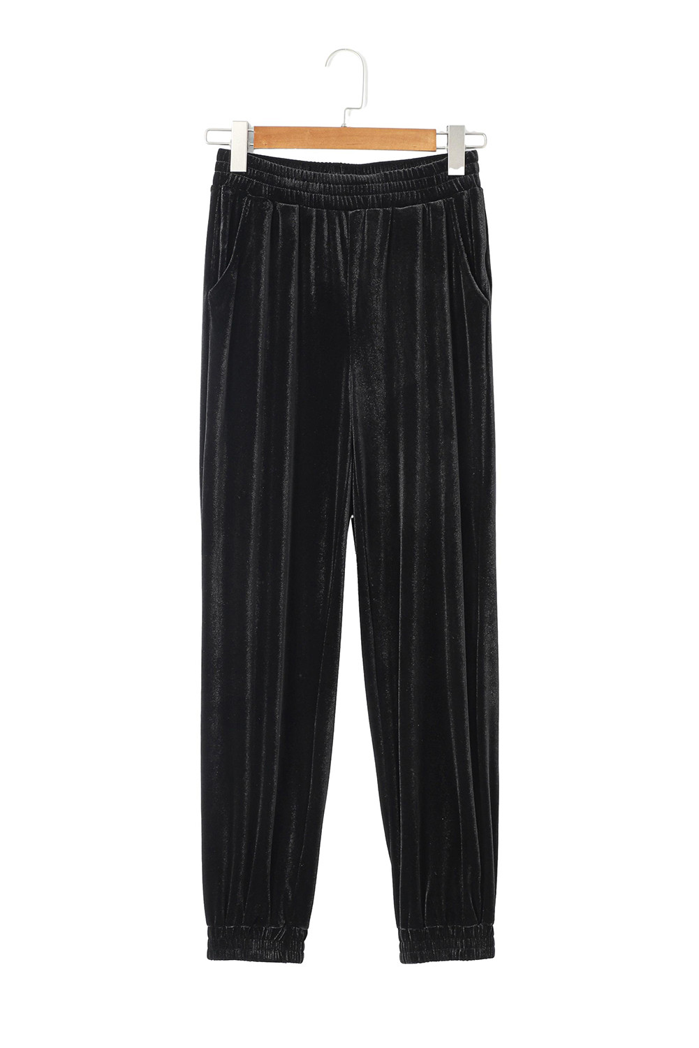 Black Solid Velvet Jogger Pants