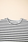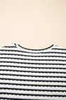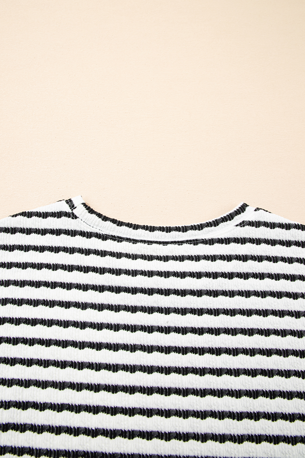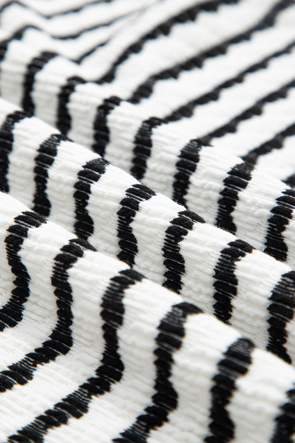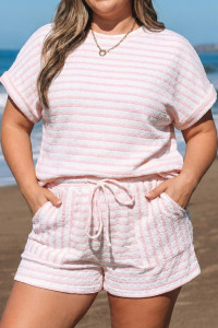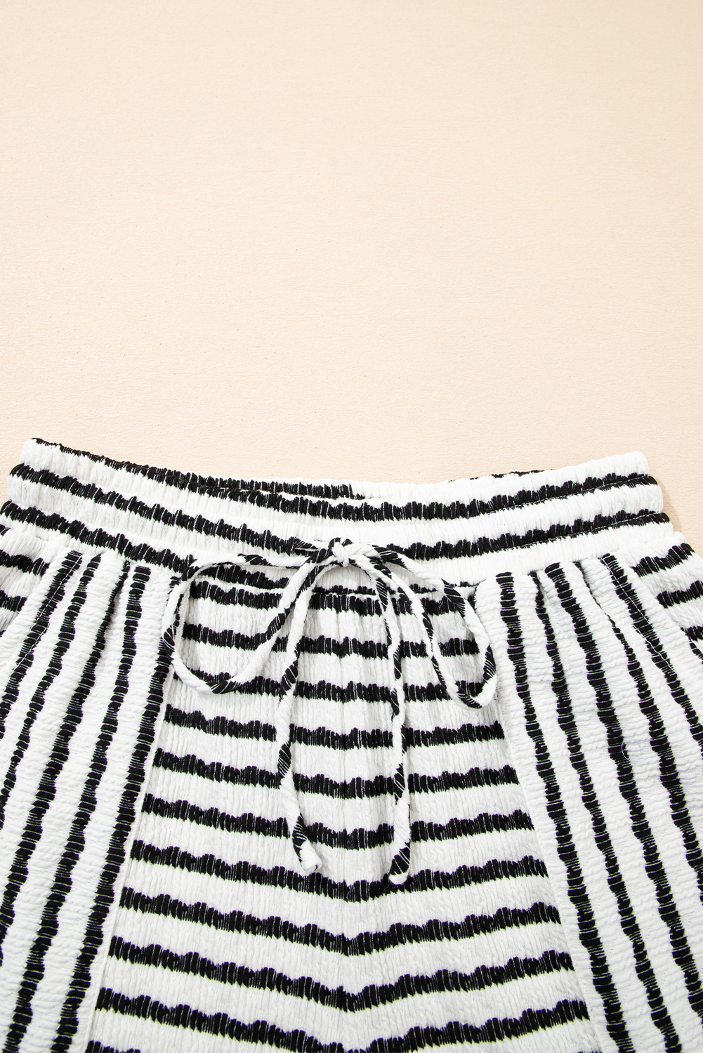Black Stripe Knitted Short Sleeve Top and Drawstring Shorts Set