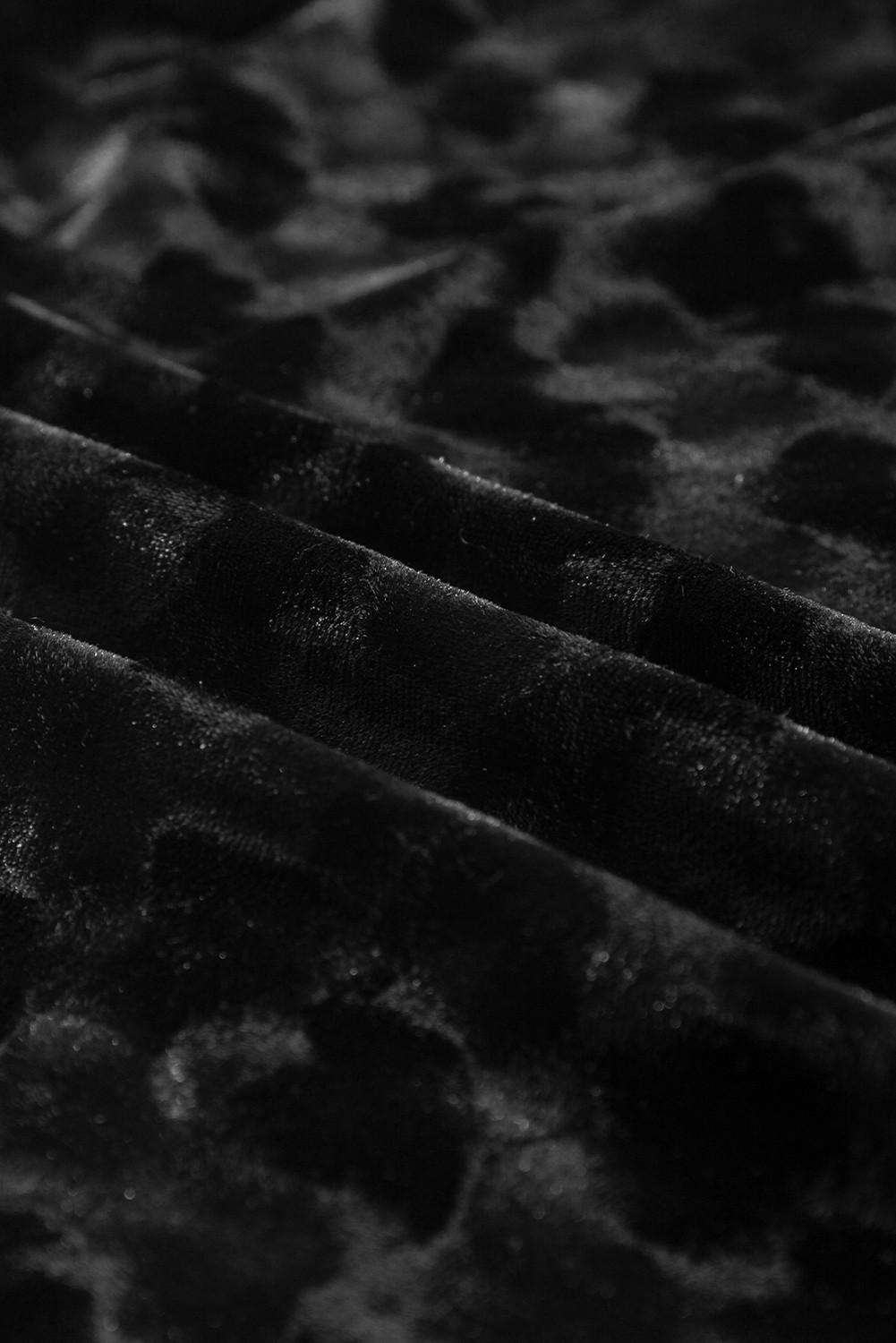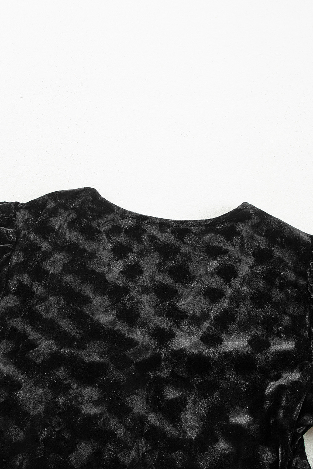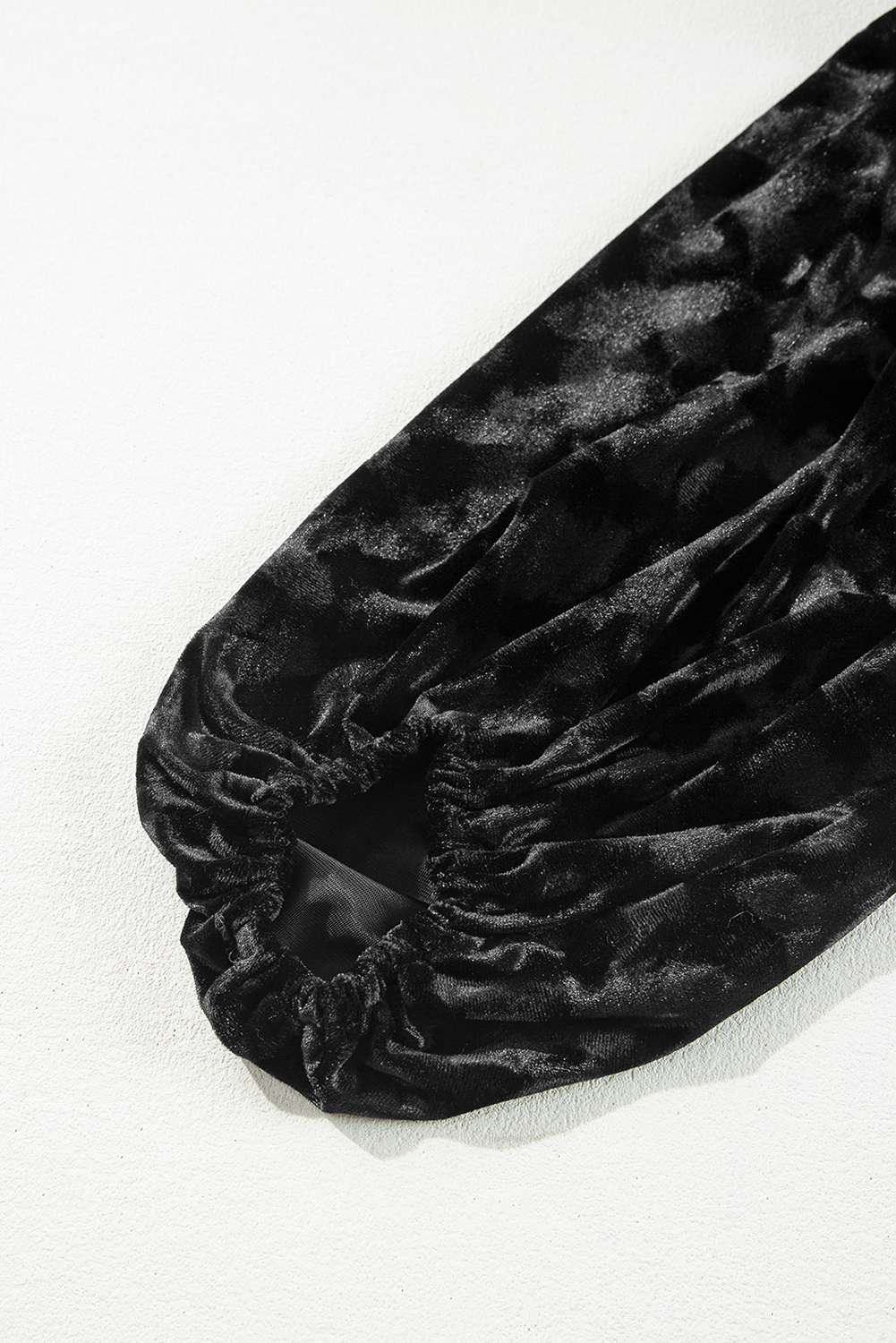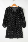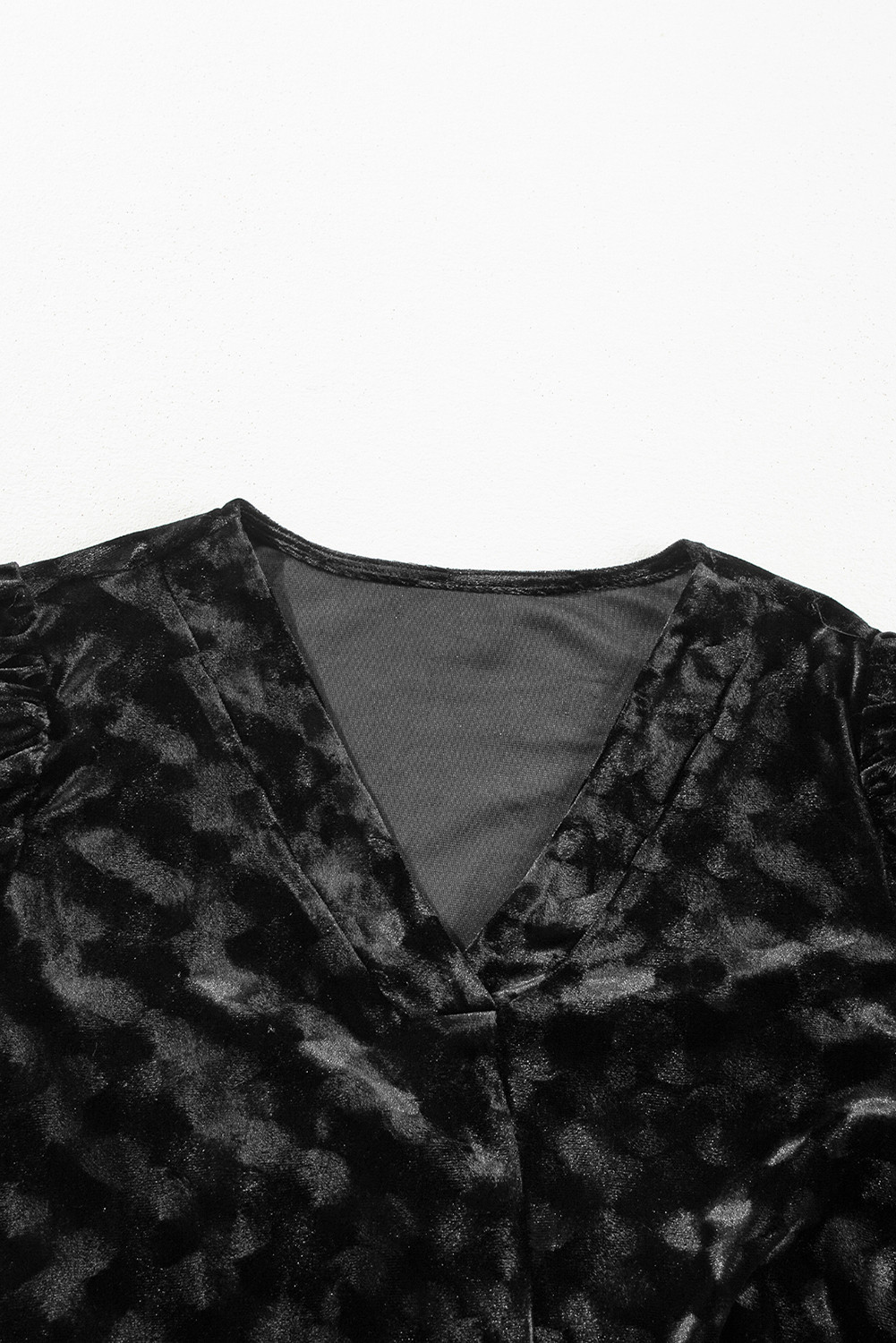 Black Textured V Neck Balloon Sleeve Velvet Mini Dress