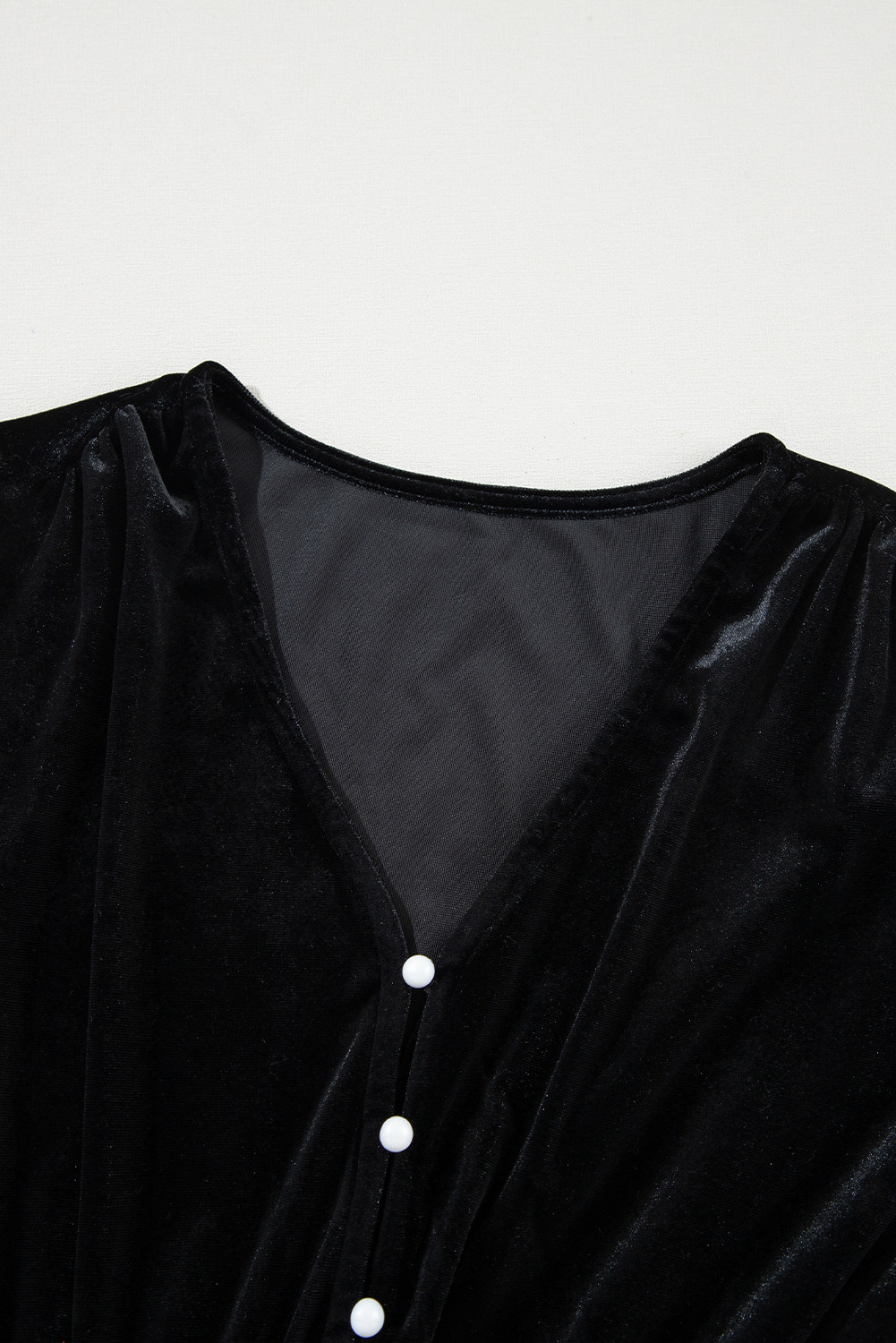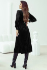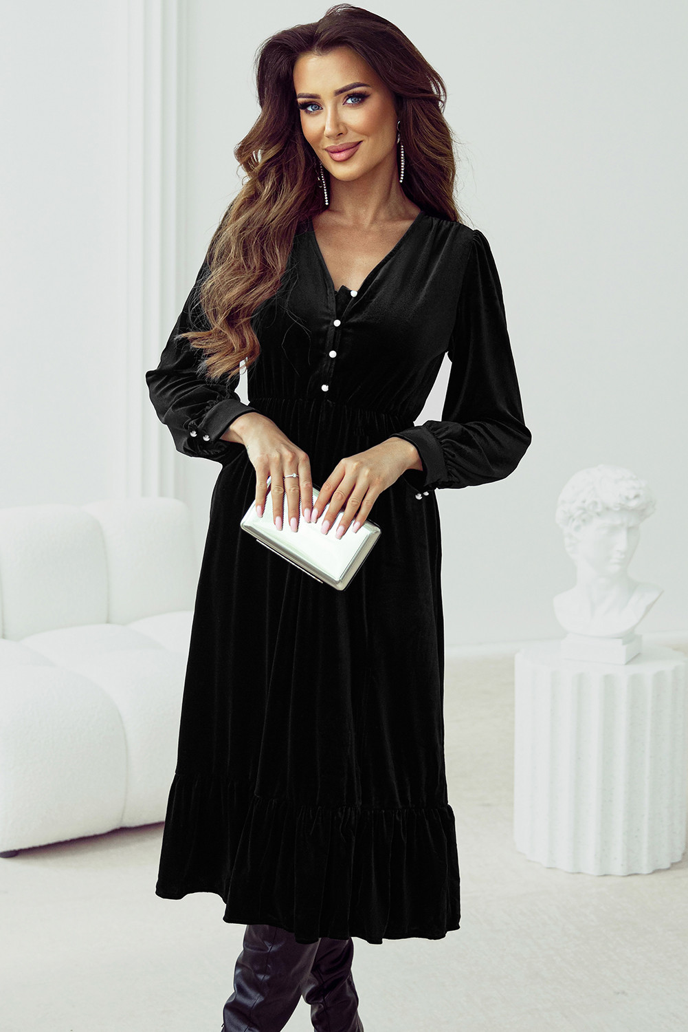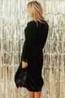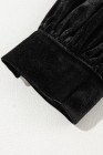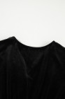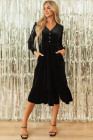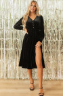 Black Velvet Buttoned Puff Sleeve V Neck Split Midi Dress
