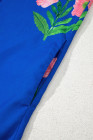 Blue Floral Short Sleeve Split Neck Loose Mini Dress