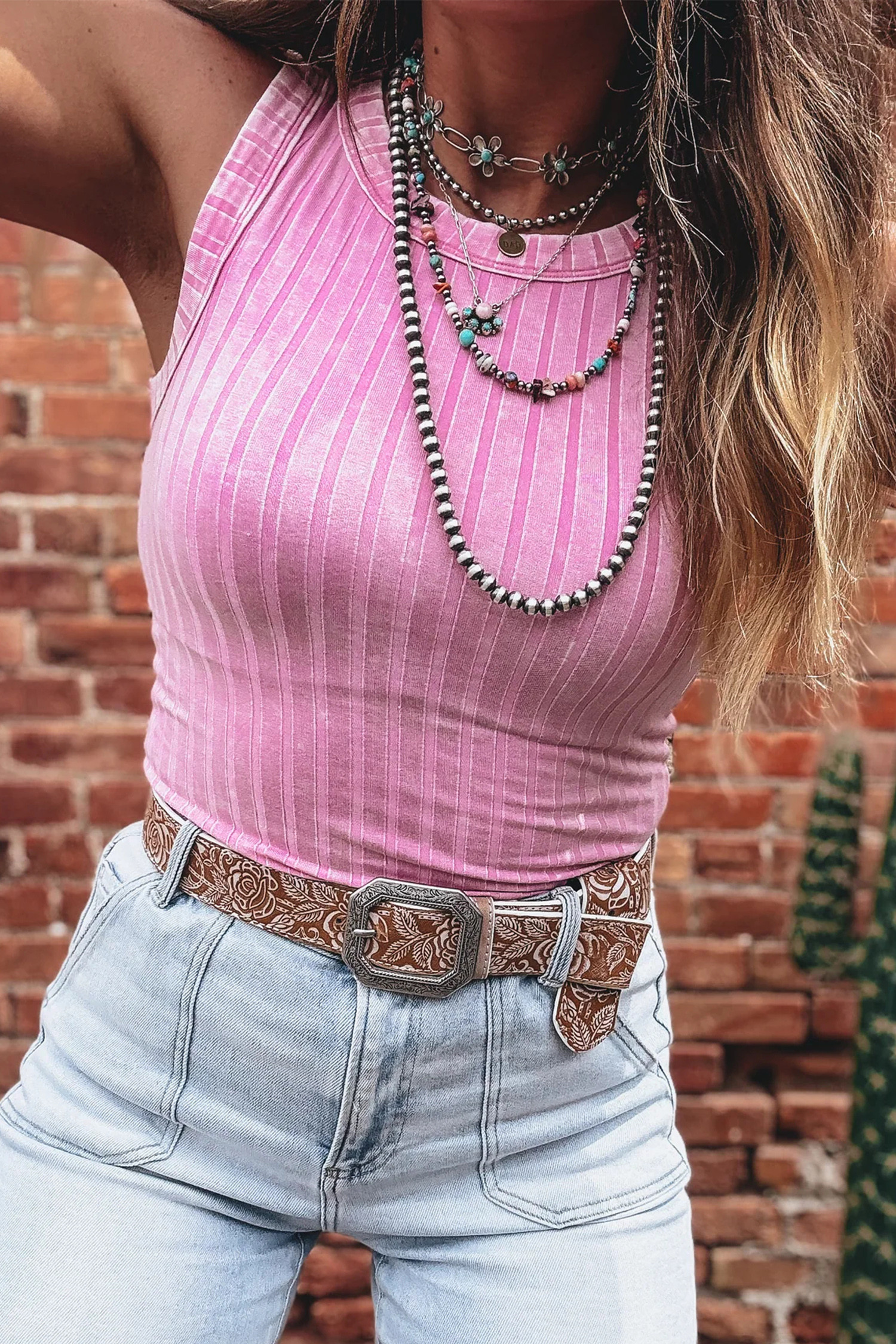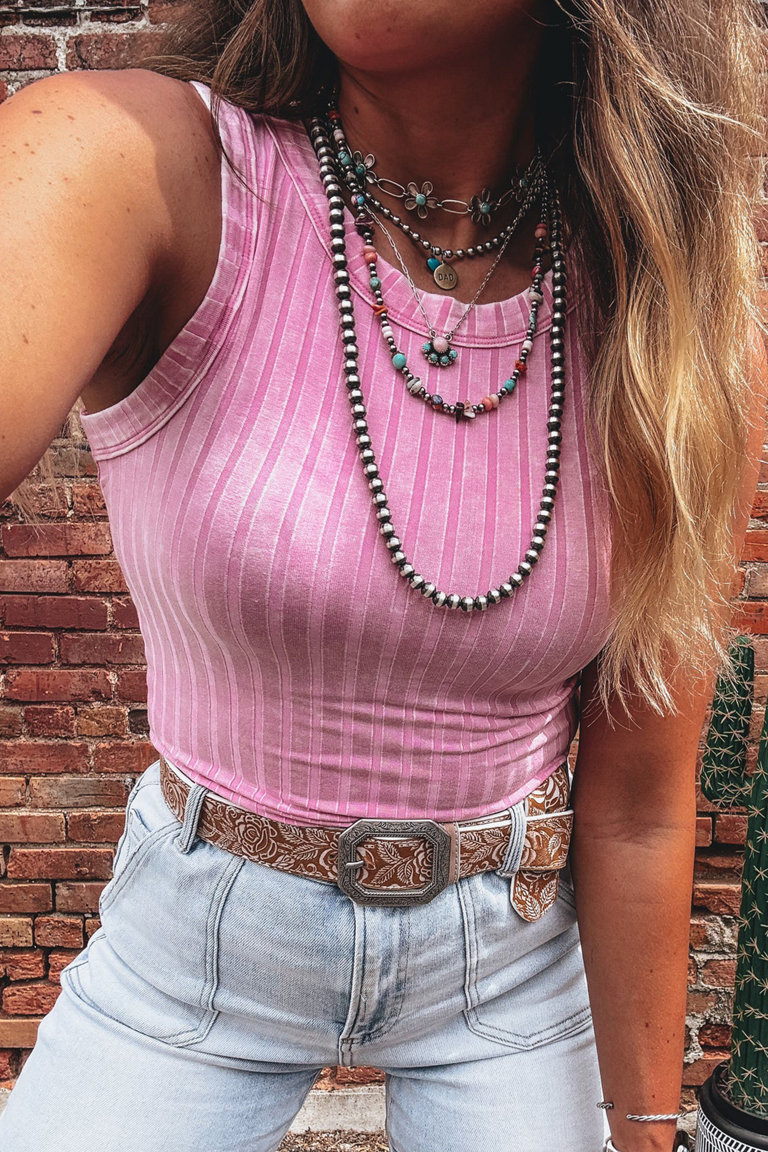 Bonbon Slim Ribbed Mineral Wash Tank Top