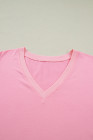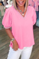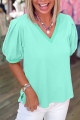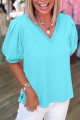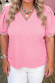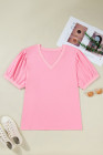 Bonbon V Neck Pleated Short Puff Sleeve Plus Size Blouse