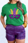 Bright Green Glitter Mardi Gras Mask Graphic T Shirt