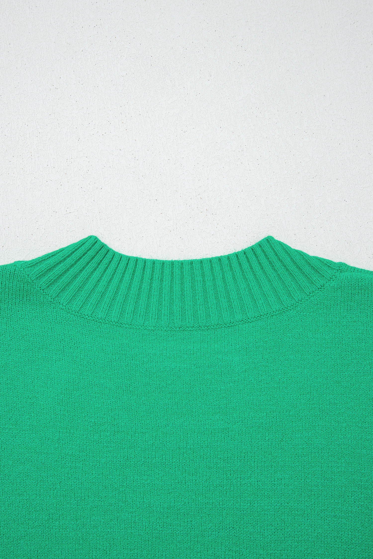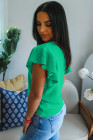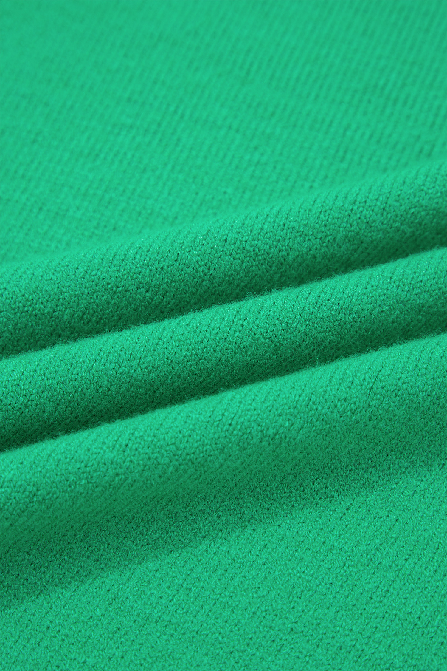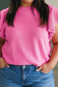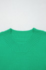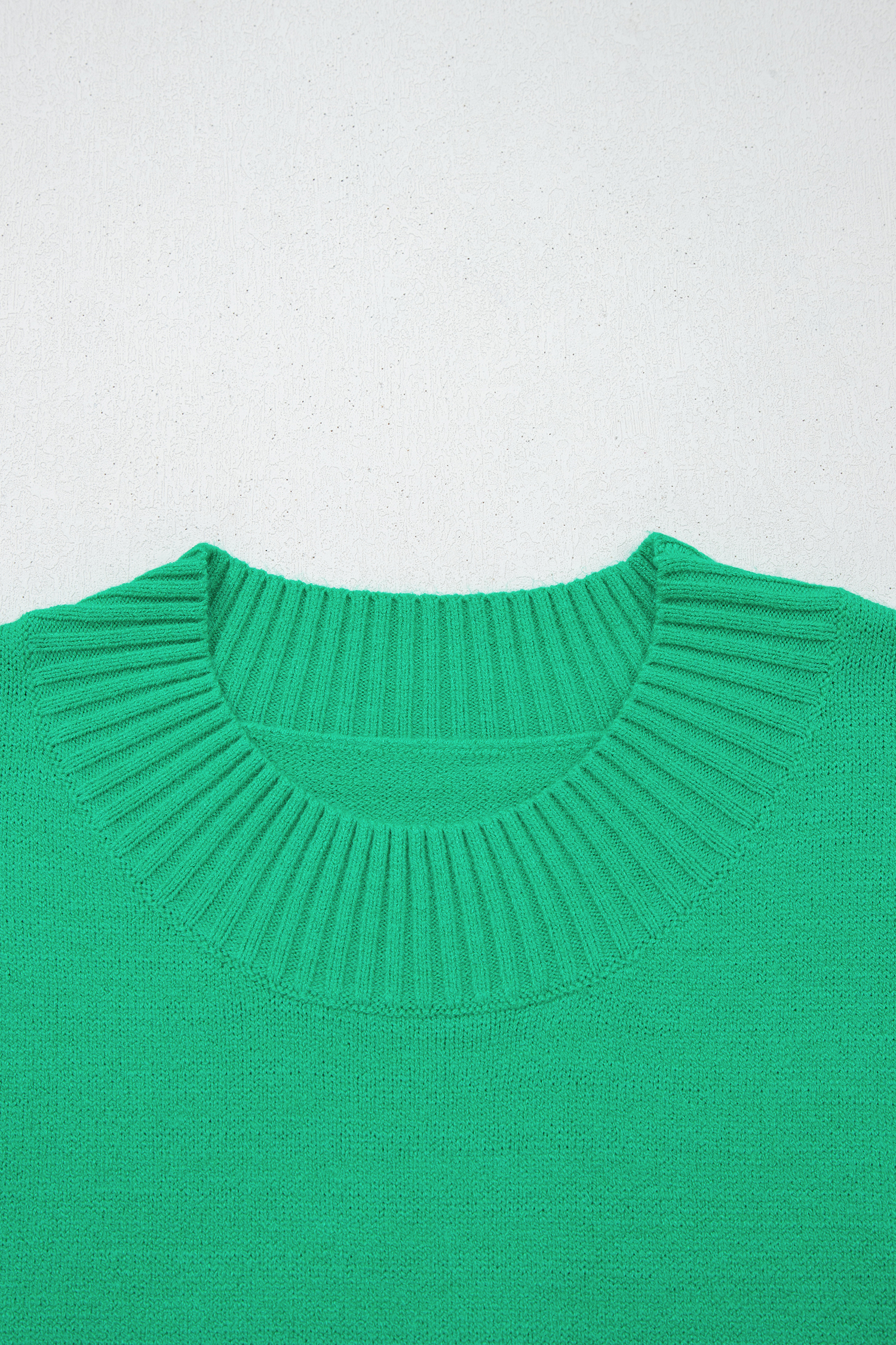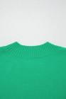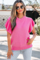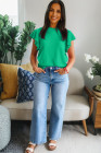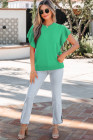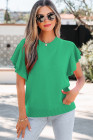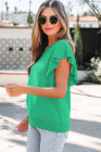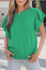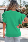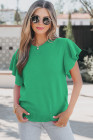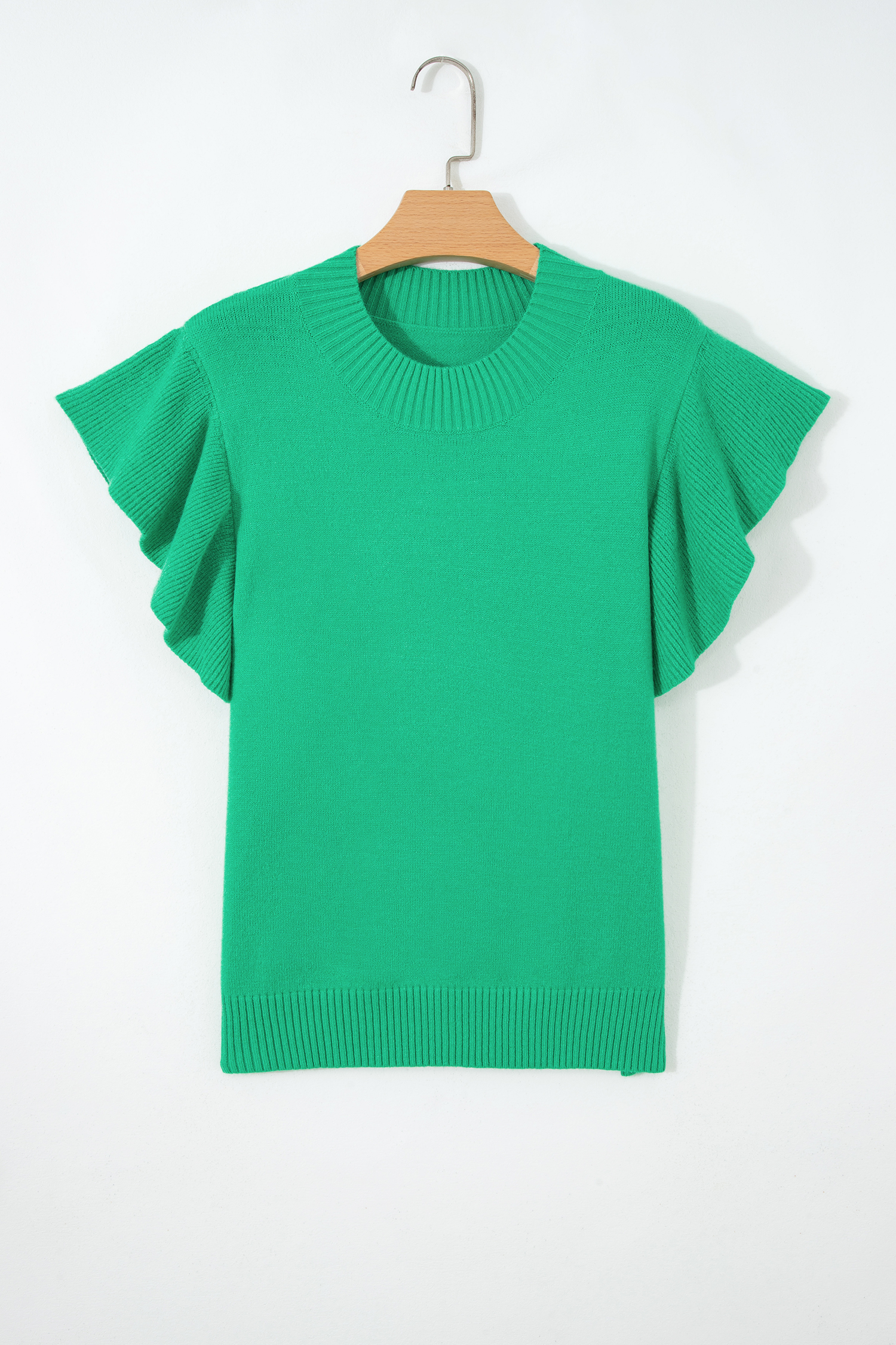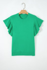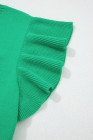 Bright Green Solid Color Ribbed Trim Round Neck Ruffle Short Sleeve Sweater