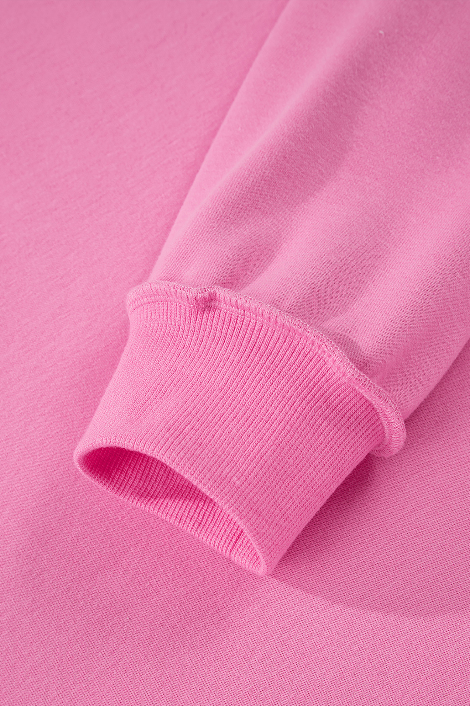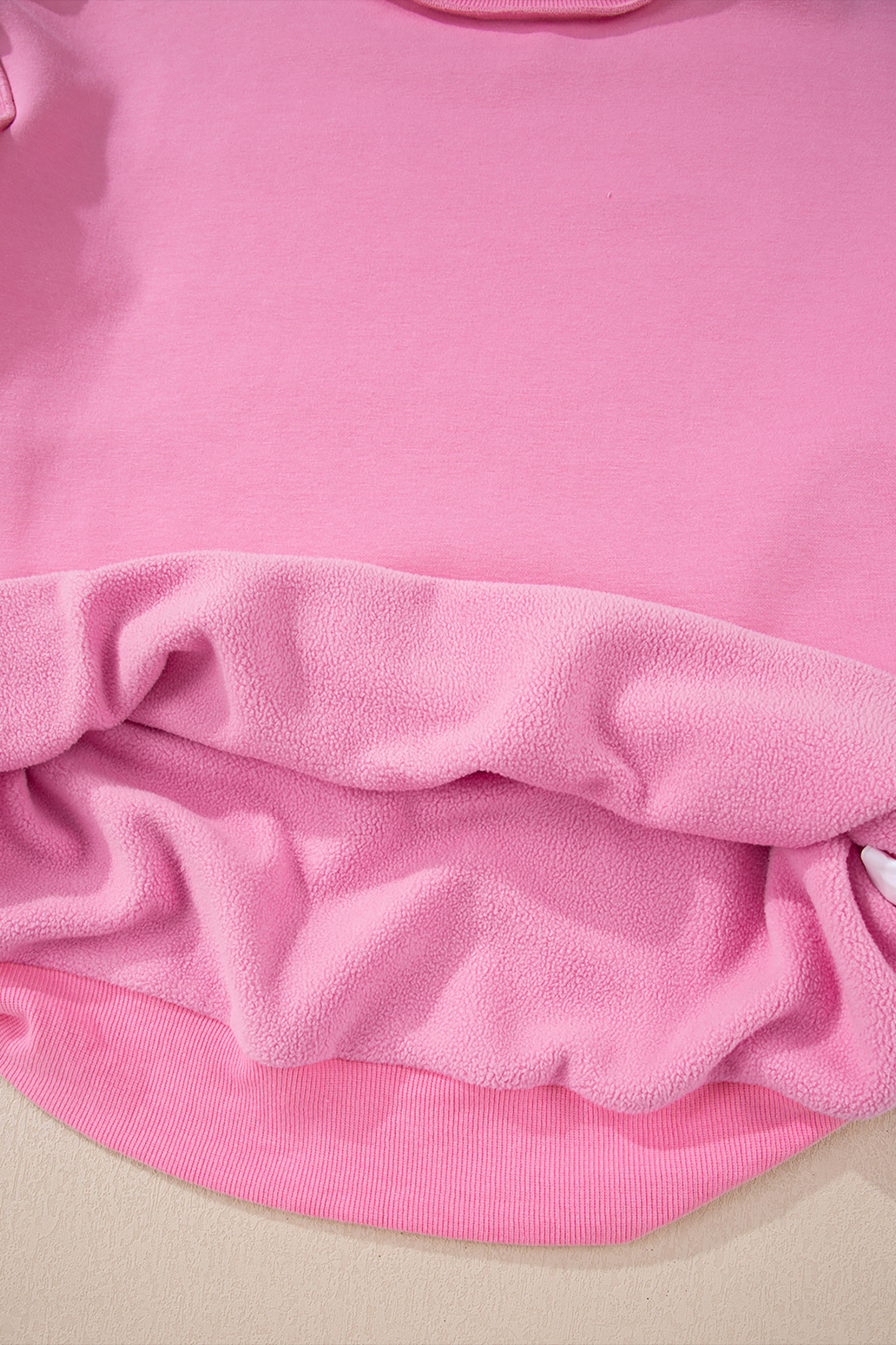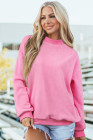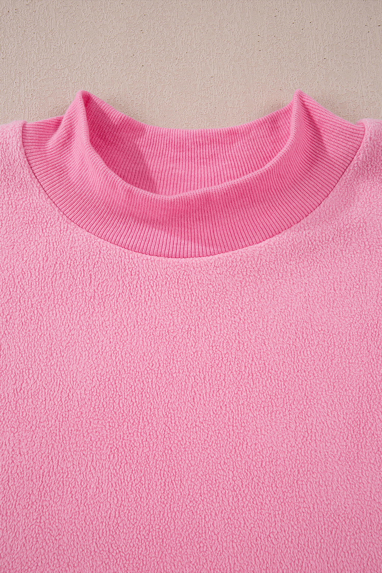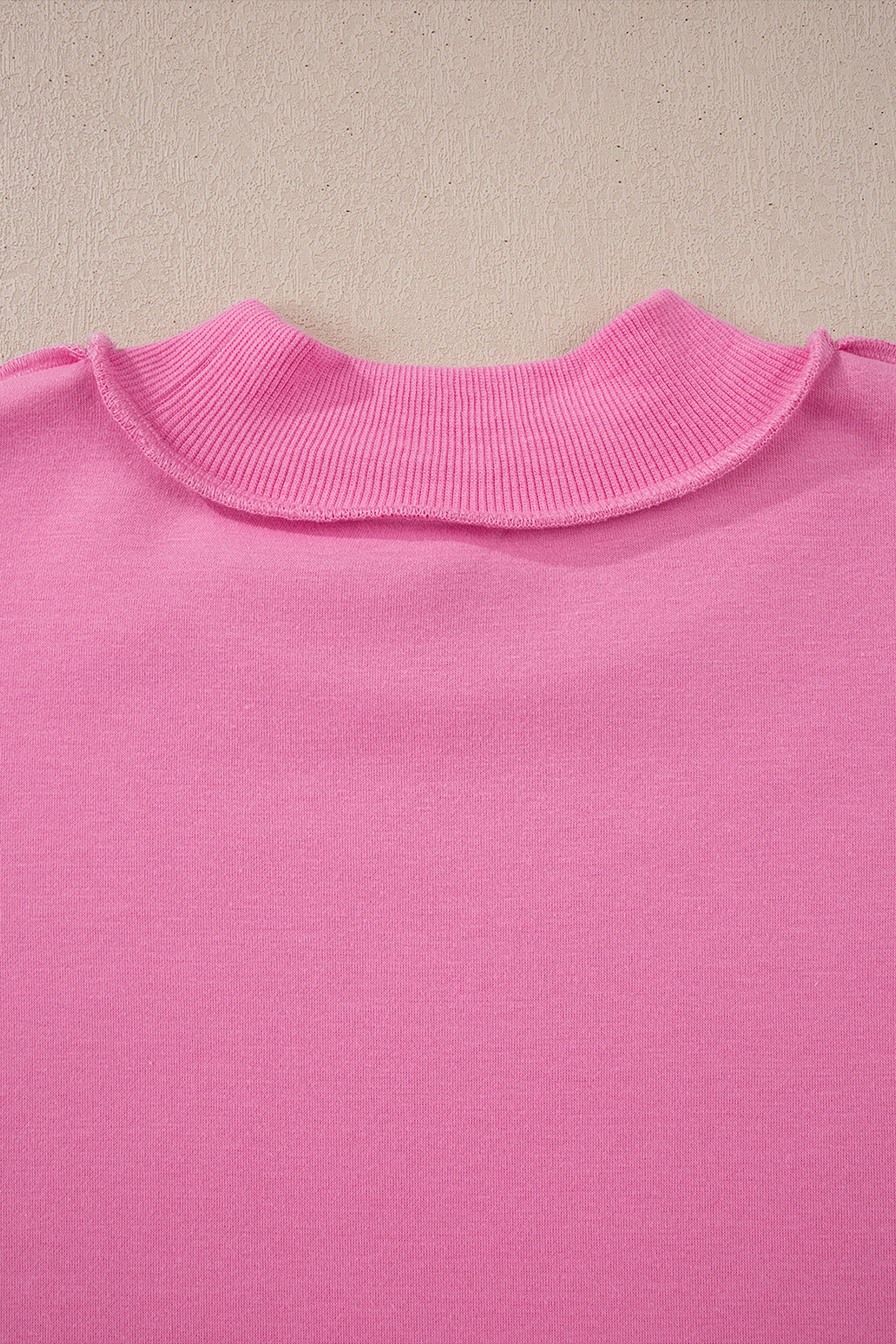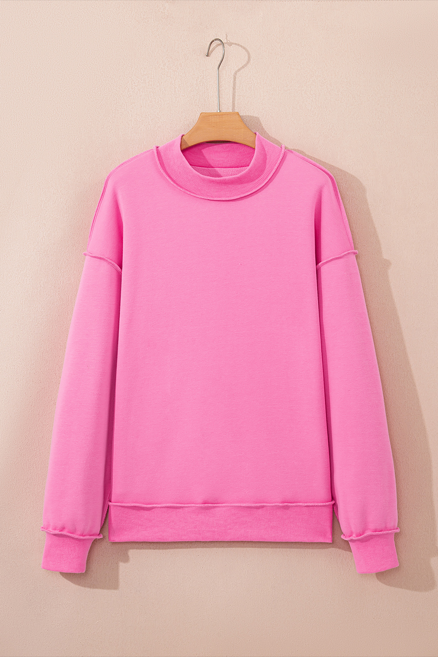 Bright Pink Oversize Drop Shoulder Reversible Mock Neck Sweatshirt
