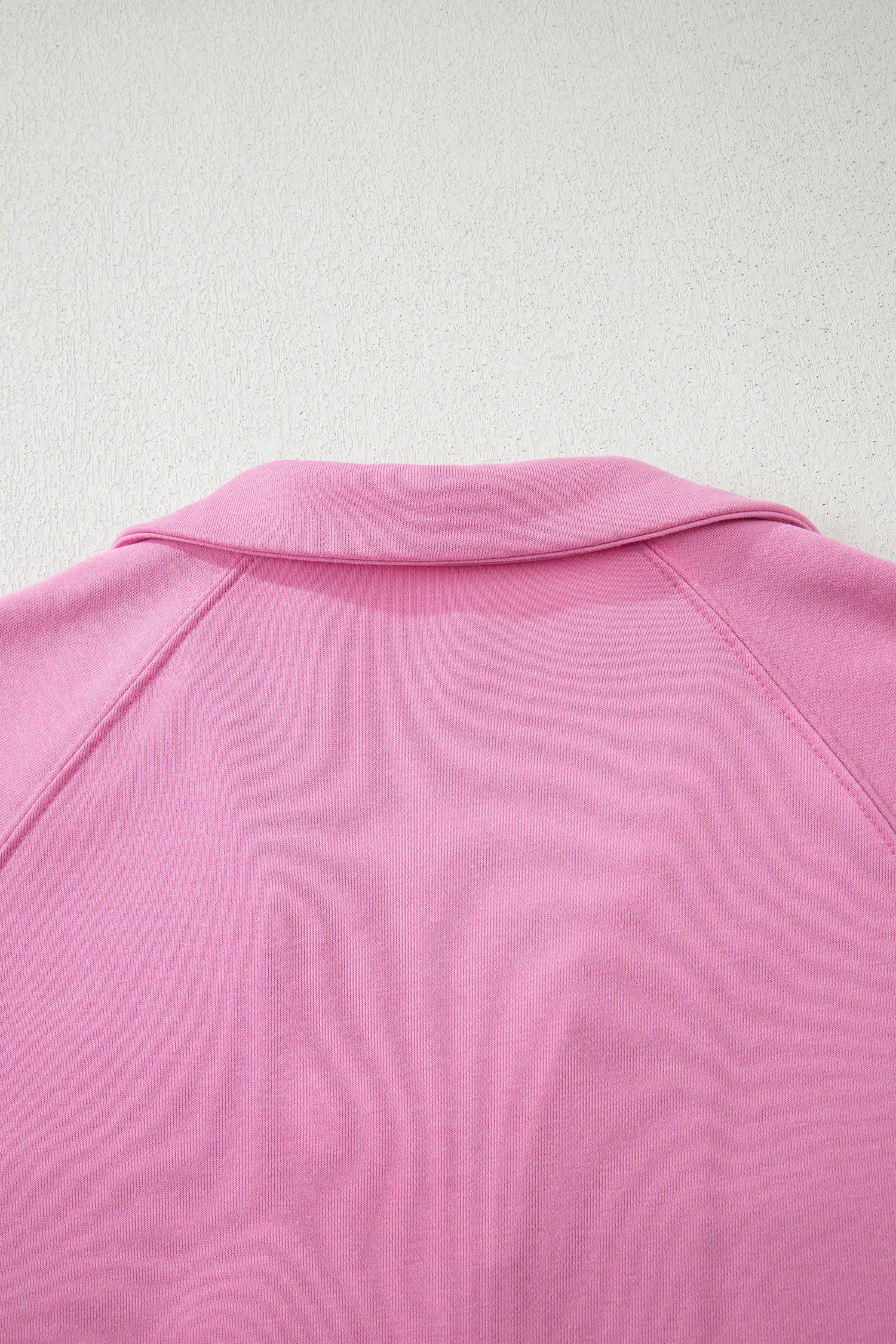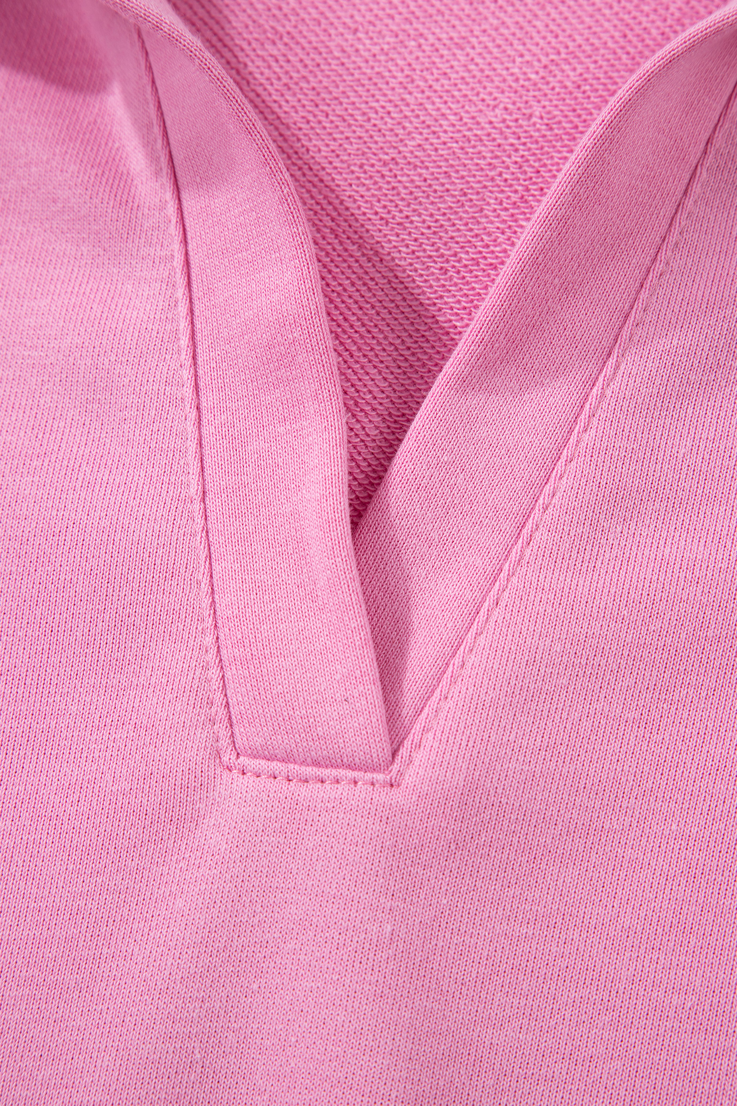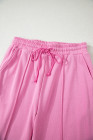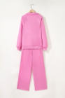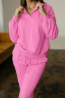 Bright Pink Polo Collar V Neck Pullover and Drawstring Sweatpants Set