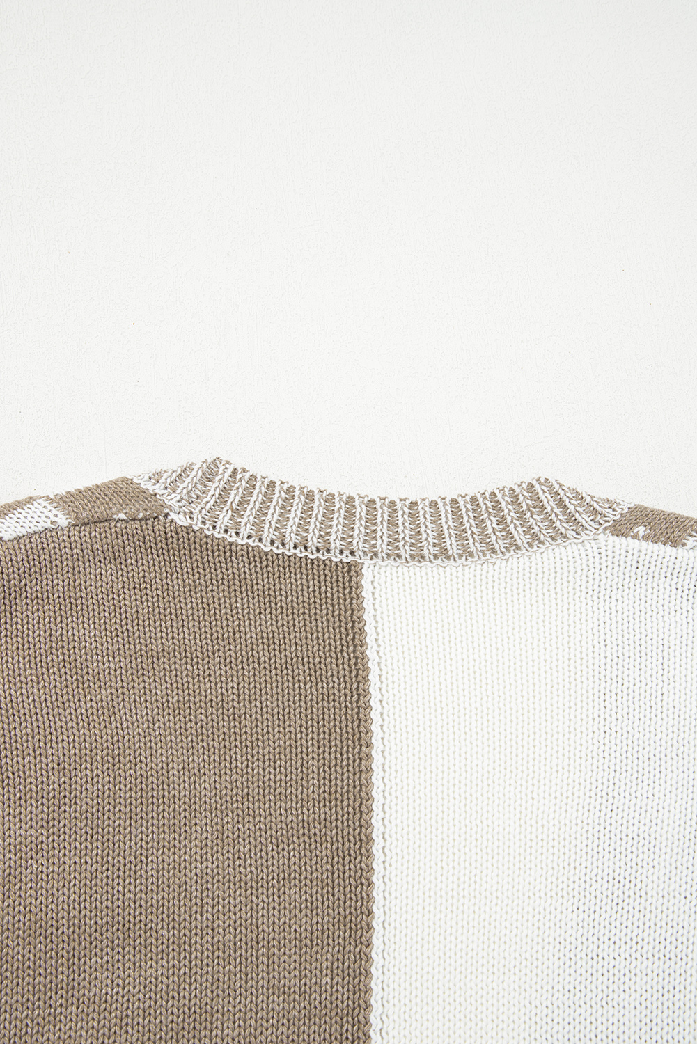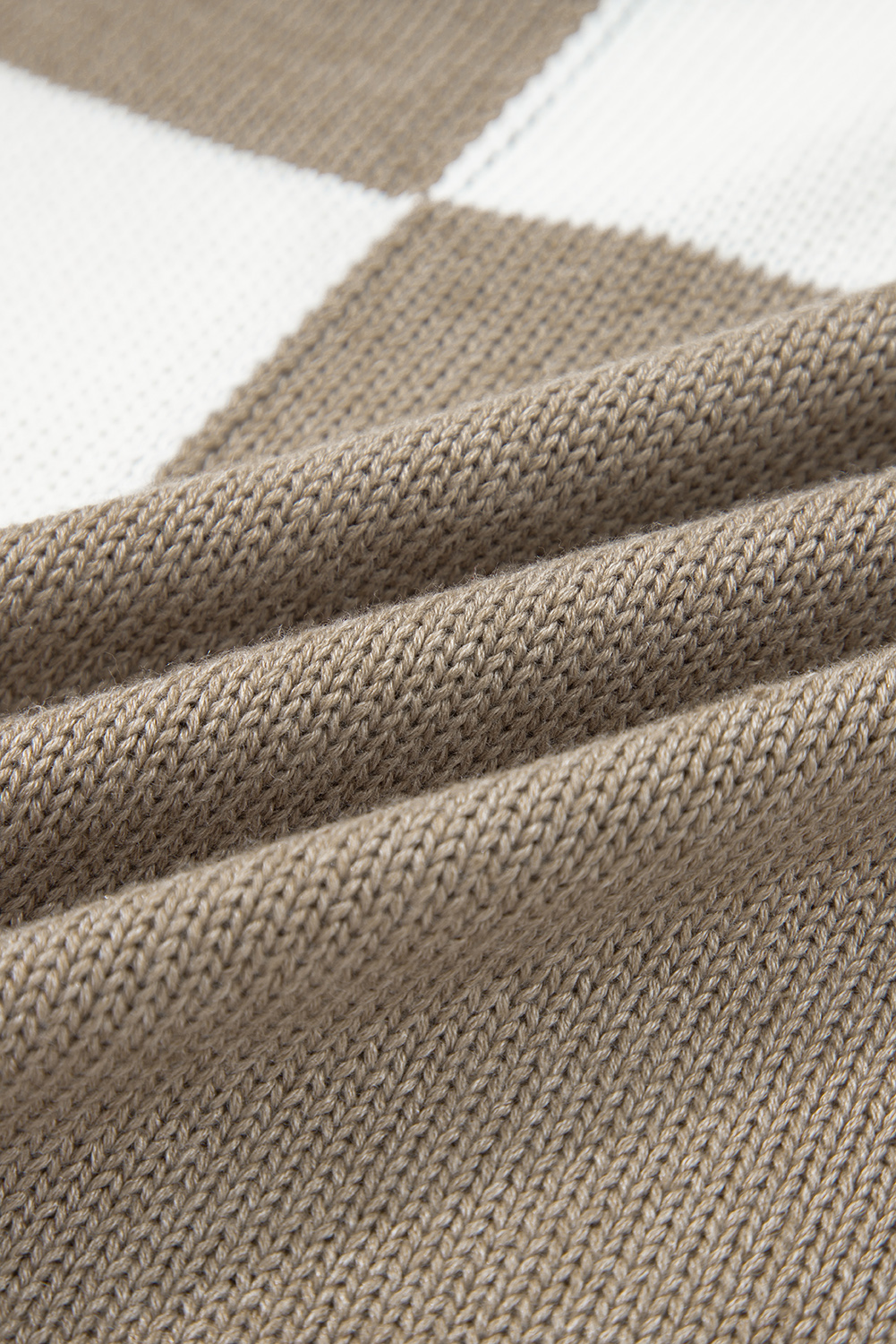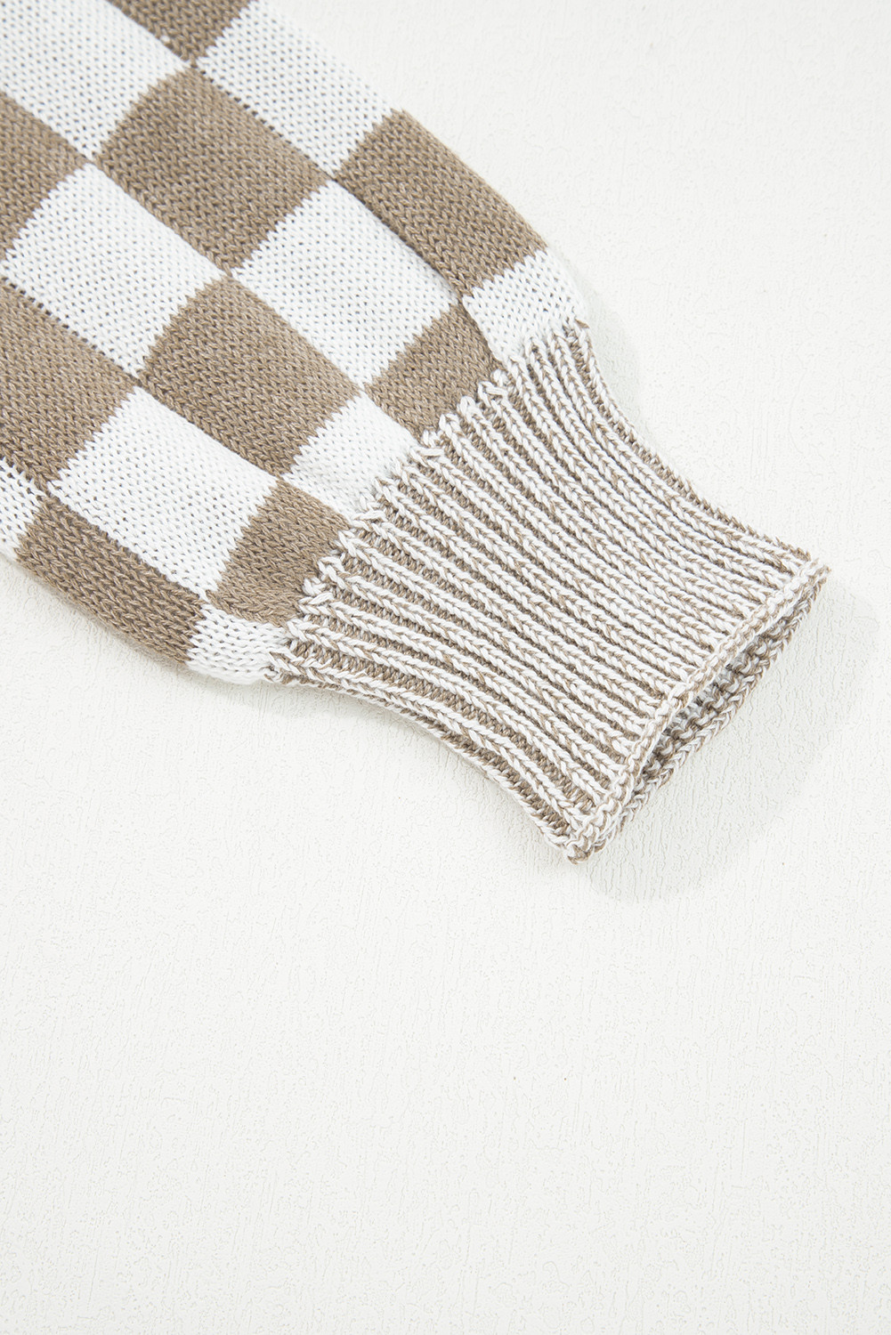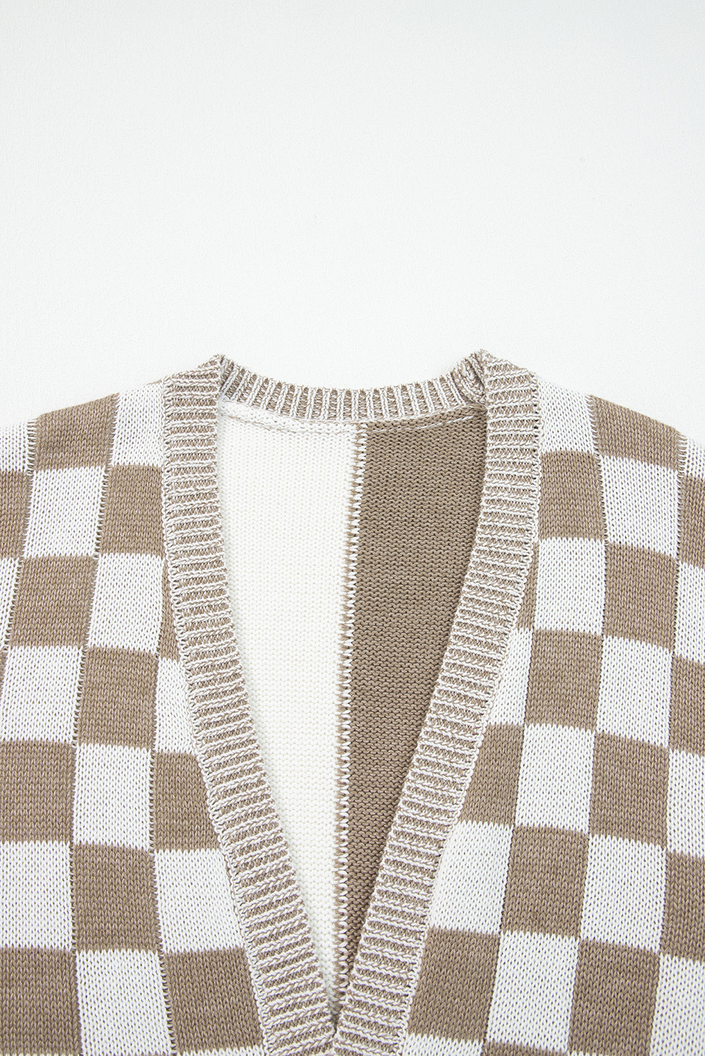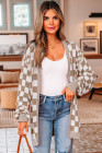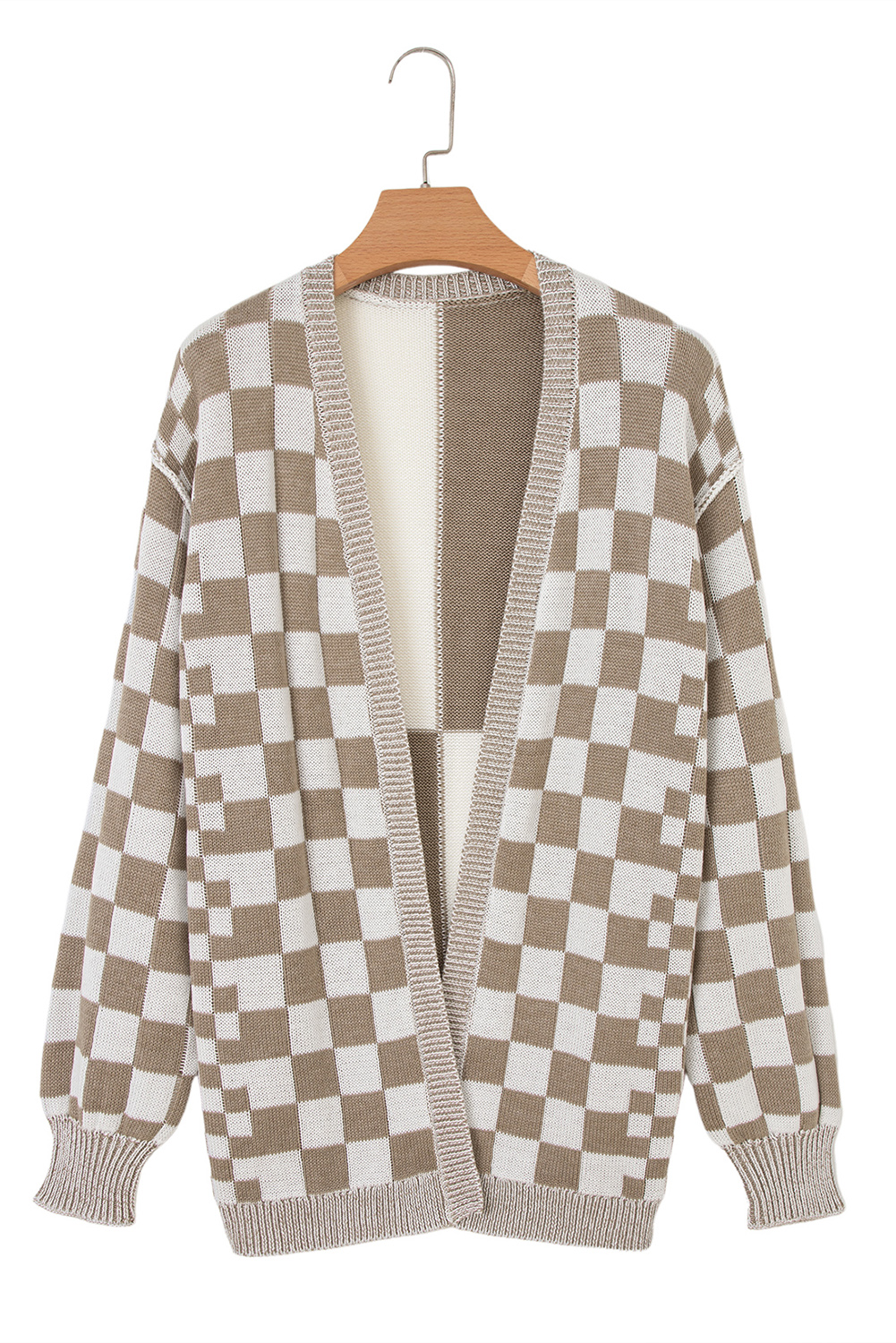 Brown Checkered Open Front Drop Shoulder Cardigan