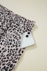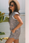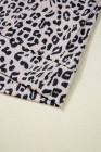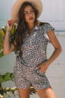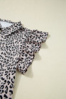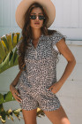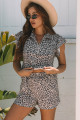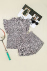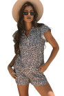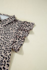 Brown Leopard Half Zipper Collared Ruffled Sleeve Top and Short Set