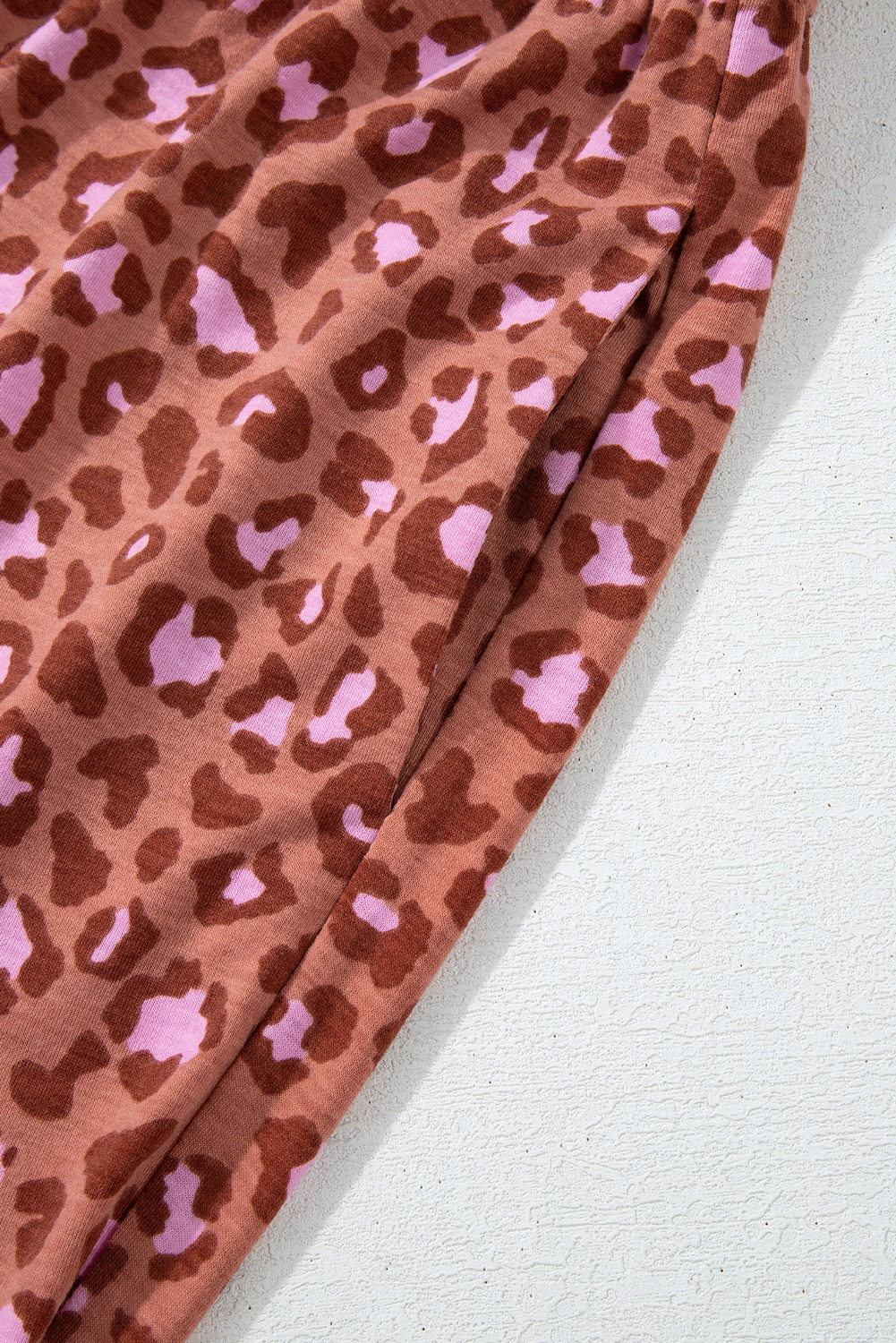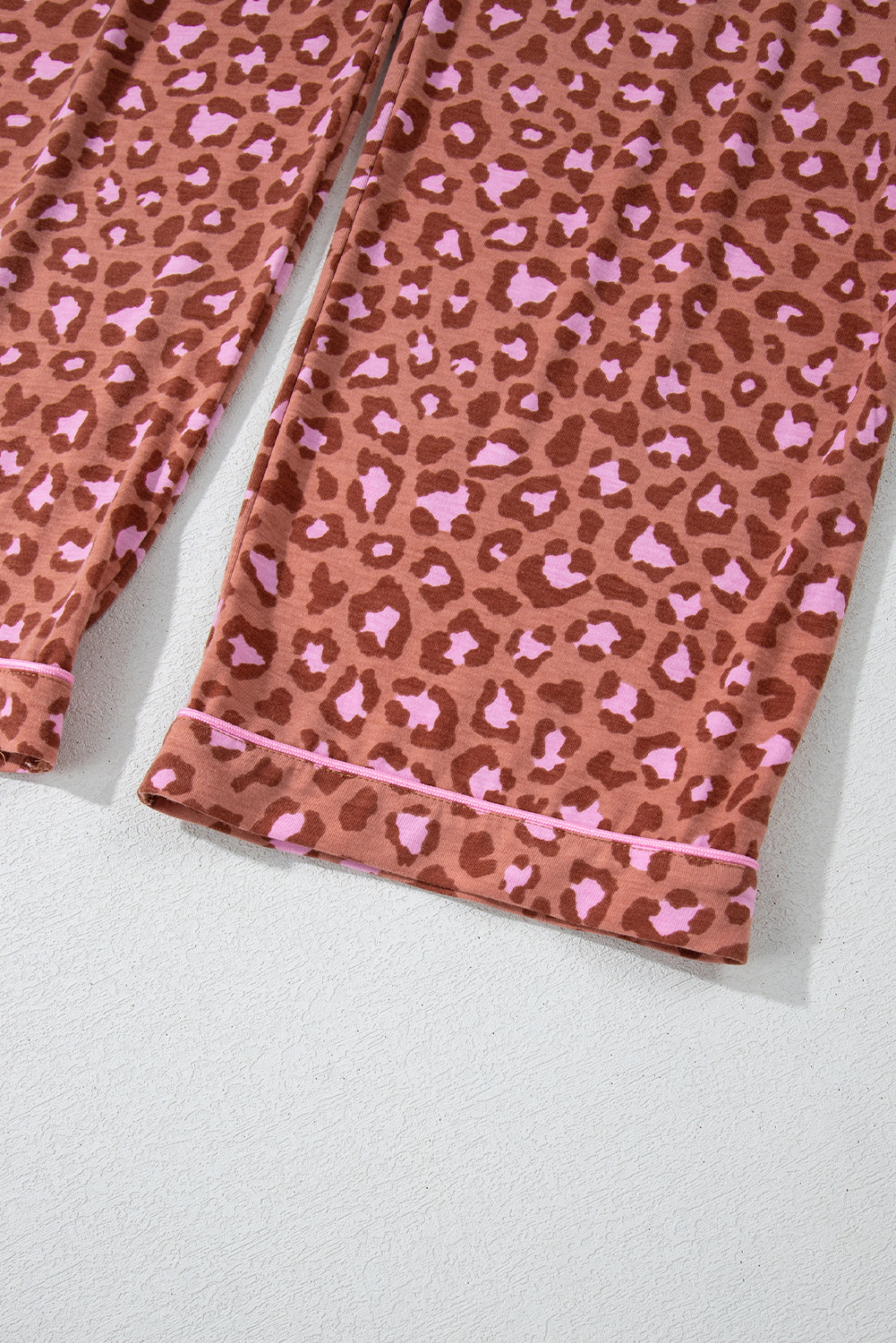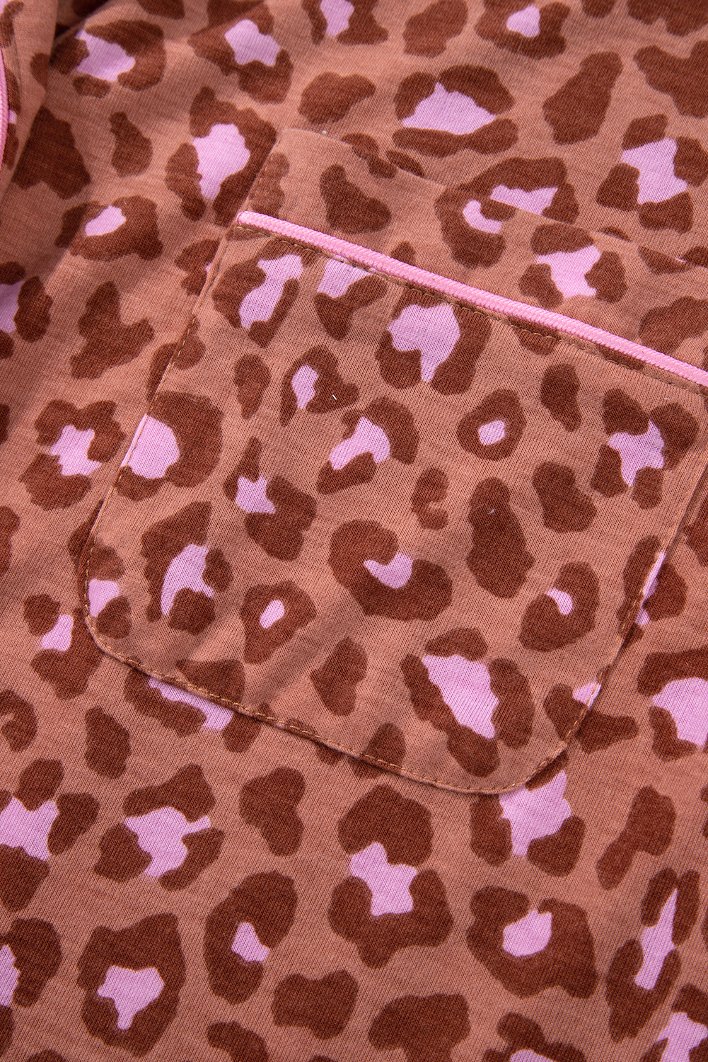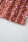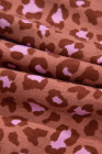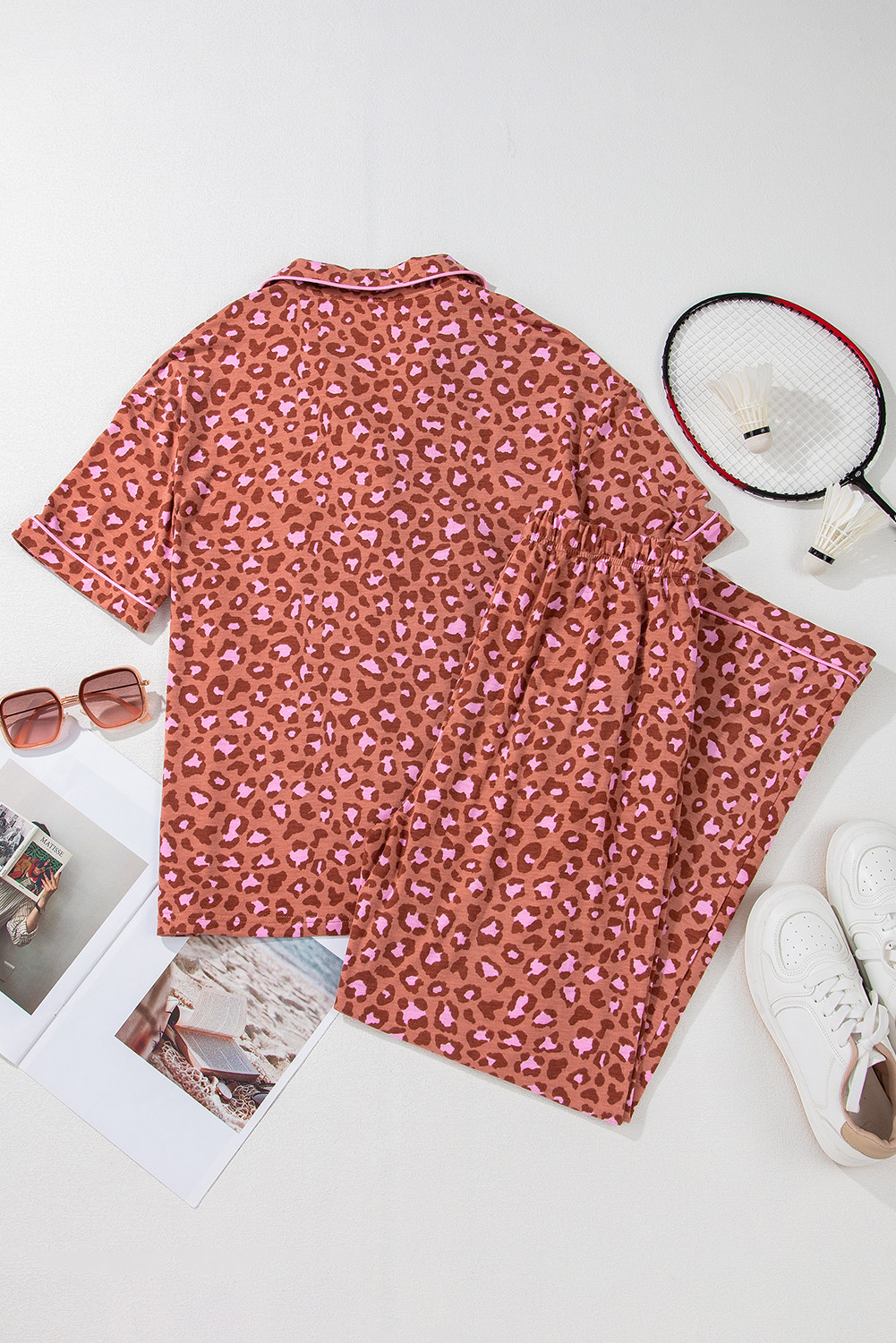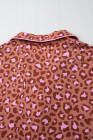 Brown Leopard Print Short Sleeve Shirt and Pants Pajamas Set