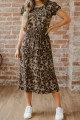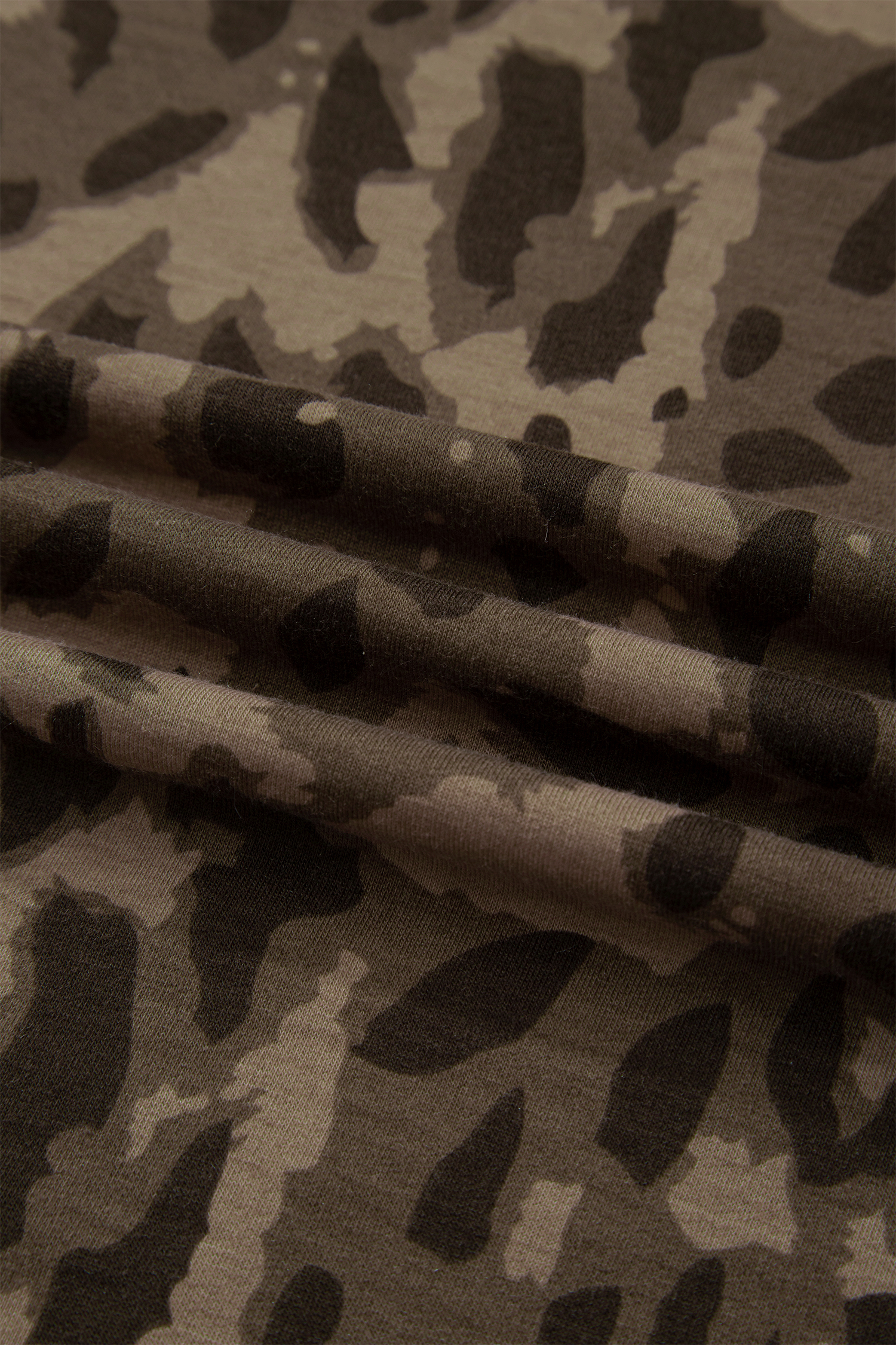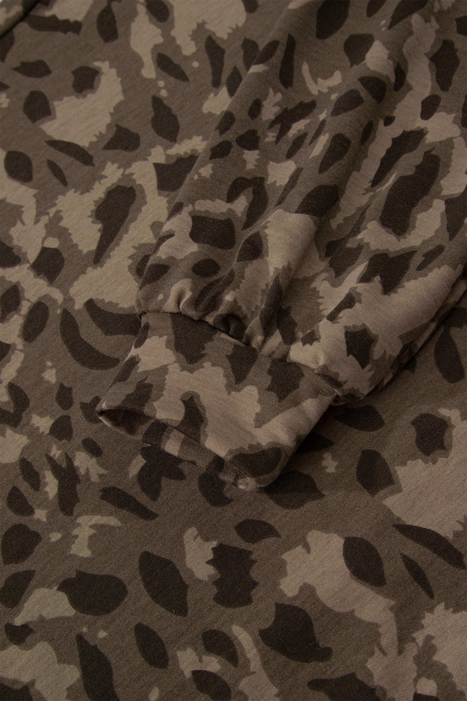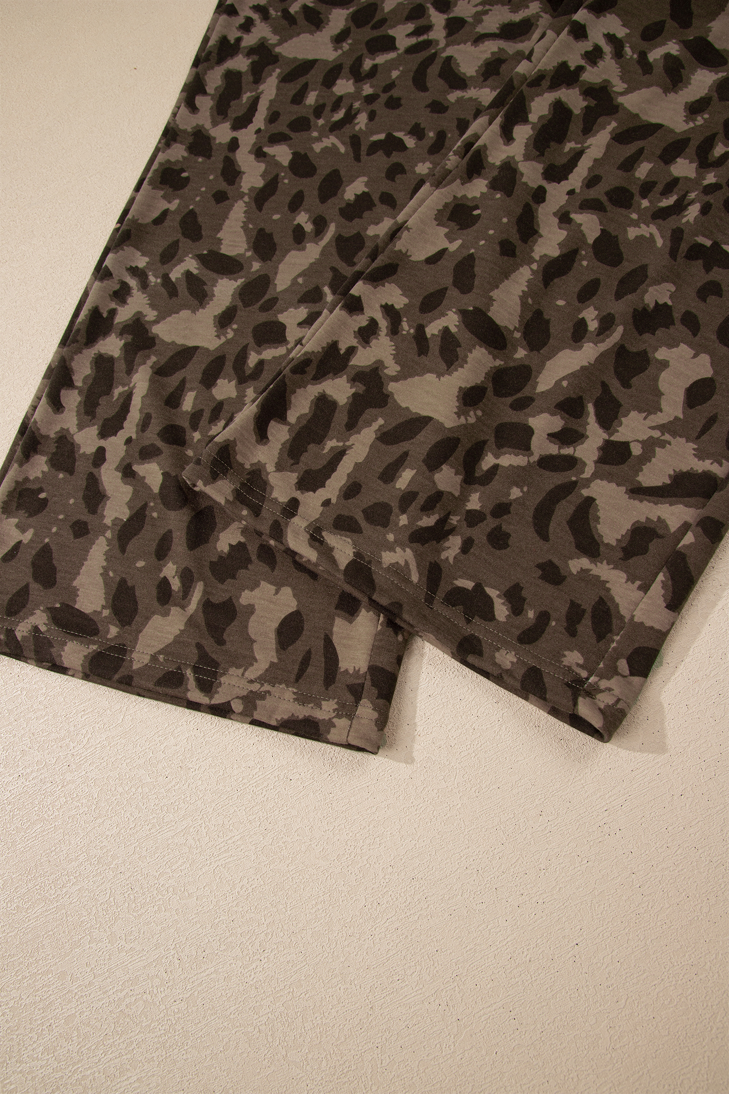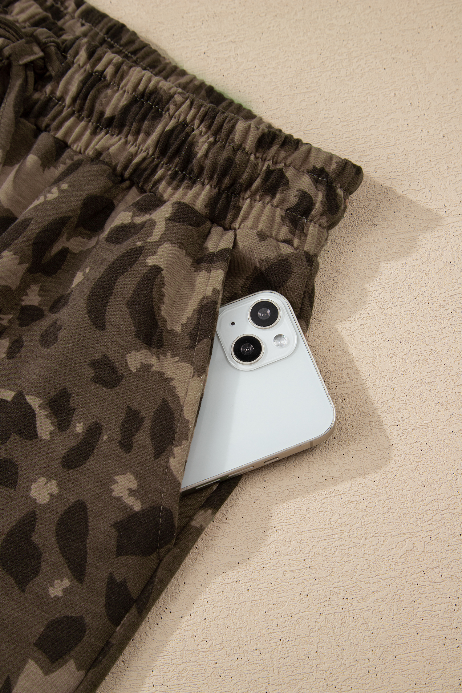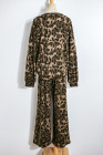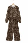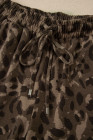 Brown Leopard Print Raw Seam Patchwork Pullover Drawstring Loose Pant Set