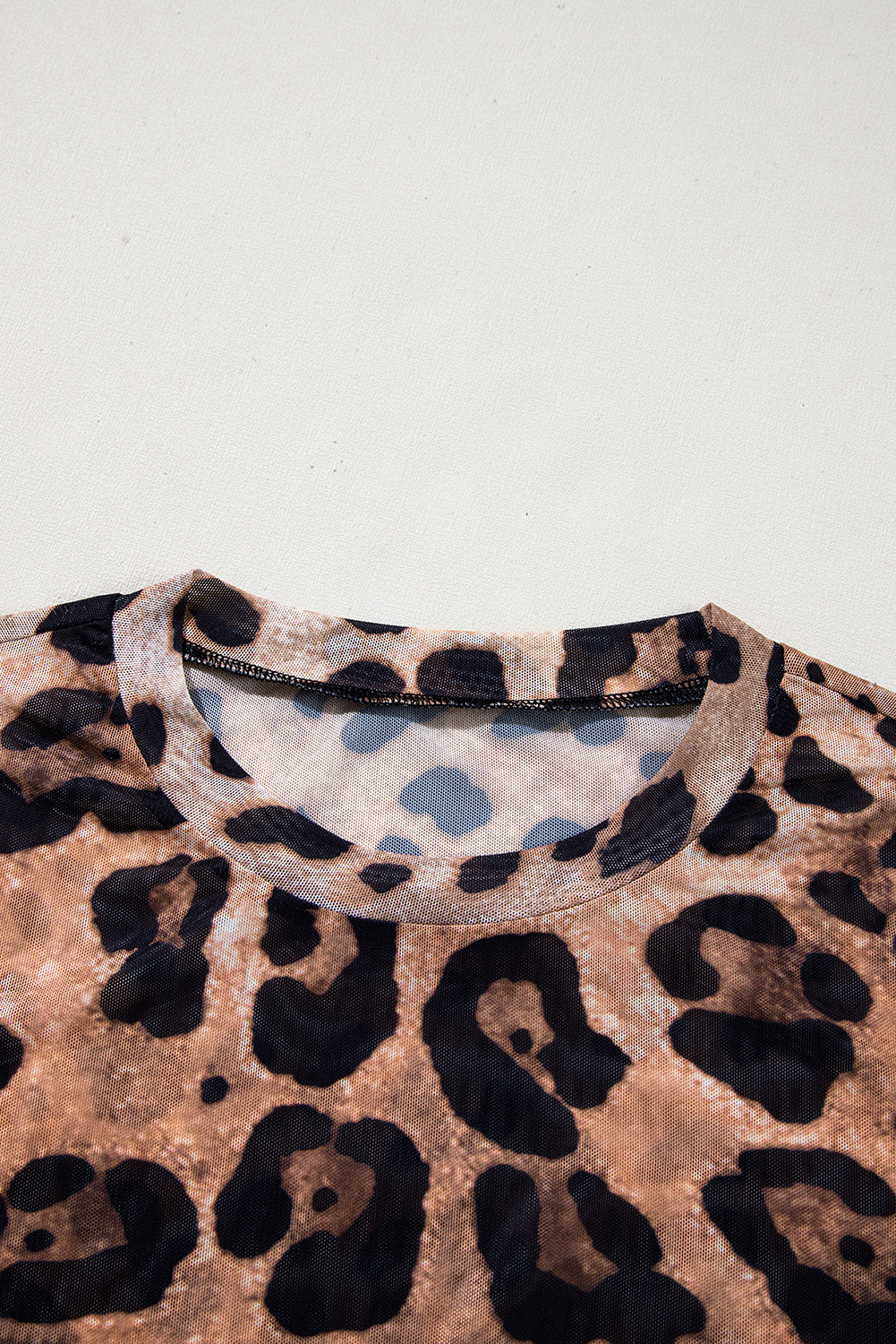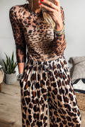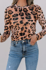 Brown Leopard Round Neck Long Sleeve Slim Top