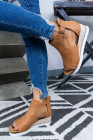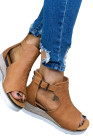 Brown PU Cutout Buckle Strap Platform Sandals