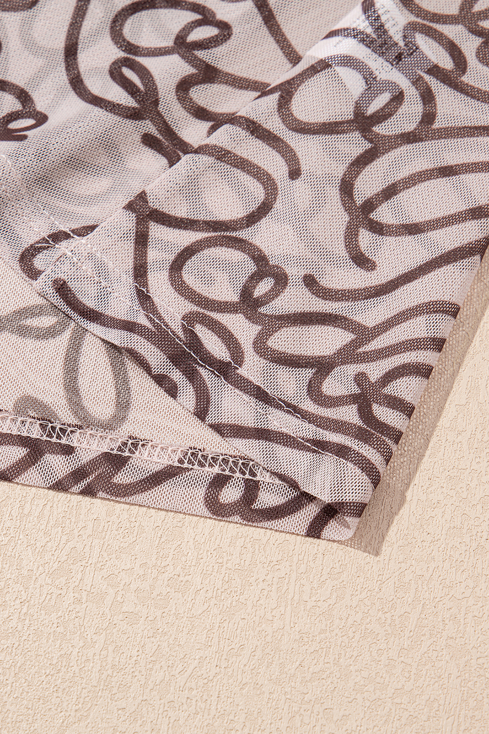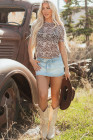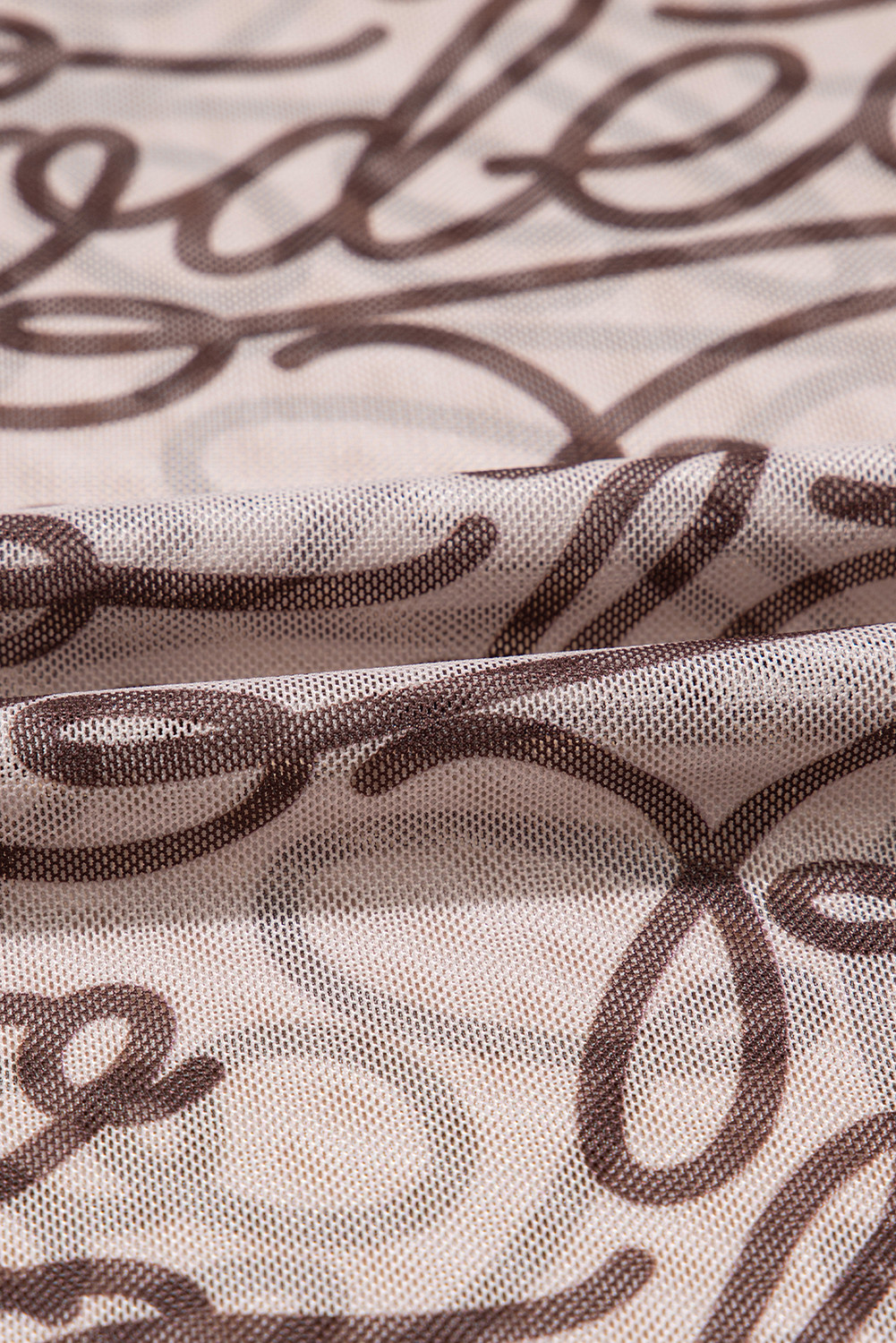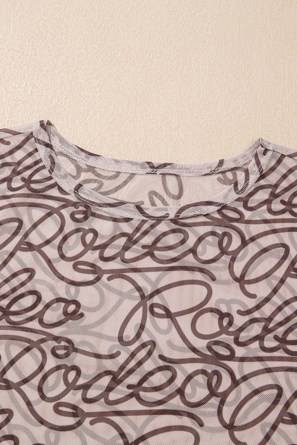 Brown Rodeo Print Round Neck Slim Fit Mesh T Shirt