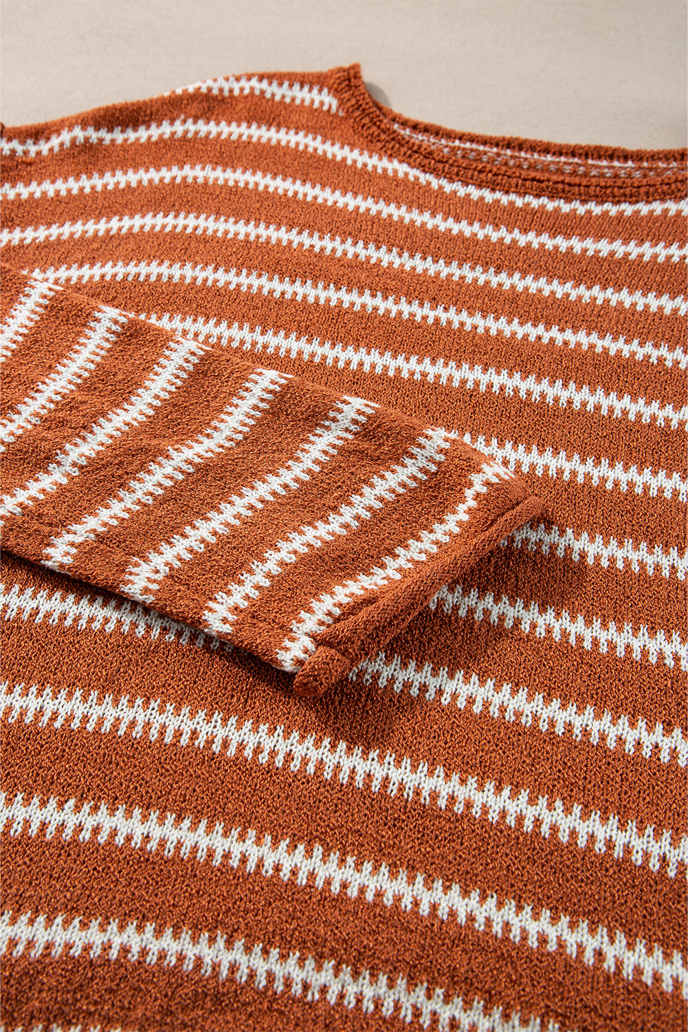 Brown Stripe Drop Shoulder Casual Sweater