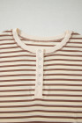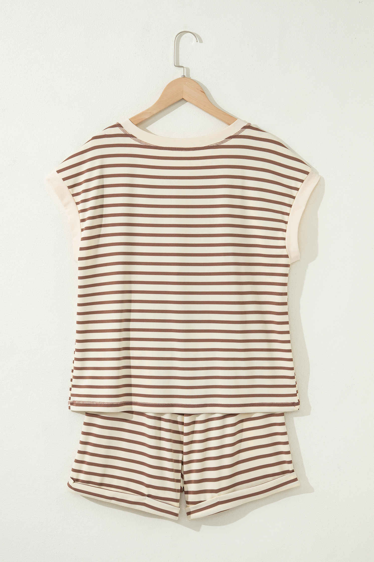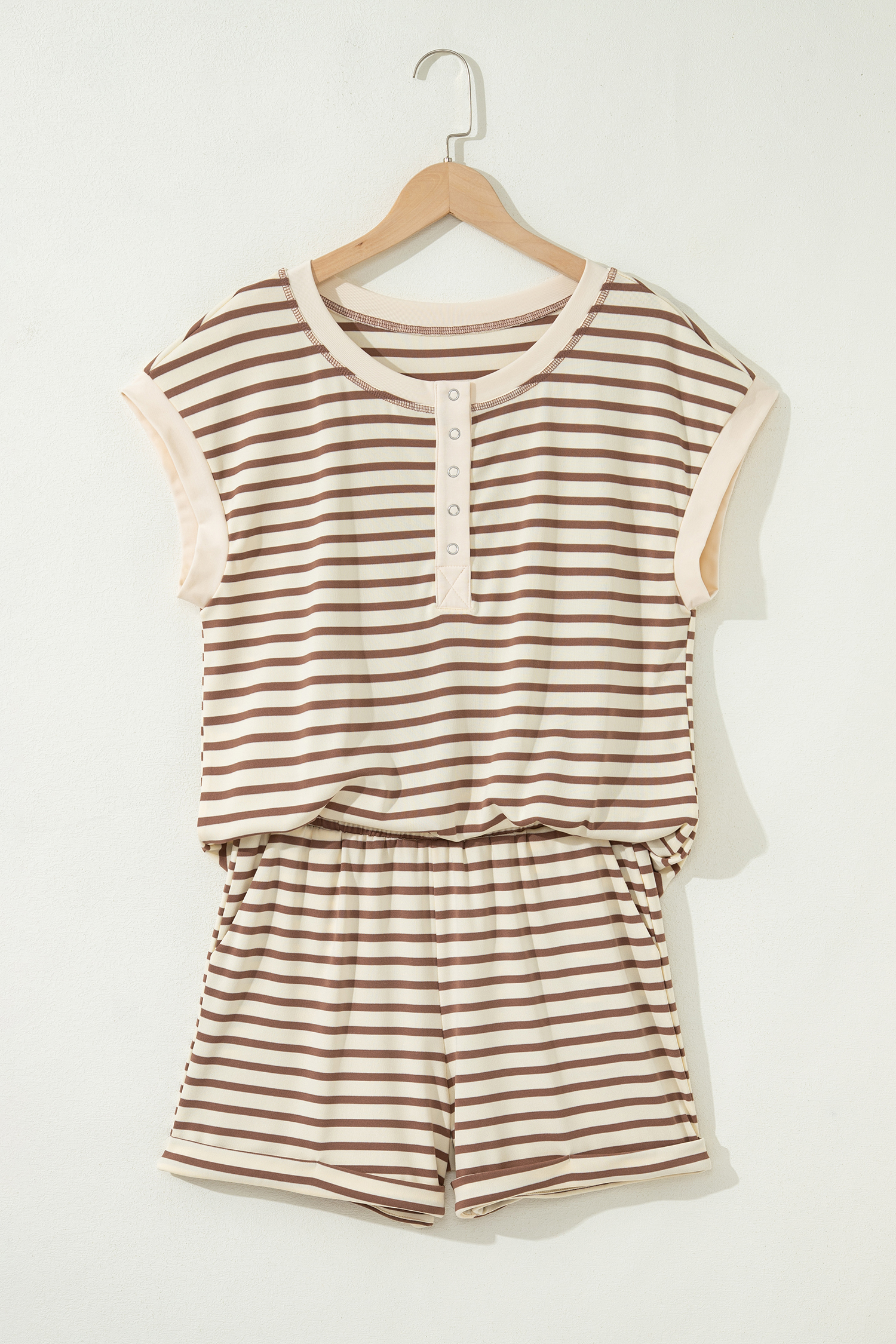 Brown Stripe Half Buttons Top and Shorts Set