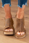 Brown Vintage Leather Stitching Studded Wedge Sandals