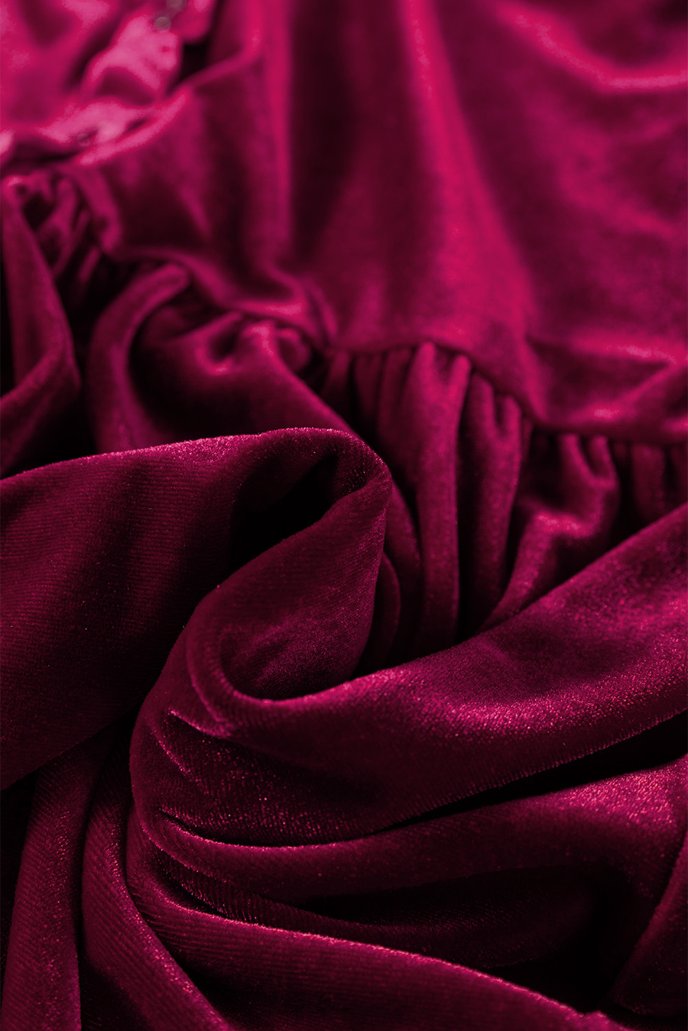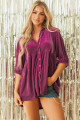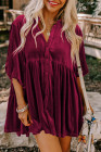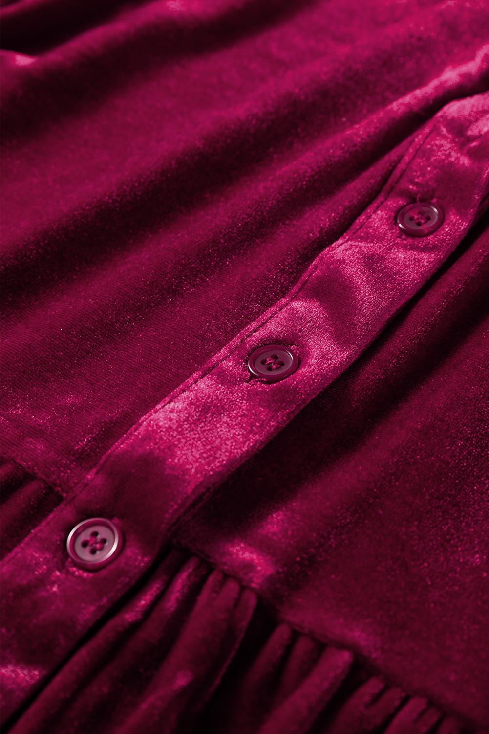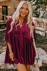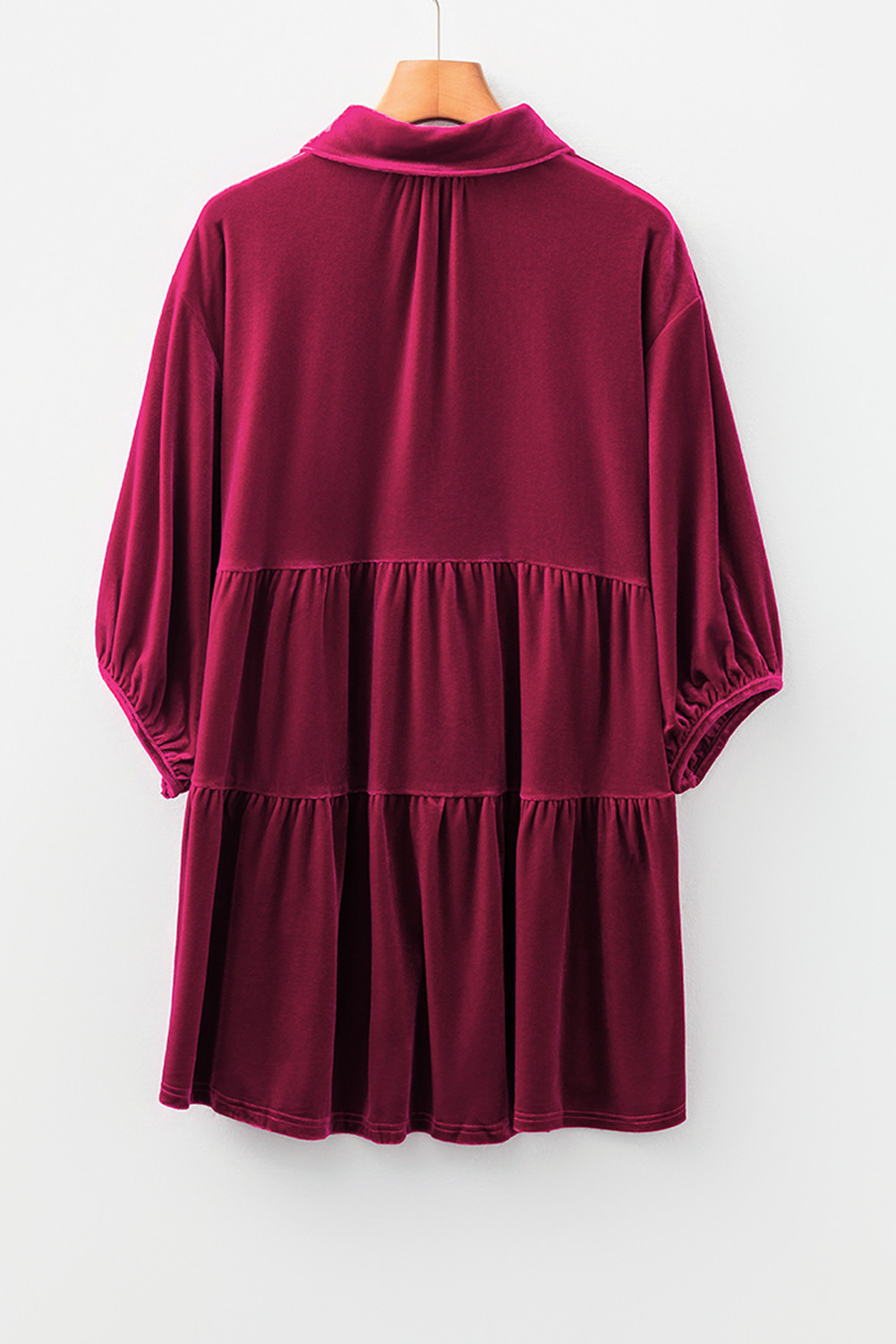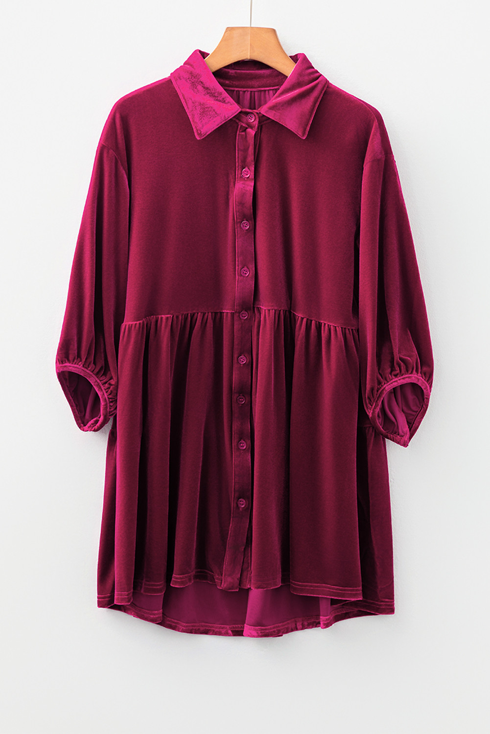 Burgundy 3/4 Sleeve Tunic Babydoll Velvet Shirt