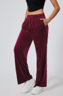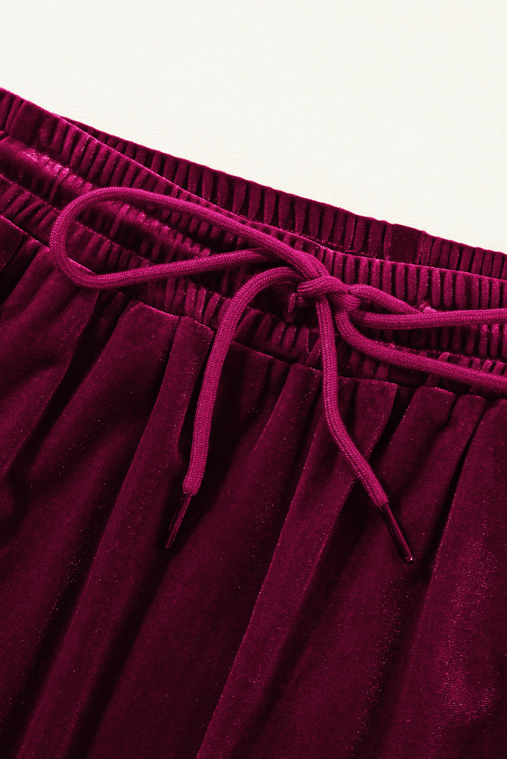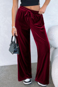 Burgundy Solid Drawstring Waist Wide Leg Pants