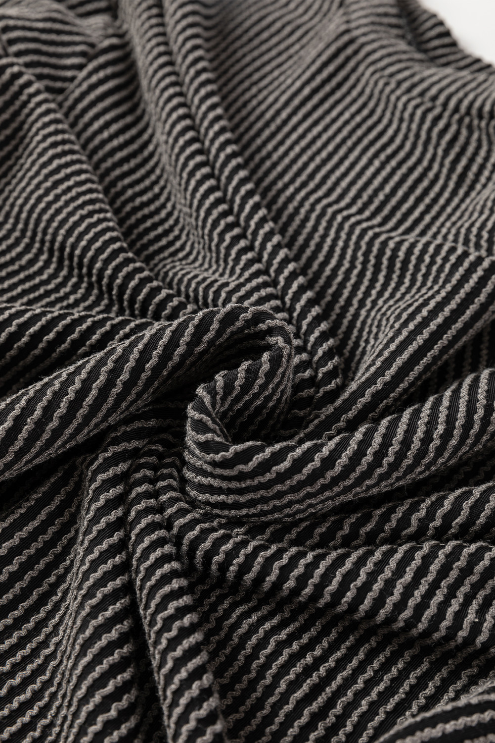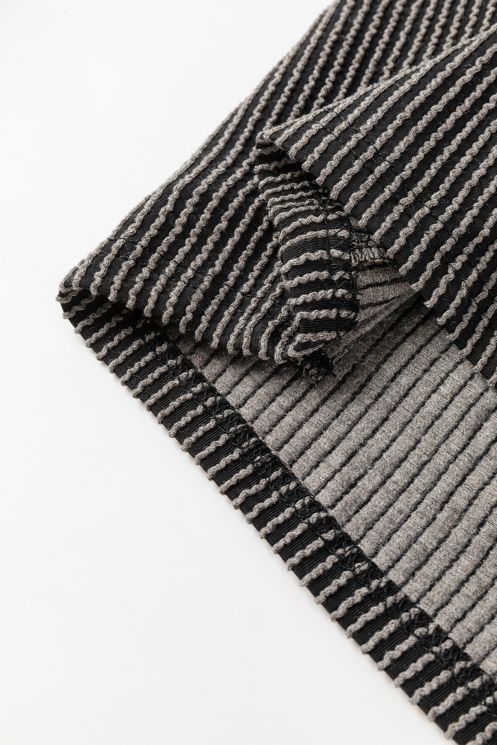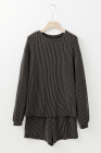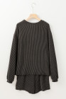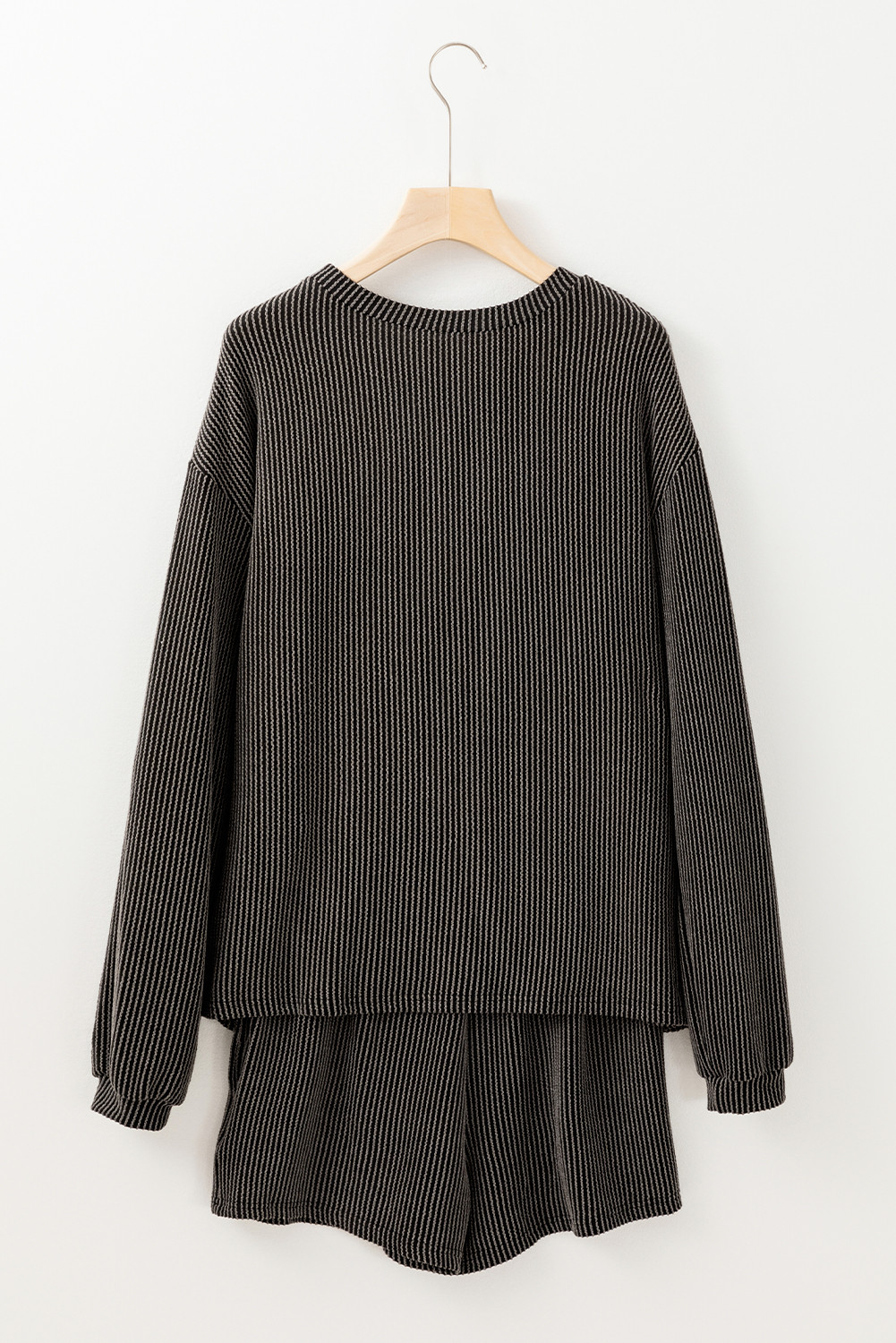 Carbon Grey Corded Knit Long Sleeve Top and High Waist Shorts Set