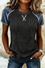 Textured Knit Seam Detail Color Block Patchwork Short Sleeve Top
