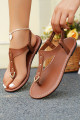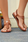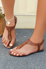 Chestnut Faux Leather Hollow Out Clip Toe Flat Sandals