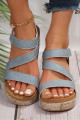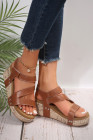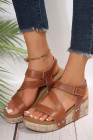 Chestnut Hollow Out Velcro Leather Wedge Sandals