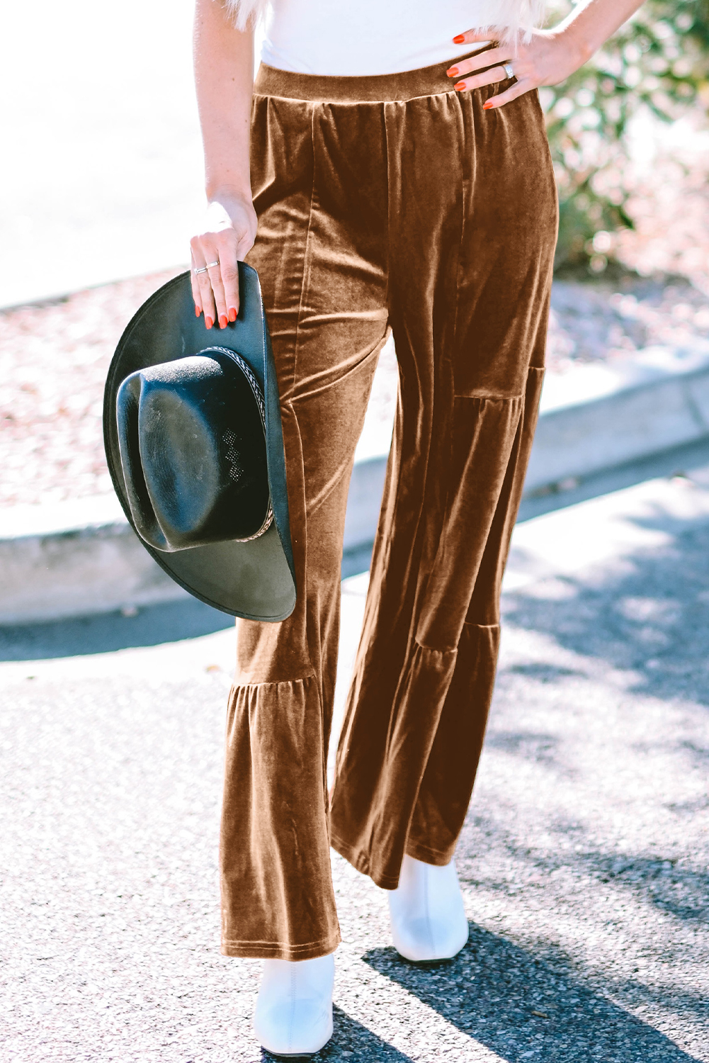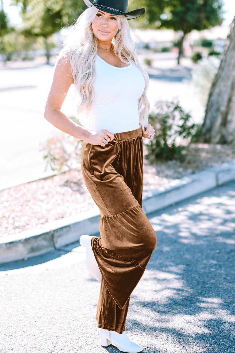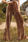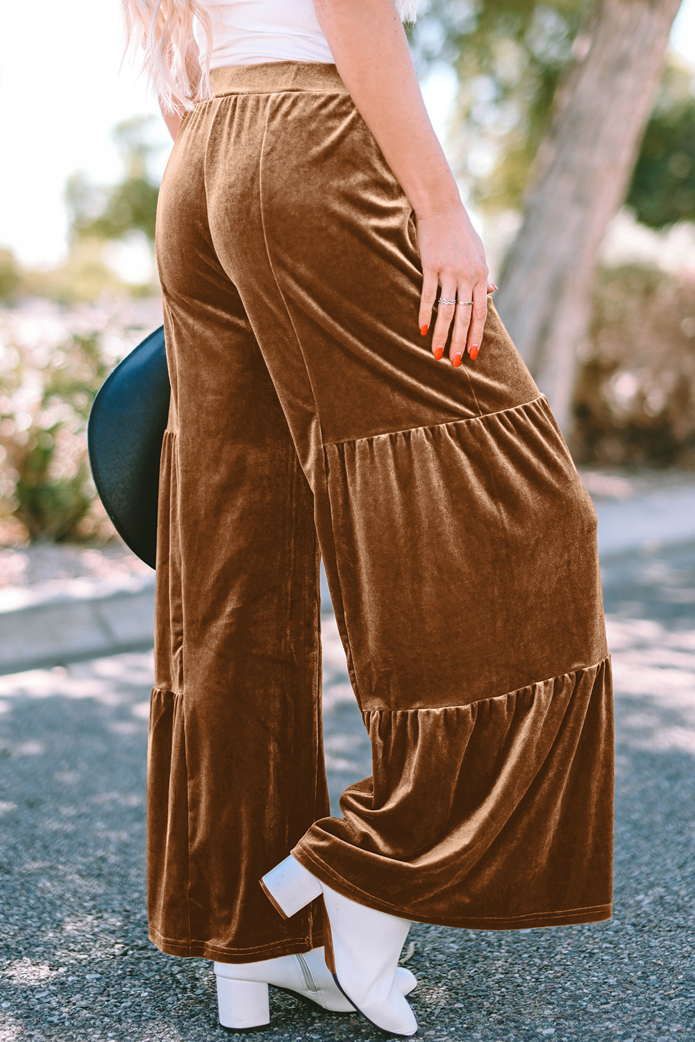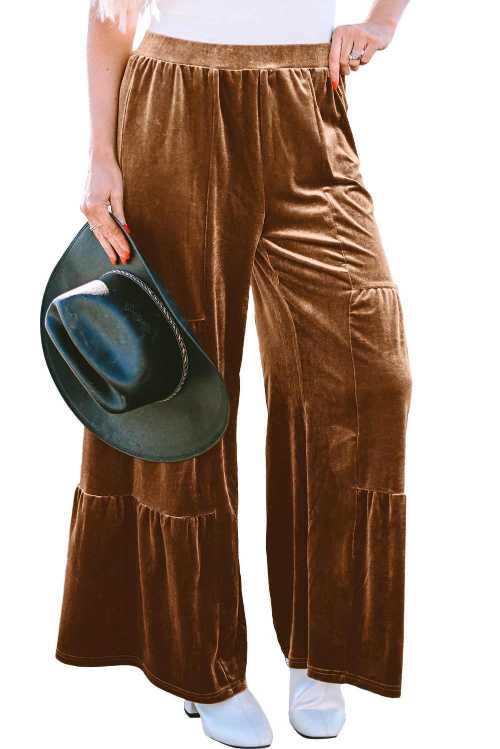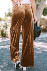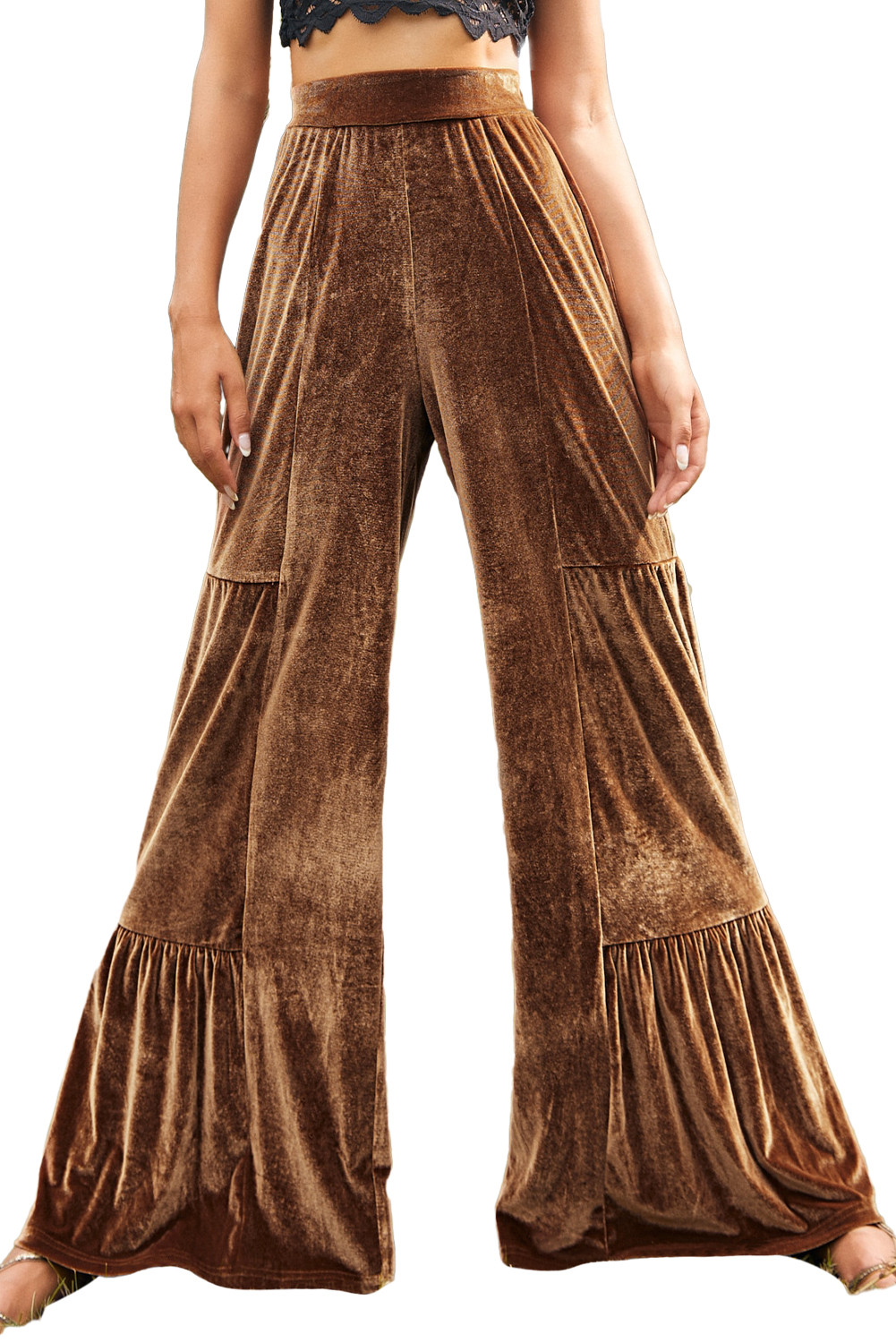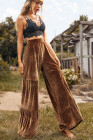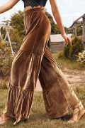 Chestnut Ruffle Hem Wide Leg Velvet Pants