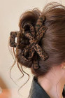 Chestnut Vintage Leopard Cloth Wrap Durable Plastic Hair Claw Clip